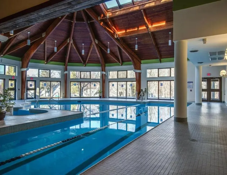 Comfortable Living Space: The Woods by Killington Vacation Rentals in Killington offers a two-bedroom apartment with a fully equipped kitchen, private bathroom, and a cozy fireplace. Guests enjoy free WiFi, a washing machine, and a dishwasher for added convenience. Relaxing Facilities: The property features an indoor swimming pool, sauna, and hot tub. Additional amenities include a dining area, barbecue, and a seating area, perfect for relaxation and entertainment. Local Attractions: Killington Mountain is 4.3 mi away, Gifford Woods State Park 2 mi, and Pico Peak 3 mi. Rutland State Airport is 17 mi from the apartment, providing easy access for travelers. Guests will have a special experience as this apartment offers a sauna and a fireplace. This spacious apartment is consisted of of 1 living room, 2 separate bedrooms and 2 bathrooms with a bath and a shower. Guests will find a refrigerator, a dishwasher, kitchenware and an oven in the well-equipped kitchen. The apartment also has a barbecue. This apartment features a washing machine, a tea and coffee maker and a TV with cable channels. The unit offers 3 beds.
