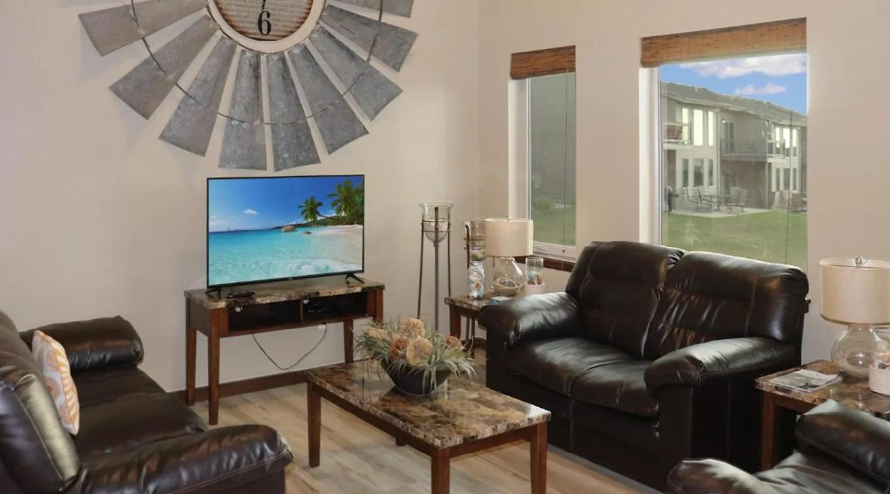 Comfortable Accommodations: Bridges Bay Vacation Cabin 278 in Arnolds Park offers a villa with air-conditioning, a private bathroom, and a fully equipped kitchen. Guests enjoy free WiFi, a washing machine, and a barbecue area. Leisure Facilities: The property features an indoor swimming pool and a relaxing bath. Additional amenities include a TV, tea and coffee maker, refrigerator, microwave, dishwasher, and oven. Convenient Location: Located 1.2 mi from Arnolds Park Amusement Park and 101 mi from Sioux Falls Regional Airport. Free on-site parking is available. Highly rated by guests. The villa features air conditioning, a washing machine, as well as a private bathroom boasting a bath and a shower. Guests will find a refrigerator, a dishwasher, an oven and a microwave in the fully equipped kitchen. The villa also comes with a barbecue. This villa has a tea and coffee maker, heating and a TV.
