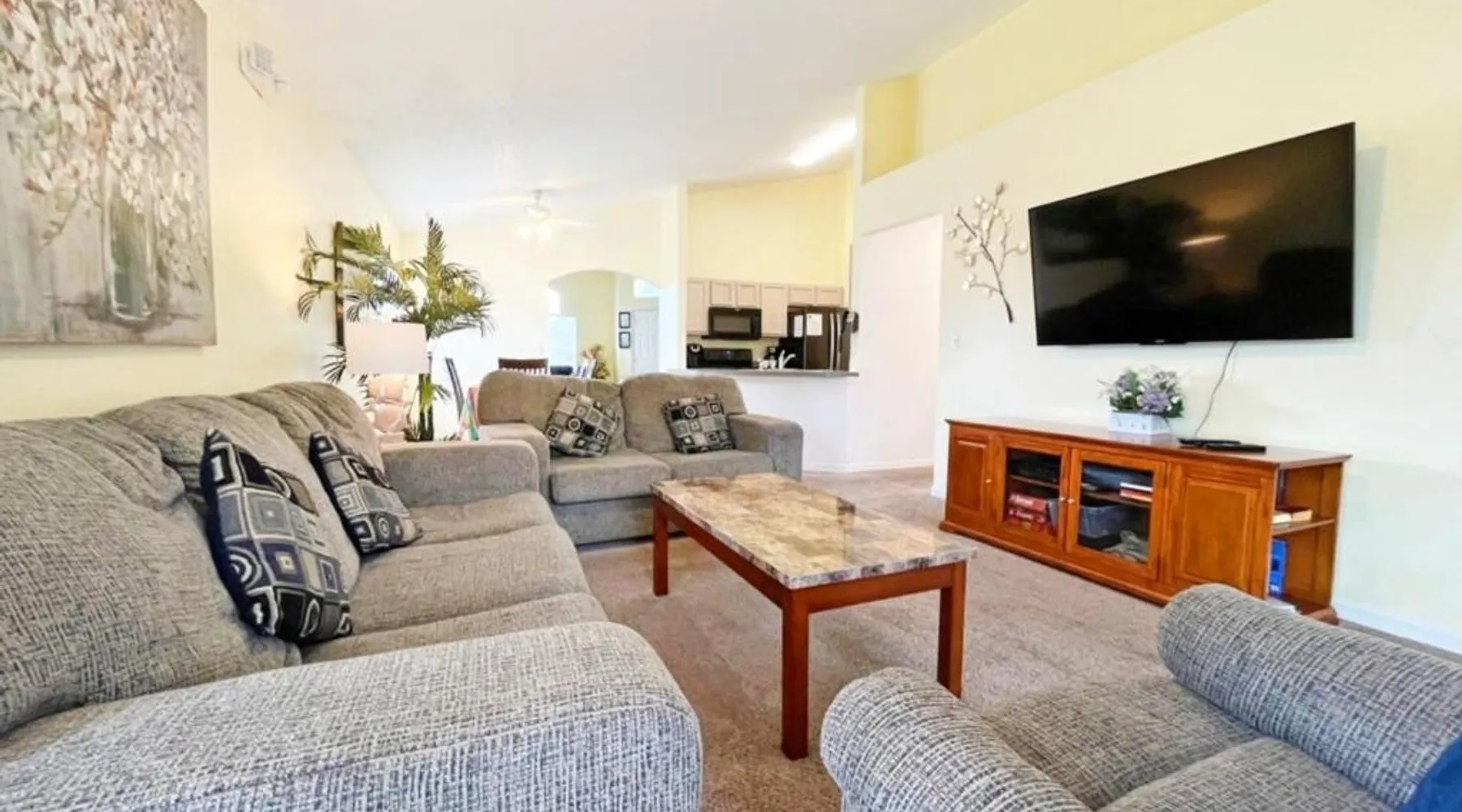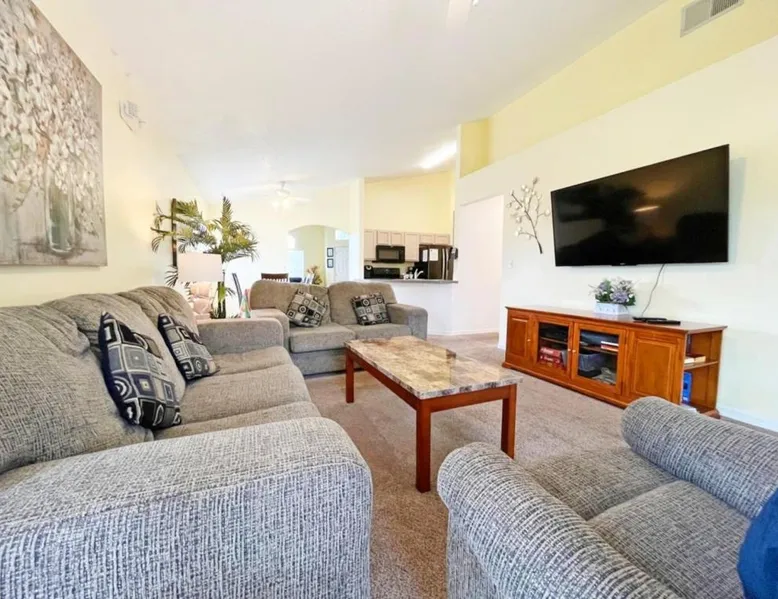 Comfortable Accommodations: Buckingham Palm Villa home in Davenport offers four bedrooms and two bathrooms. The property includes air-conditioning, a heated pool, and free WiFi. Modern Amenities: Guests can enjoy a fully equipped kitchen with a microwave, dishwasher, and washing machine. Additional amenities include a hairdryer and TV. Convenient Location: Located 32 mi from Orlando International Airport, the holiday home is close to attractions such as Disney's Animal Kingdom (12 mi) and Disney's Blizzard Beach Water Park (13 mi). Free on-site private parking is available. The private pool is the special feature of this holiday home. The air-conditioned holiday home features 4 bedrooms, 2 bathrooms with a hairdryer and a kitchen. The kitchen comes with a dishwasher and a microwave This holiday home has a washing machine, video games and a TV. The unit offers 6 beds.