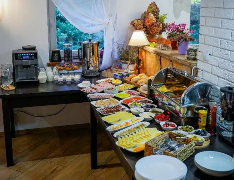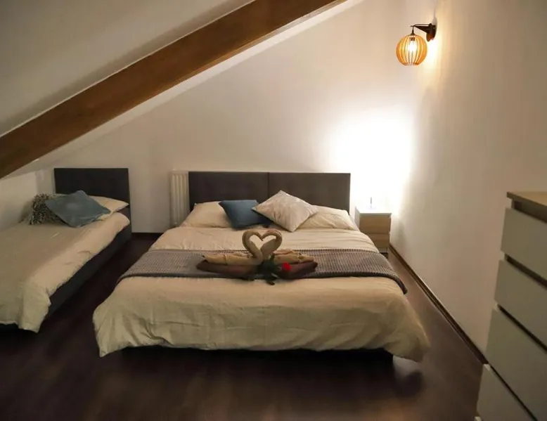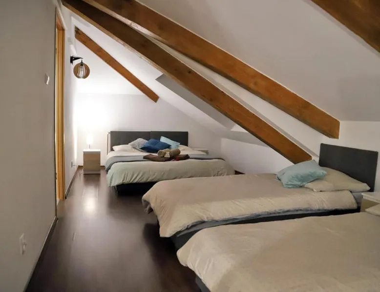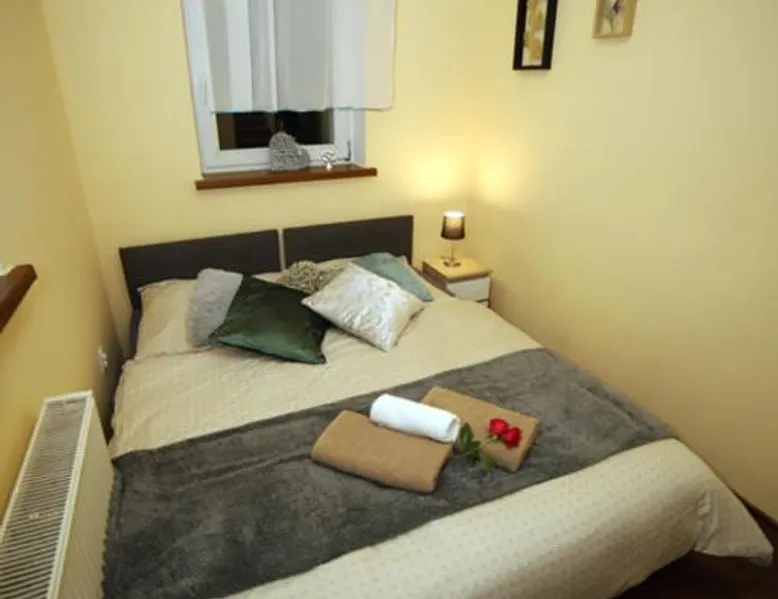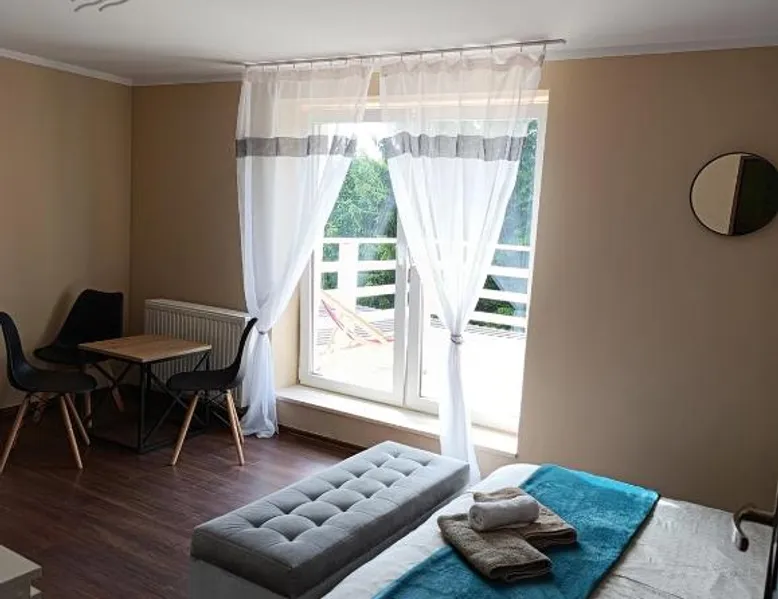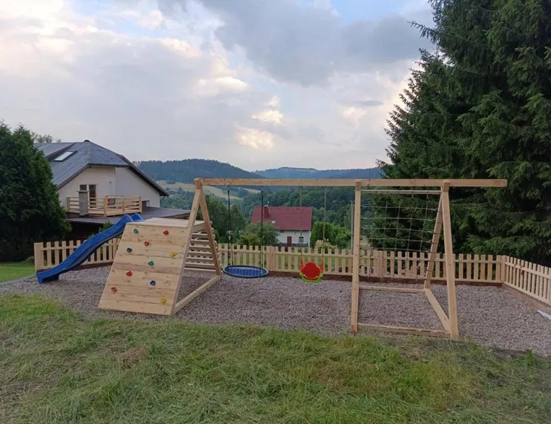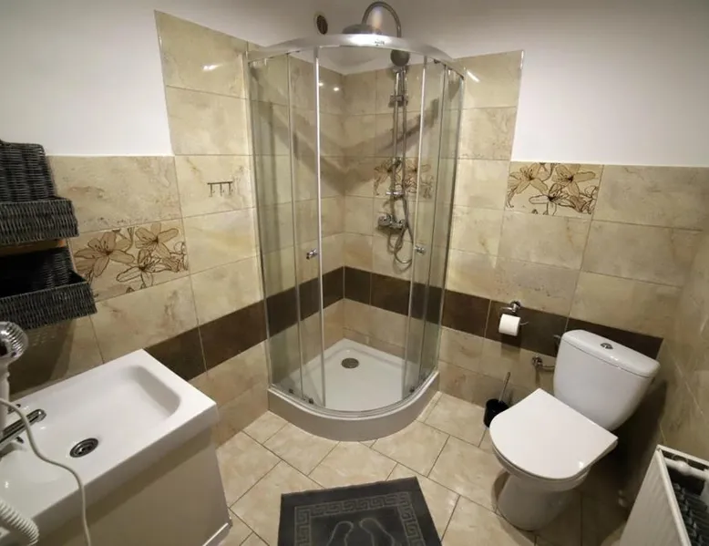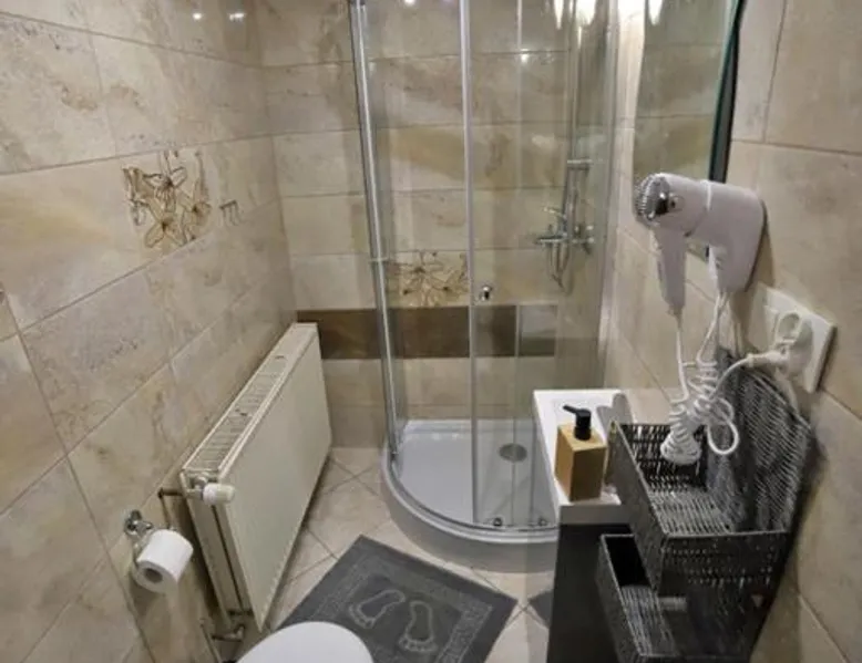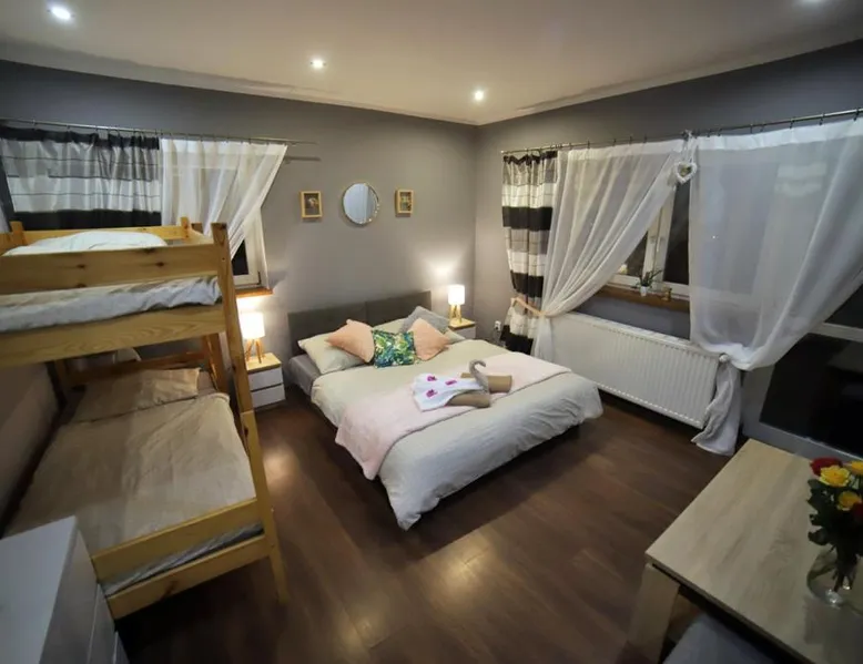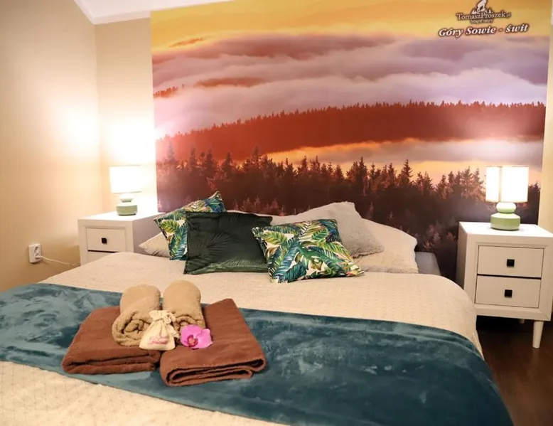 Comfortable Accommodations: Sowi Gościniec Wellness & Breakfast in Sokolec offers a spacious apartment with a private bathroom, balcony, and mountain views. The property features a lounge, outdoor fireplace, and a children's playground. Wellness Facilities: Guests can relax in the sauna, hot tub, or sun terrace. The apartment includes a shared kitchen, picnic area, and free WiFi. Private check-in and check-out services ensure a smooth arrival and departure. Breakfast and Dining: A buffet breakfast with local specialties, warm dishes, juice, pancakes, and cheese is served daily. The American breakfast is highly appreciated by guests. Activities and Attractions: The property provides walking and bike tours. Nearby attractions include Świdnica Cathedral (19 mi), Książ Castle (21 mi), and Walimskie Mains Museum (4.3 mi). Copernicus Wrocław Airport is 53 mi away. The spacious family room features heating, as well as a private bathroom boasting a bath or a shower. The unit has 10 beds.