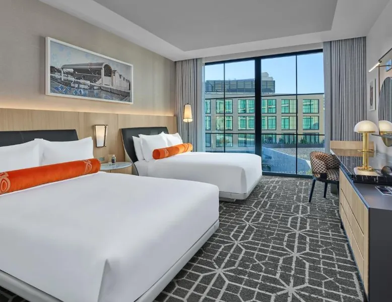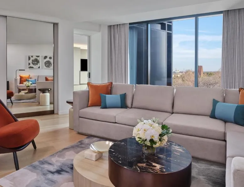 Elegant Accommodations: The Crescent Hotel in Fort Worth offers luxurious rooms with air-conditioning, balconies, and private bathrooms. Each room includes a tea and coffee maker, mini-bar, and work desk, ensuring a comfortable stay. Exceptional Facilities: Guests can enjoy spa facilities, a fitness center, and a terrace. The hotel features a restaurant serving Mediterranean cuisine, a bar, and an outdoor fireplace. Additional amenities include yoga and fitness classes, live music, and a steam room. Prime Location: Located 1.1 mi from Dickeys Arena and an 8-minute walk to the Kimbell Art Museum, the hotel is also close to Fort Worth Convention Center (2.3 mi) and AT&T Stadium (17 mi). Nearby attractions include Fossil Creek Golf Club (9.9 mi) and Iron Horse Golf Course (14 mi). Guest Satisfaction: Highly rated for its attentive staff and excellent service support, The Crescent Hotel ensures a memorable stay for all visitors. The spacious double room has a private bathroom, air conditioning, a tea and coffee maker, as well as a seating area with a flat-screen TV. The double room offers a TV, a wardrobe, a safe deposit box and heating. The unit has 1 bed.