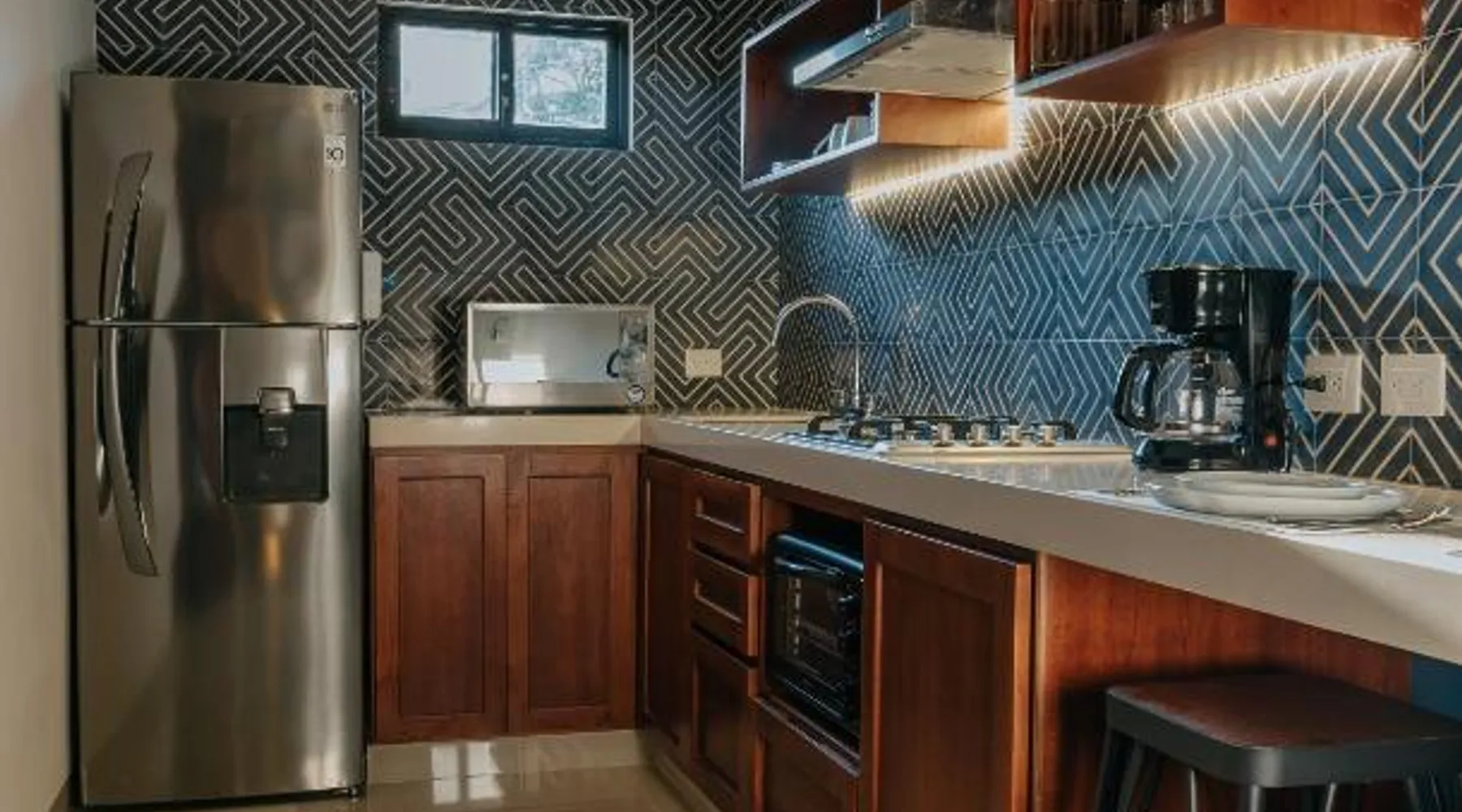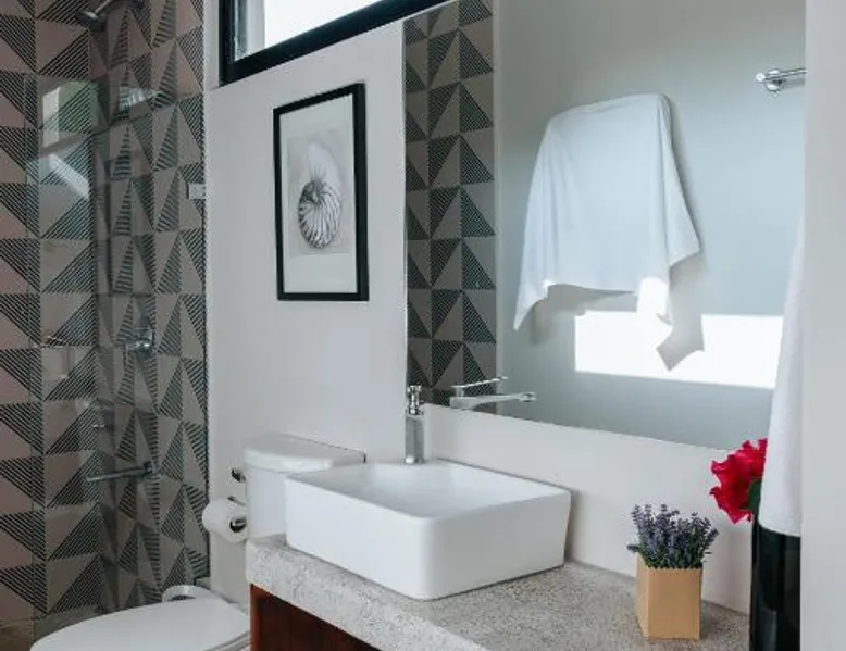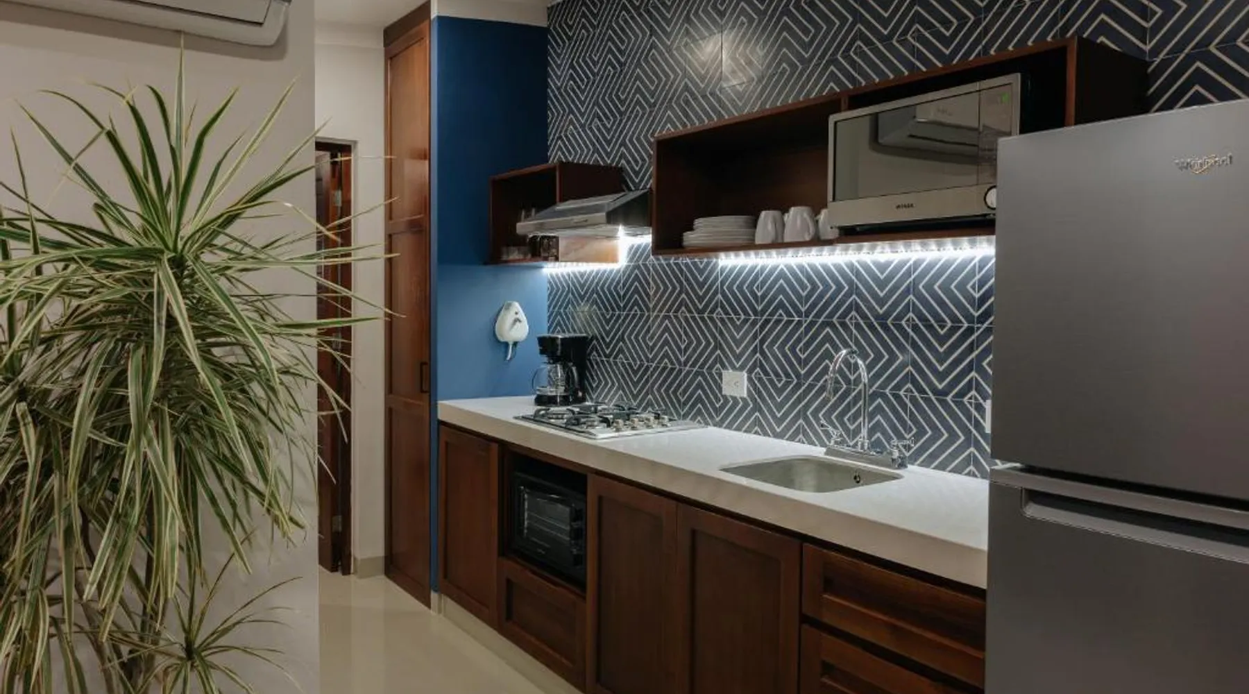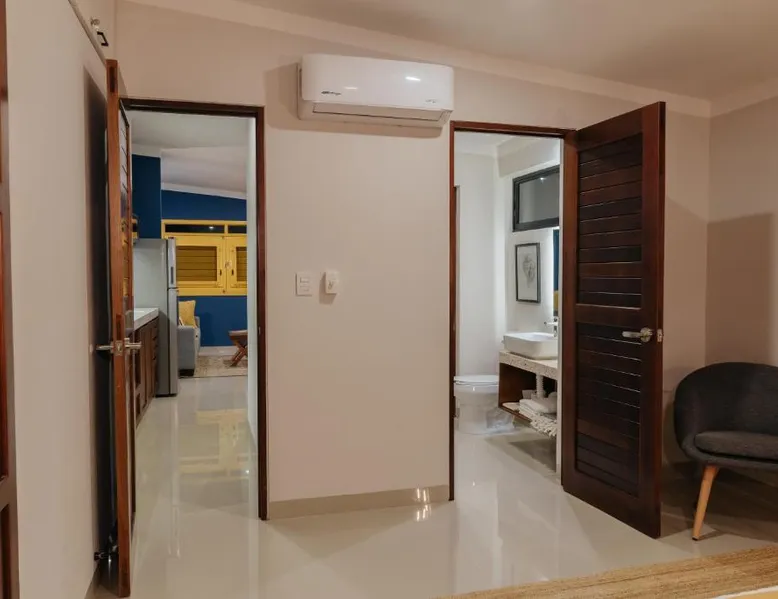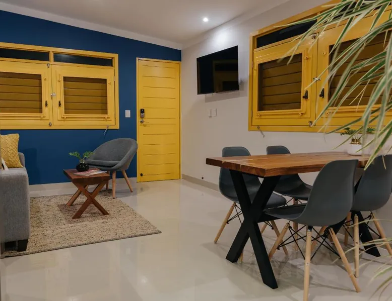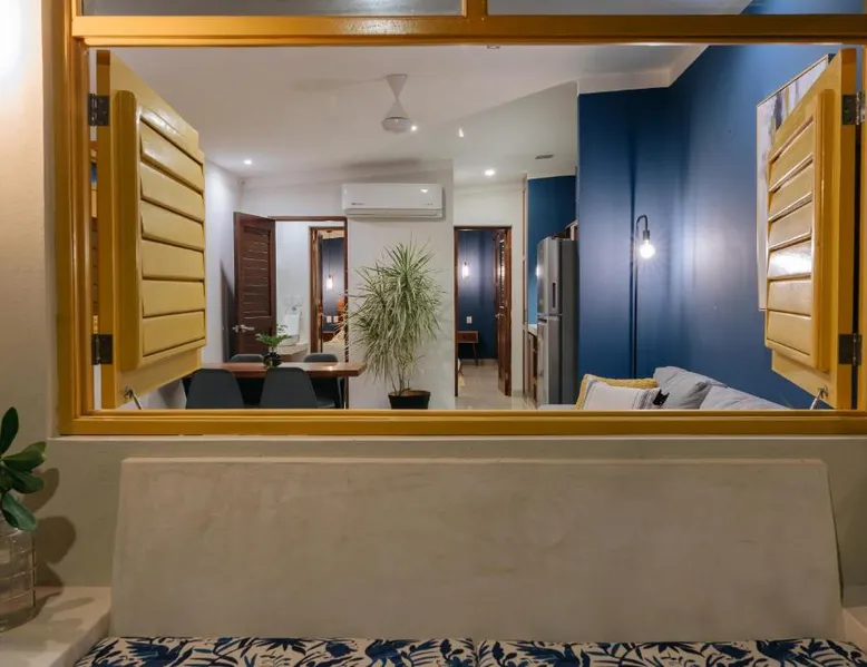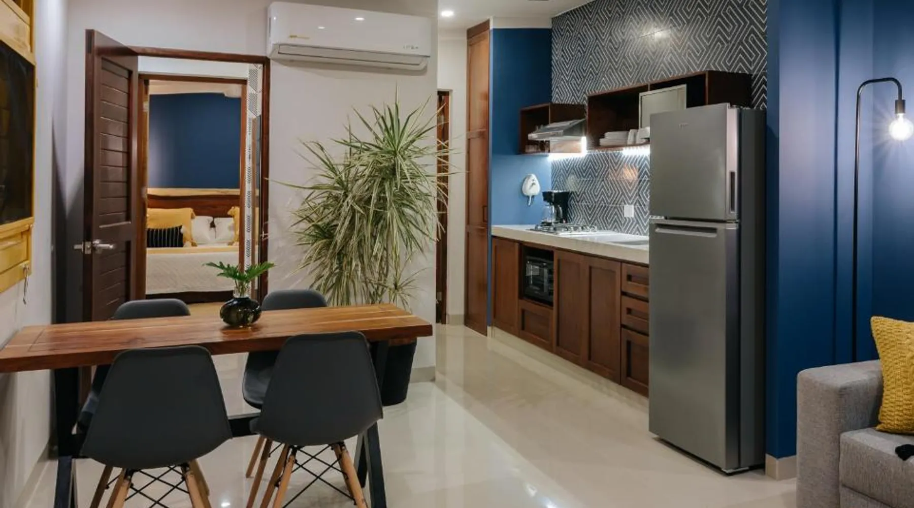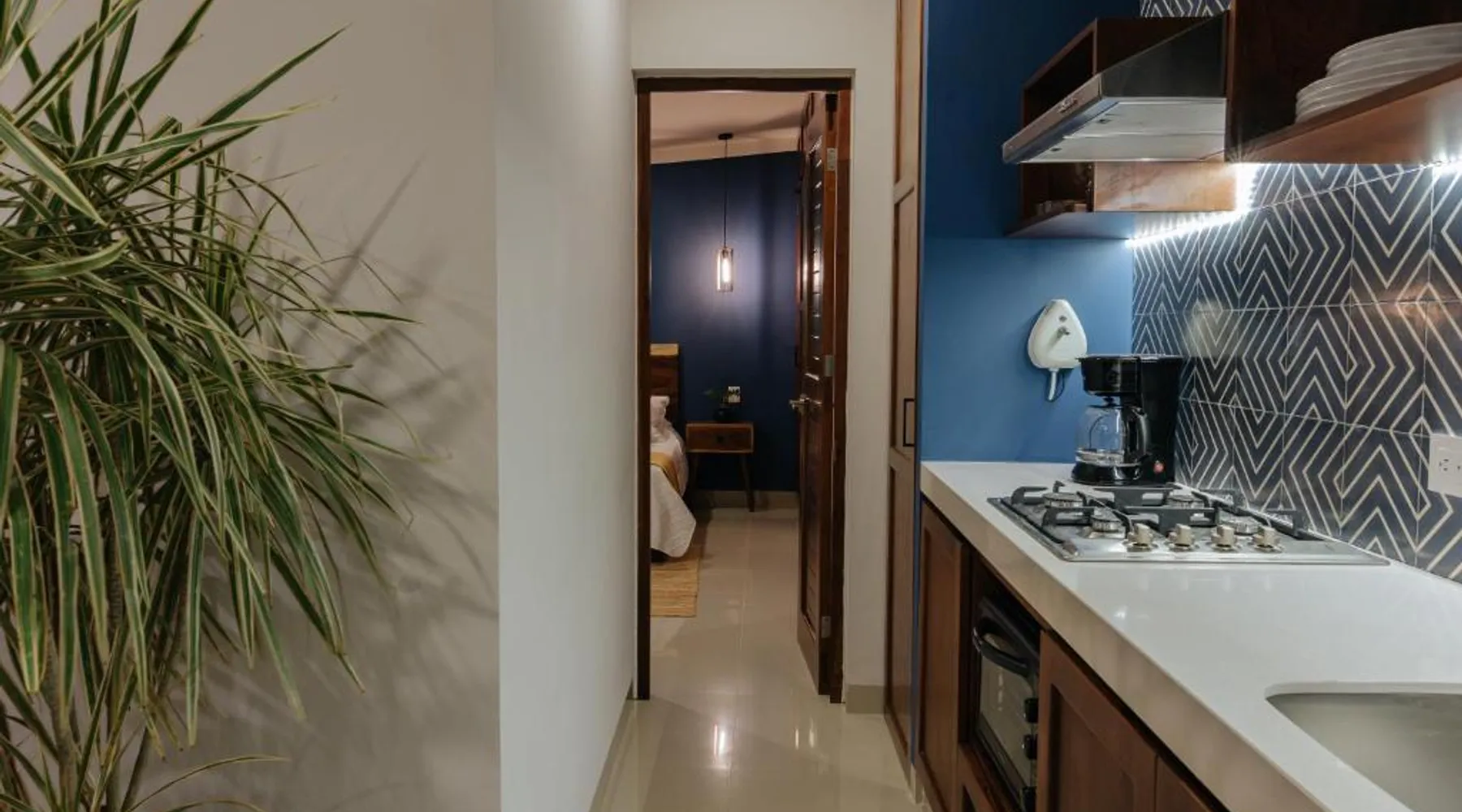 Elegant Accommodations: Mare Lindo Studios in Progreso offers an adults-only apartment with a garden, terrace, and a year-round outdoor swimming pool. Guests enjoy free WiFi, air-conditioning, and a private bathroom. Comfortable Amenities: The apartment features a fully equipped kitchen with a coffee machine, dining table, and outdoor furniture. Additional amenities include a balcony, patio, work desk, and free toiletries. Prime Location: Progreso Beach is a 2-minute walk away, while the Manuel Crescencio Rejón International Airport is 26 mi distant. Nearby attractions include Mundo Maya Museum (19 mi) and Dzibilchaltun Archaeological Site (17 mi). In the well-fitted kitchen, guests will find a stovetop, a refrigerator, kitchenware and a microwave. A seating area with a flat-screen TV, a desk, a terrace and a private bathroom are offered in this studio. The unit has 1 bed.