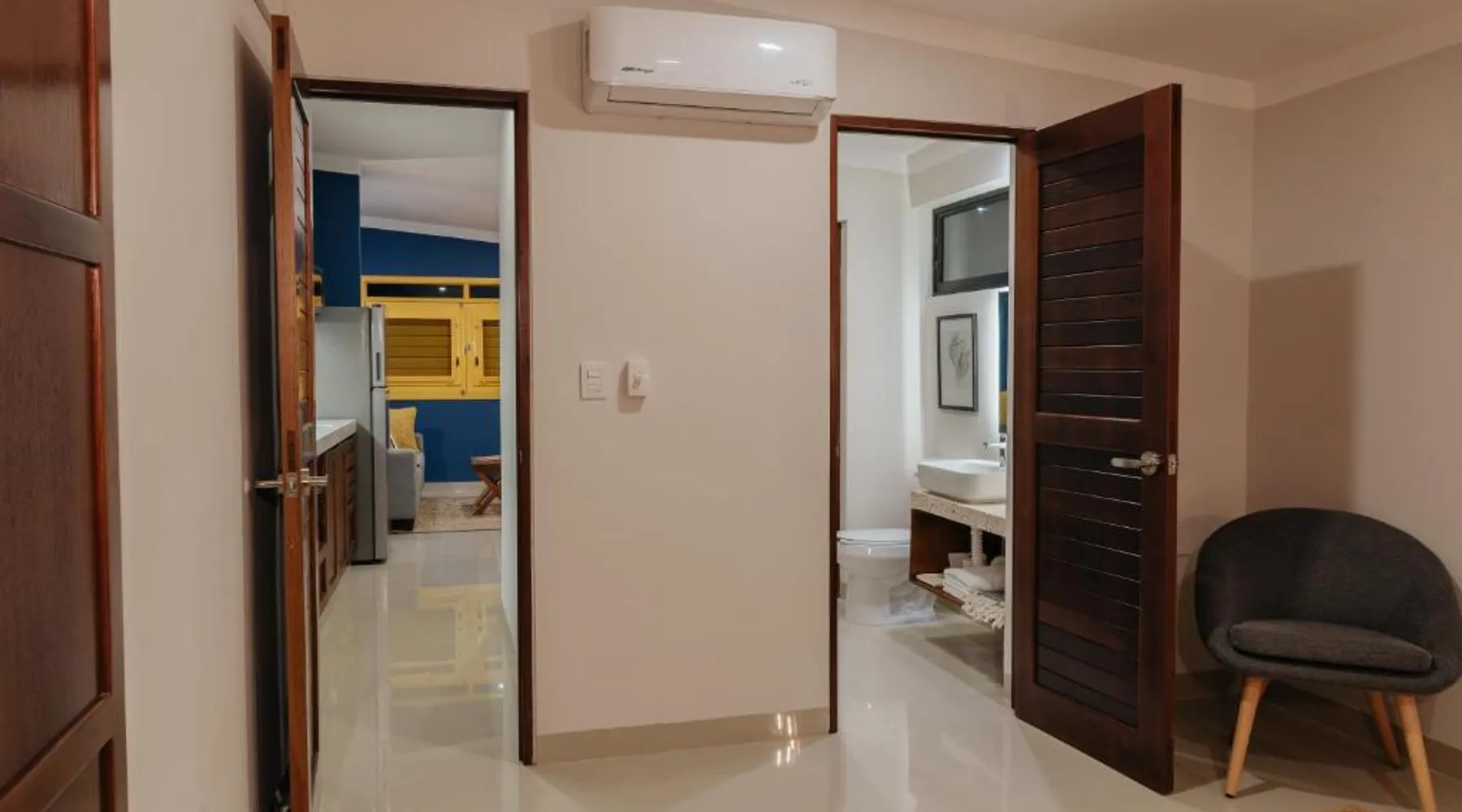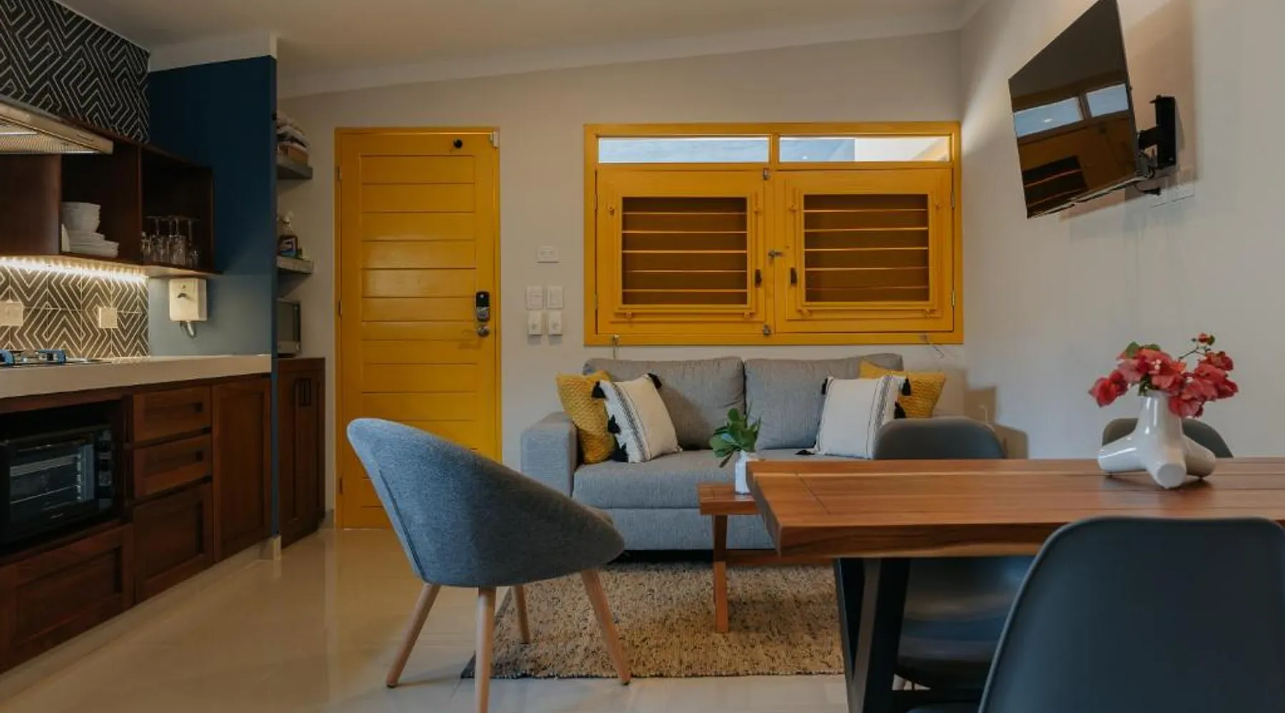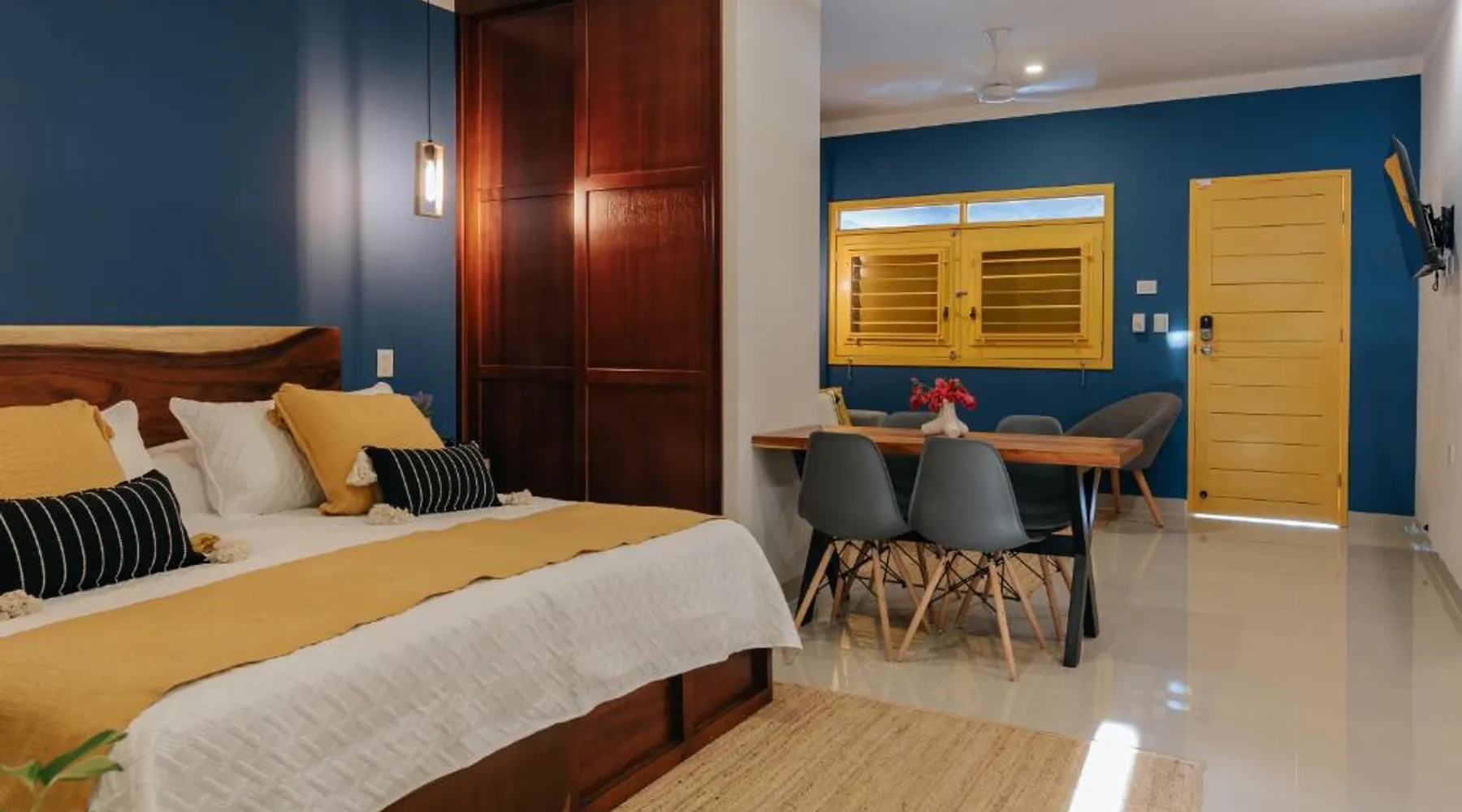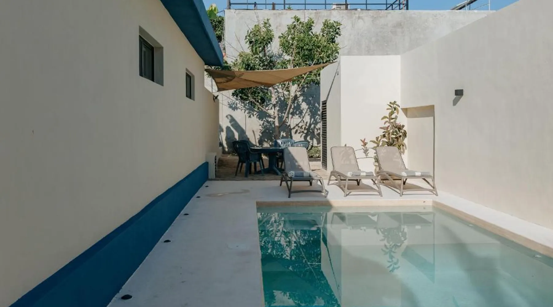 Elegant Accommodations: Mare Lindo Studios in Progreso offers an adults-only apartment with a garden, terrace, and a year-round outdoor swimming pool. Guests enjoy free WiFi, air-conditioning, and a private bathroom. Comfortable Amenities: The apartment features a fully equipped kitchen with a coffee machine, dining table, and outdoor furniture. Additional amenities include a balcony, patio, work desk, and free toiletries. Prime Location: Progreso Beach is a 2-minute walk away, while the Manuel Crescencio Rejón International Airport is 26 mi distant. Nearby attractions include Mundo Maya Museum (19 mi) and Dzibilchaltun Archaeological Site (17 mi). In the well-fitted kitchen, guests will find a stovetop, a refrigerator, kitchenware and a microwave. A seating area with a flat-screen TV, a desk, a terrace and a private bathroom are offered in this studio. The unit has 1 bed.