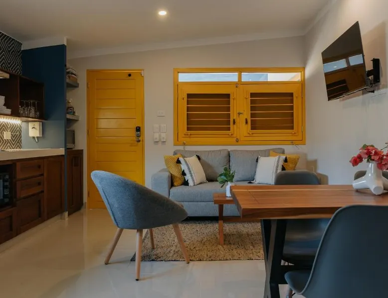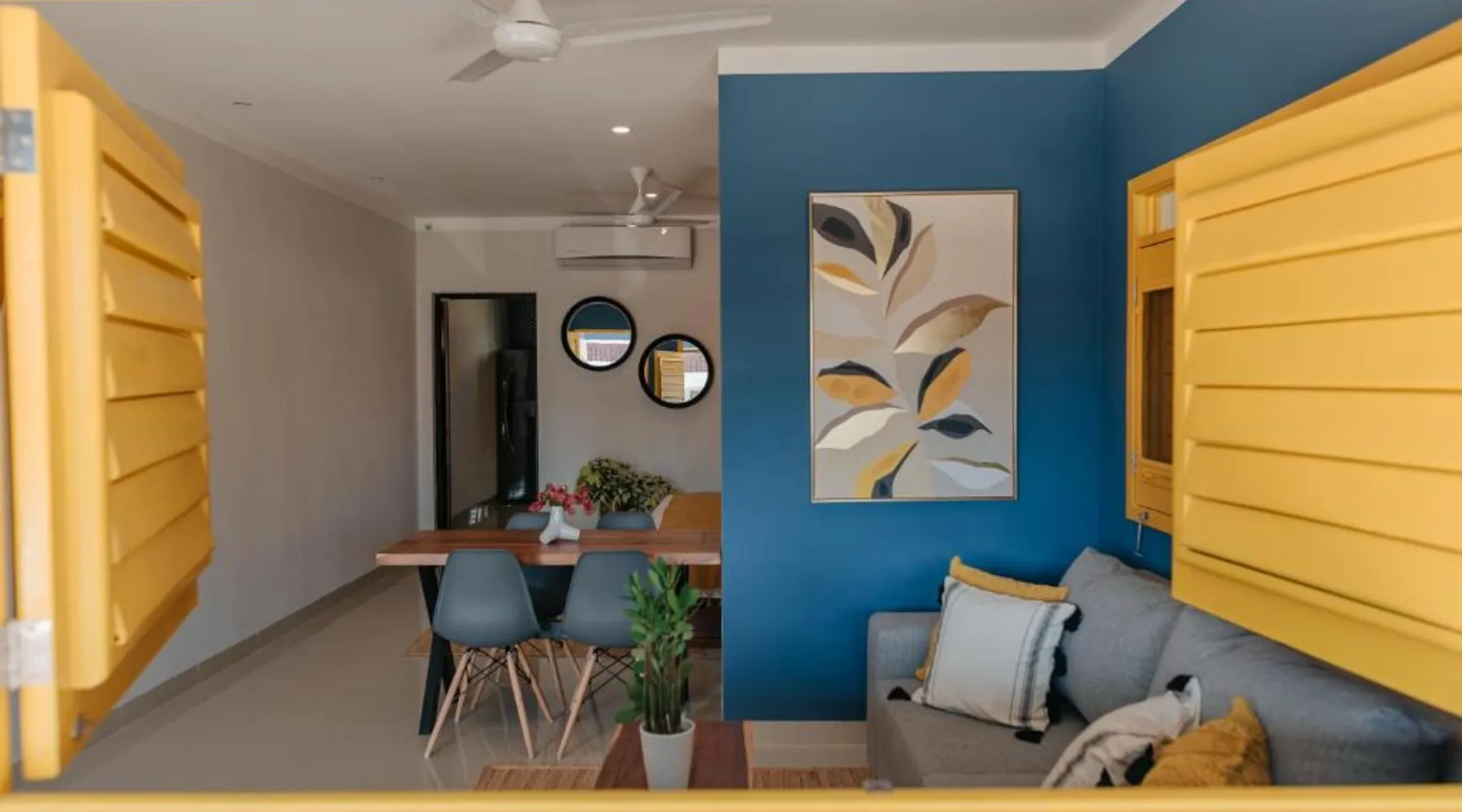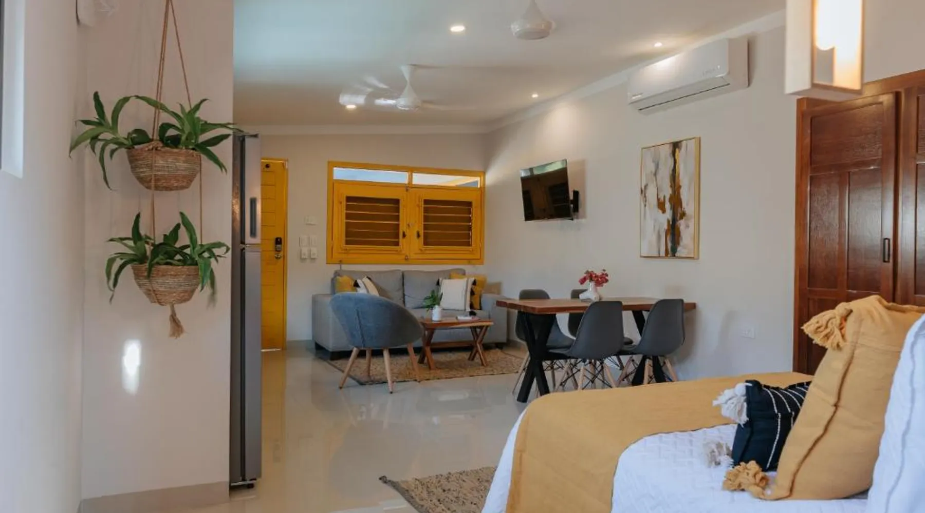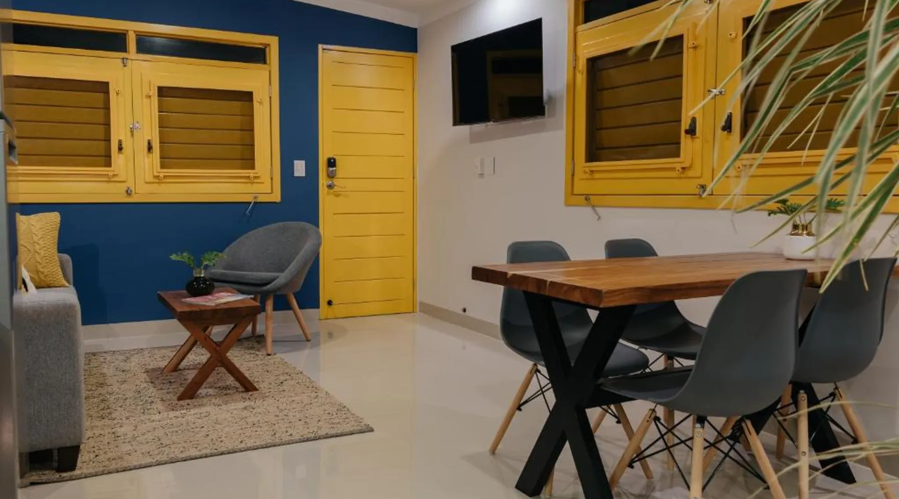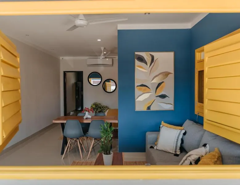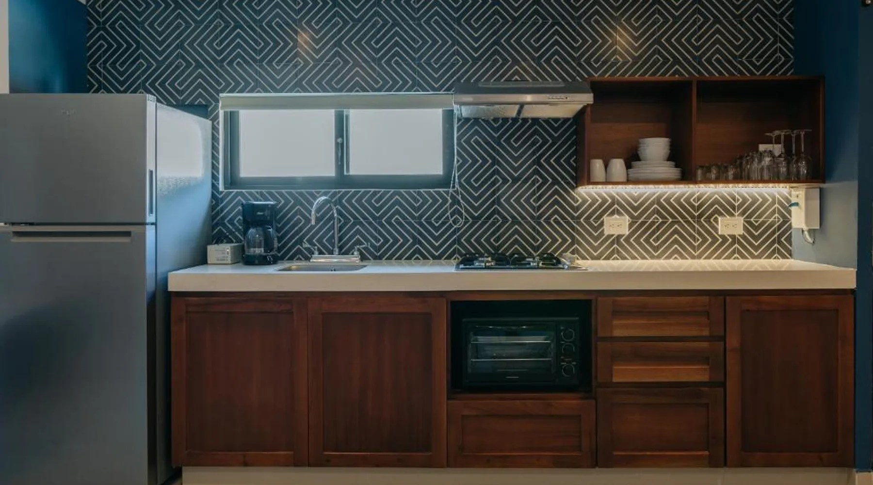Elegant Accommodations: Mare Lindo Studios in Progreso offers an adults-only apartment with a garden, terrace, and a year-round outdoor swimming pool. Guests enjoy free WiFi, air-conditioning, and a private bathroom. Comfortable Amenities: The apartment features a fully equipped kitchen with a coffee machine, dining table, and outdoor furniture. Additional amenities include a balcony, patio, work desk, and free toiletries. Prime Location: Progreso Beach is a 2-minute walk away, while the Manuel Crescencio Rejón International Airport is 26 mi distant. Nearby attractions include Mundo Maya Museum (19 mi) and Dzibilchaltun Archaeological Site (17 mi). In the well-fitted kitchen, guests will find a stovetop, a refrigerator, kitchenware and a microwave. A seating area with a flat-screen TV, a desk, a terrace and a private bathroom are offered in this studio. The unit has 1 bed.