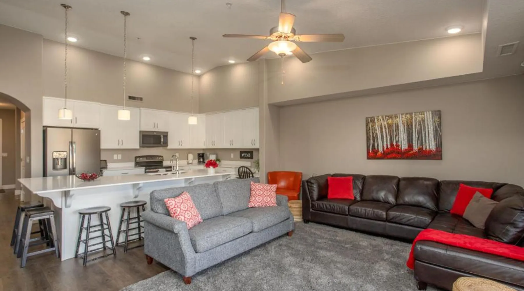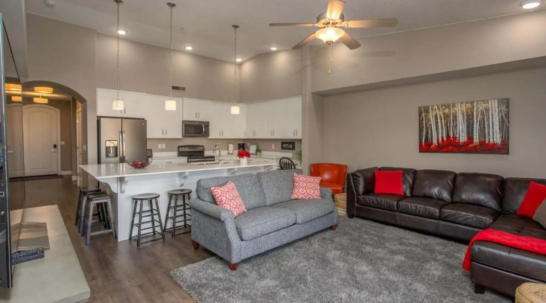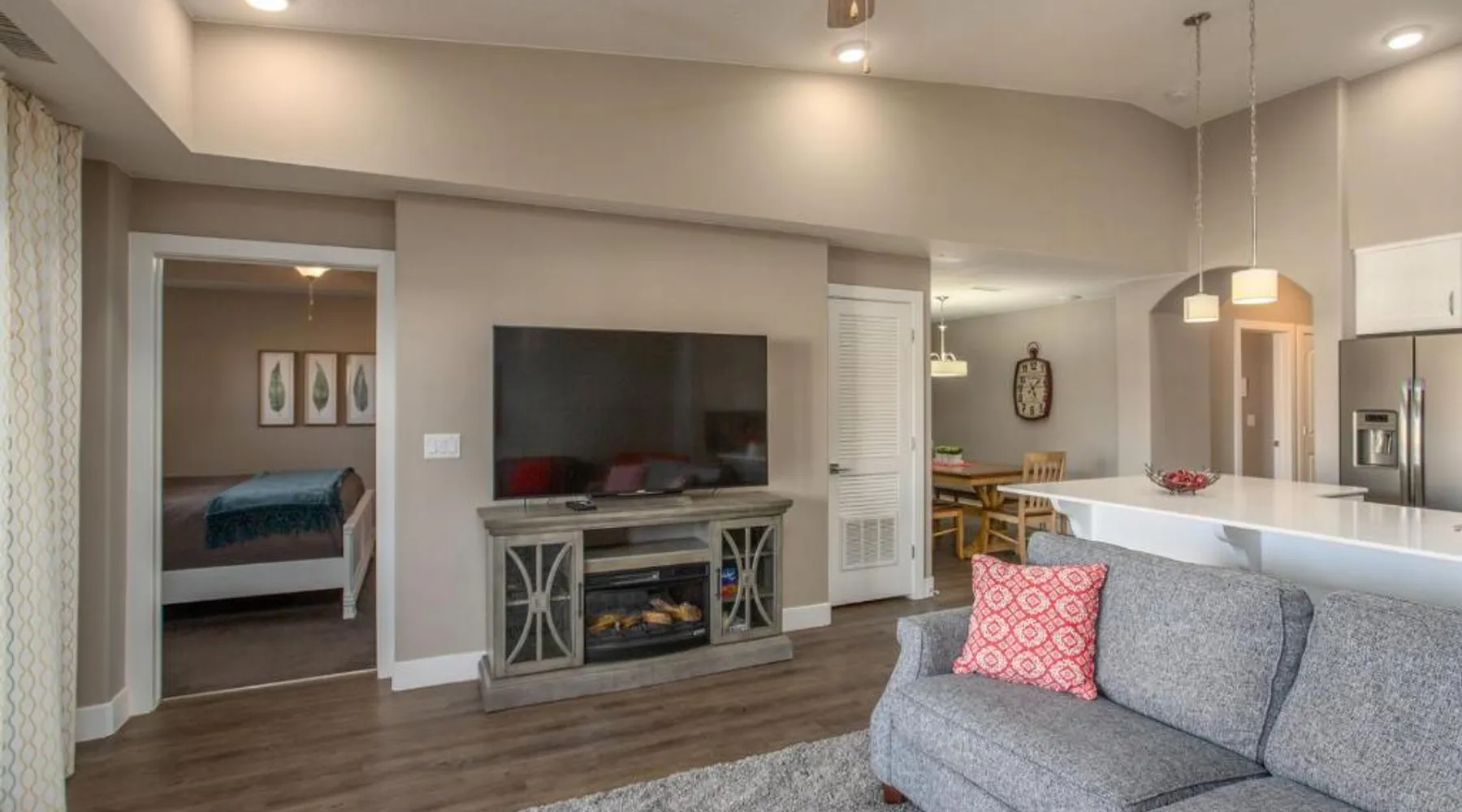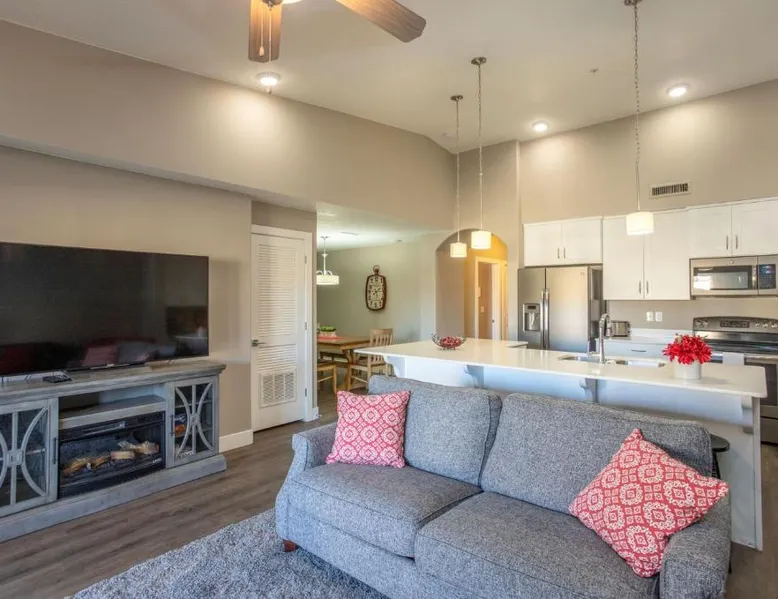 Comfortable Accommodations: W307 Third Floor 3-bedroom Pool View in St. George offers a hotel with a garden and free WiFi. Guests can enjoy mountain views from their balcony and relax in the children's playground. Modern Amenities: The property features air-conditioning, a fully equipped kitchen with a dishwasher, oven, and stovetop. Additional amenities include a barbecue, tea and coffee maker, and a TV. Free on-site private parking is available. Convenient Location: Located 16 mi from St. George Regional Airport, the hotel is a 5-minute walk from Coral Canyon Golf Club. Nearby attractions include St George Temple and Brigham Young Winter Home Historical Site, each 5 mi away. Guests will find a stovetop, a dishwasher, kitchenware and an oven in the kitchen. The family room also includes a barbecue. The air-conditioned family room features a flat-screen TV with cable channels, a private entrance, a tea and coffee maker, a safe deposit box as well as mountain views.