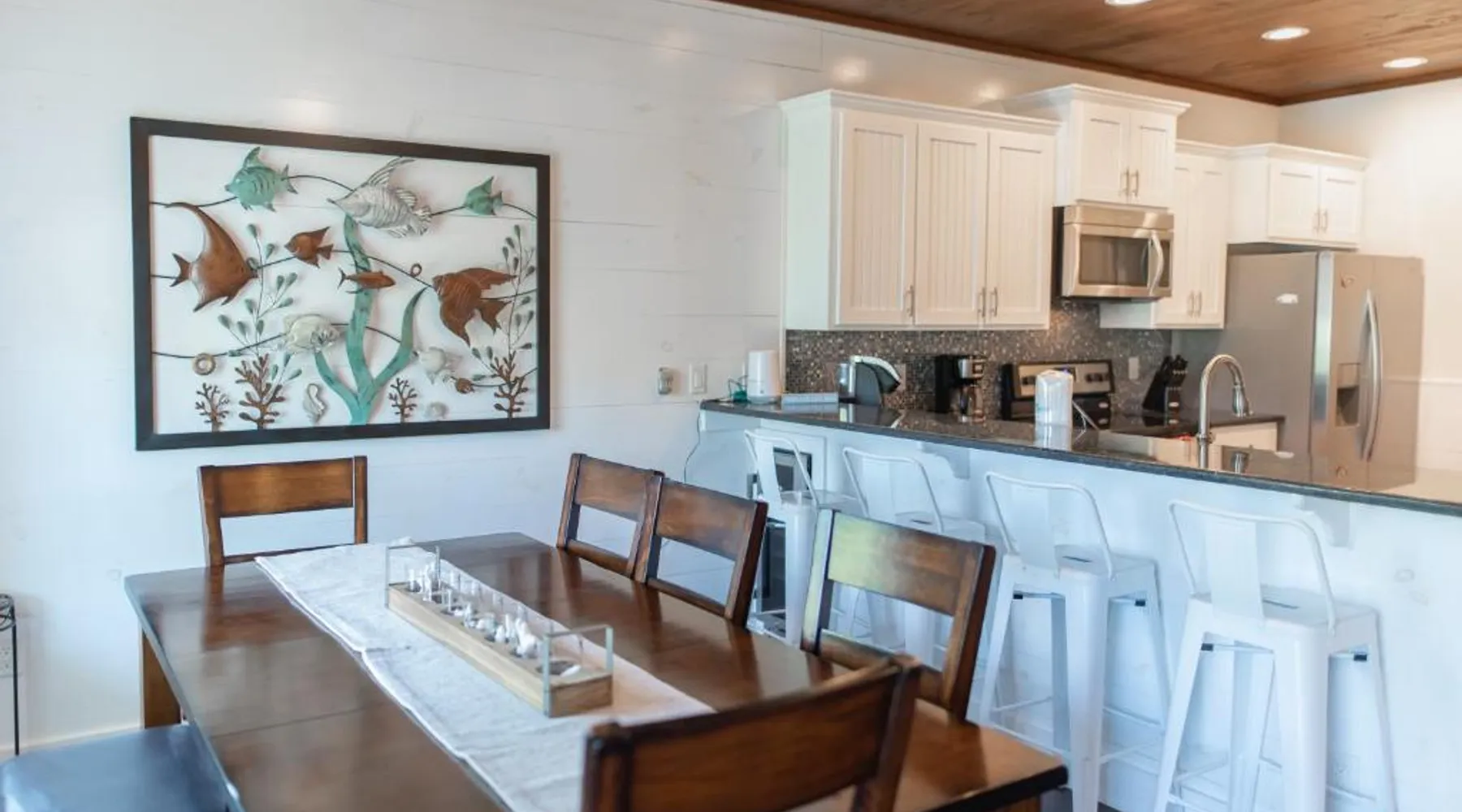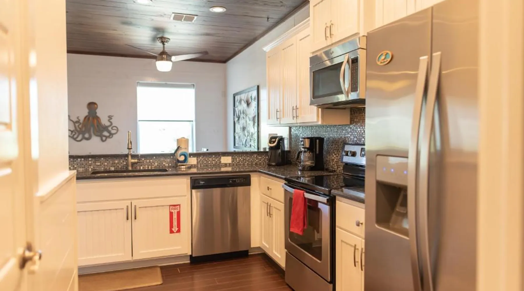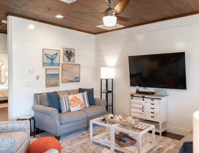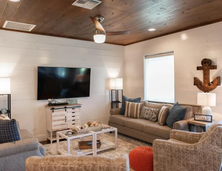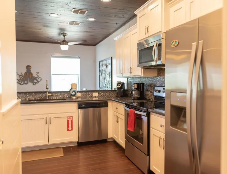 Spacious Accommodations: Getaway in Port Aransas offers a spacious holiday home with three bedrooms and three bathrooms. The property includes a living room and family rooms, ensuring comfort for all guests. Outdoor Amenities: Guests can enjoy an outdoor swimming pool and free WiFi. Additional facilities include a waterpark and beauty services, providing entertainment and relaxation options. Convenient Location: Located 39 mi from Corpus Christi International Airport, Getaway is near Port Aransas Beach (1.1 mi), Port Aransas Marina (15-minute walk), and Port Aransas Museum (1640 feet). Other attractions include Port Aransas Nature Preserve (1.6 mi) and Mustang Island State Park (14 mi). Boasting a private entrance, this spacious holiday home also features 3 separate bedrooms, 3 bathrooms, a living room and a kitchen. Guests will find a stovetop, a refrigerator, a dishwasher and kitchenware in the fully equipped kitchen. The holiday home also comes with a barbecue. The air-conditioned holiday home features a TV with cable channels, a washing machine, a tea and coffee maker, tumble dryer as well as sea views. The unit has 4 beds.