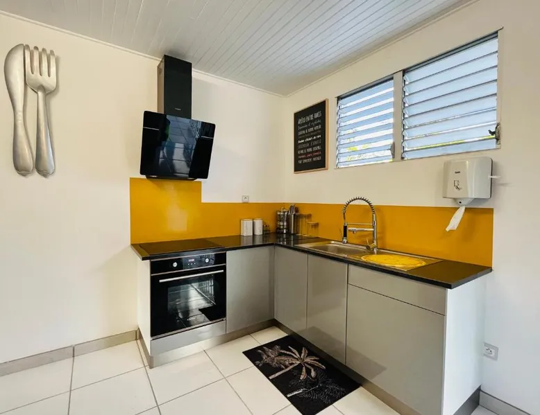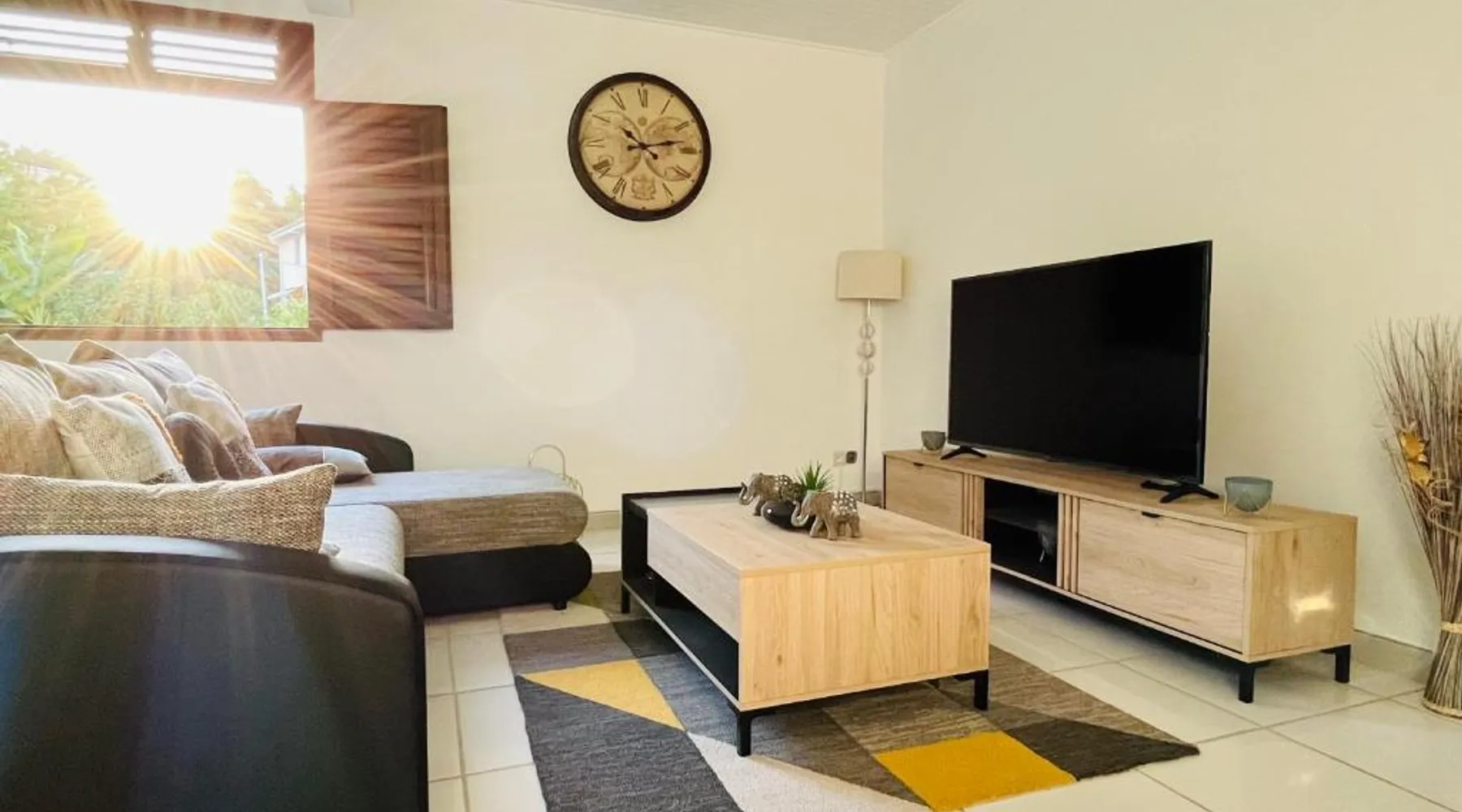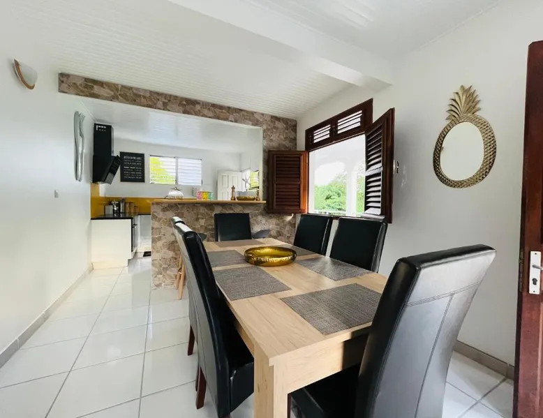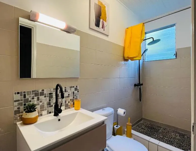 Spacious Accommodations: Appartement Manou in Le Lamentin offers a spacious, recently renovated apartment with three bedrooms and two bathrooms. The property features a sun terrace and a garden, providing ample space for relaxation. Modern Amenities: Guests enjoy free WiFi, air-conditioning, and a fully equipped kitchen with a washing machine. Additional facilities include a balcony, terrace, and outdoor seating area, ideal for outdoor dining. Convenient Location: Located 4.3 mi from Martinique Aime Cesaire International Airport, the apartment is highly rated for its friendly host and convenient location. Free on-site private parking is available for guests. Boasting a private entrance, this spacious apartment also comes with 3 bedrooms, a seating area and 2 bathrooms with a walk-in shower and a hairdryer. Guests will find a stovetop, a refrigerator, kitchenware and an oven in the well-equipped kitchen. The apartment also includes a barbecue. The air-conditioned apartment features a flat-screen TV with streaming services, a washing machine, a tea and coffee maker, a dining area as well as garden views. The unit has 3 beds.