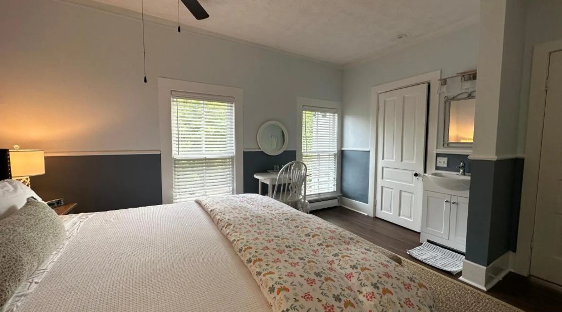 Comfortable Accommodations: The Belvedere B&B in Charlevoix offers air-conditioned rooms with private bathrooms, free WiFi, and modern amenities. Each room includes a wardrobe, hairdryer, free toiletries, shower, and a seating area. Relaxing Facilities: Guests can enjoy a lounge and outdoor seating area, perfect for unwinding. The property provides free on-site private parking and a fully equipped kitchenette for added convenience. Delicious Breakfast: A variety of breakfast options are available, including American, full English/Irish, vegetarian, and gluten-free. The breakfast area features a coffee machine, tea and coffee maker, and a refrigerator. Local Attractions: Depot Beach is 1.6 mi away, Andrew J. Blackbird Museum 27 mi, and Monument Golf Course 23 mi from the property. Pellston Regional Airport is 38 mi distant. An ice-skating rink is located in the surrounding area. The double room offers air conditioning, a wardrobe, as well as a private bathroom featuring a shower and a hairdryer. The double room features parquet floors and heating. The unit offers 1 bed.
