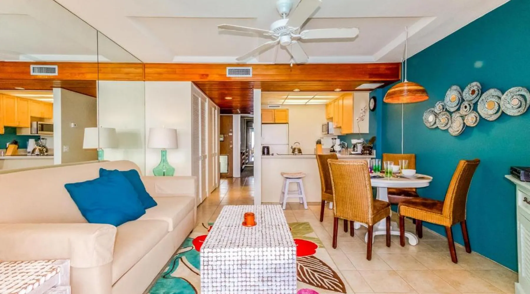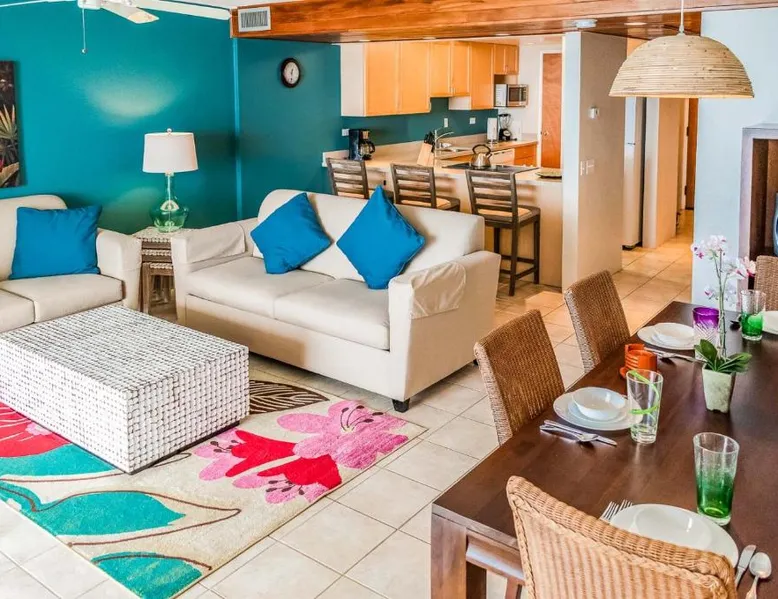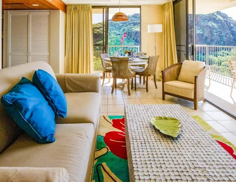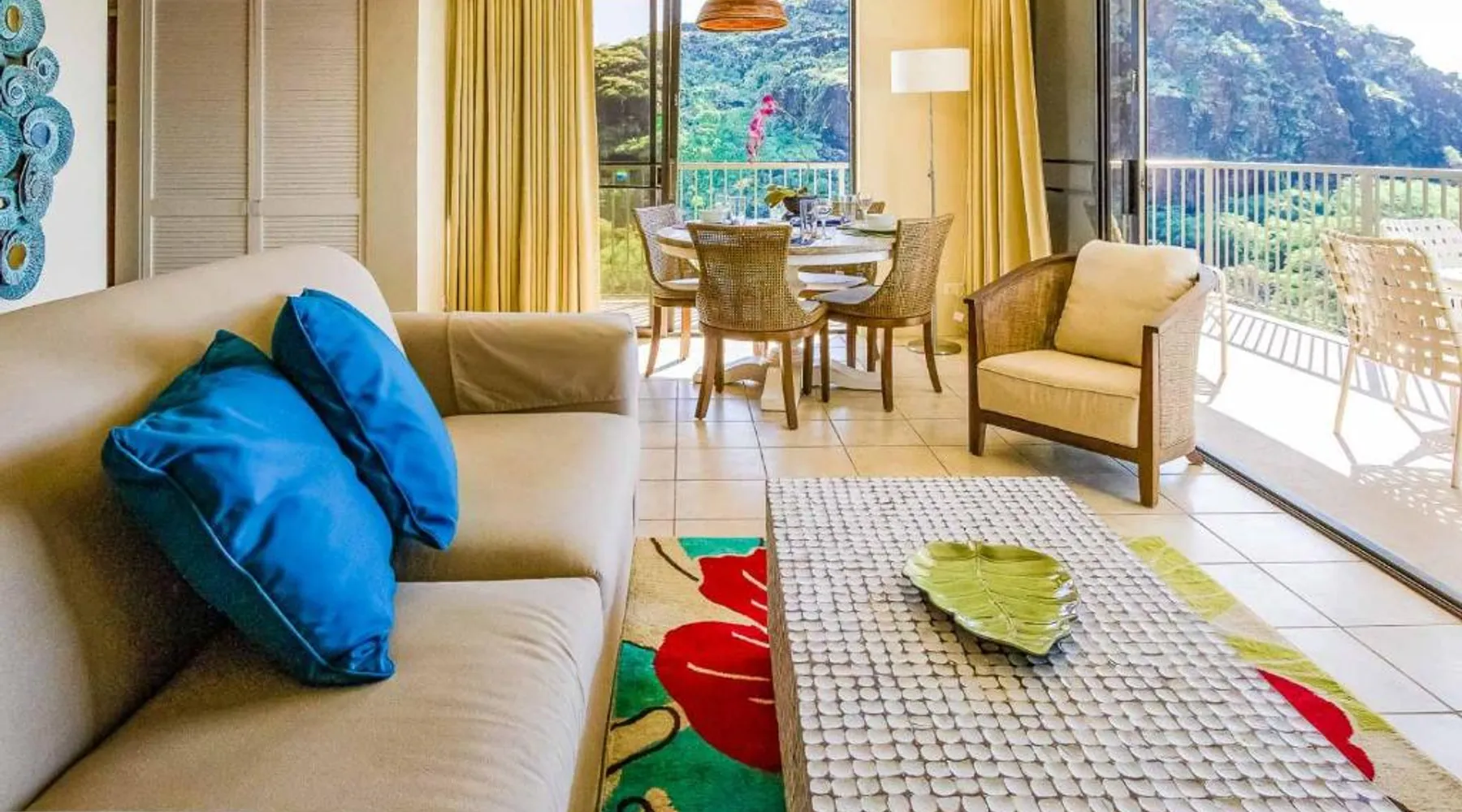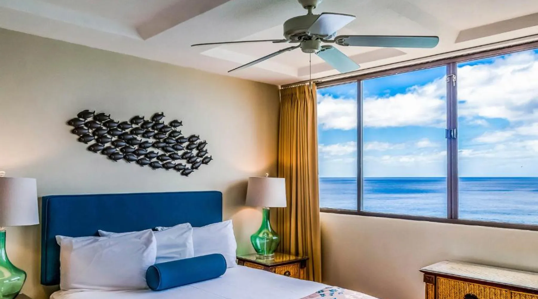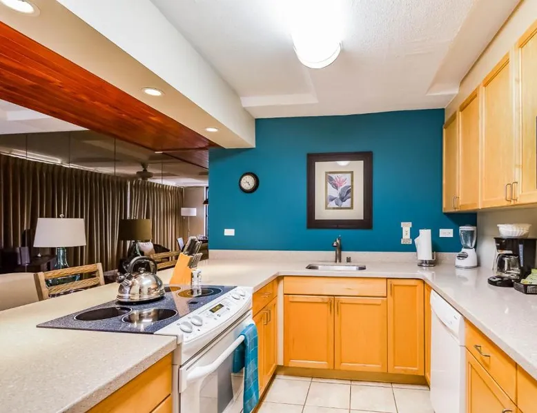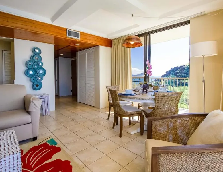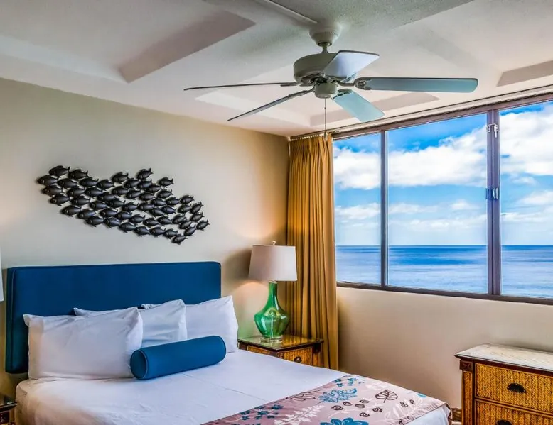Beachfront Location: Hawaiian Princess Makaha in Waianae offers direct beachfront access and stunning sea views. Guests enjoy a serene setting with Mauna Lahilahi Beach Park just a six-minute walk away. Outdoor Facilities: The aparthotel features an outdoor swimming pool and a hot tub, perfect for relaxation. Free WiFi is available throughout the property, ensuring connectivity for all visitors. Comfortable Accommodations: Rooms include air-conditioning, kitchenettes, balconies, and private bathrooms. Additional amenities include a washing machine, dishwasher, and free toiletries, catering to all guest needs. Nearby Attractions: Honolulu International Airport is 30 mi away, while USS Bowfin Submarine Museum & Park lies 27 mi from the property. Other nearby points of interest include Pearl Harbor and the USS Arizona Memorial, each approximately 28 mi distant. This spacious suite comes with 1 living room, 2 separate bedrooms and 1 bathroom with a bath and free toiletries. Meals can be prepared in the well-fitted kitchen, which features a stovetop, a refrigerator, a dishwasher and kitchenware. The air-conditioned suite features a flat-screen TV with cable channels, a washing machine, a private entrance, a tea and coffee maker as well as sea views. The unit has 4 beds.