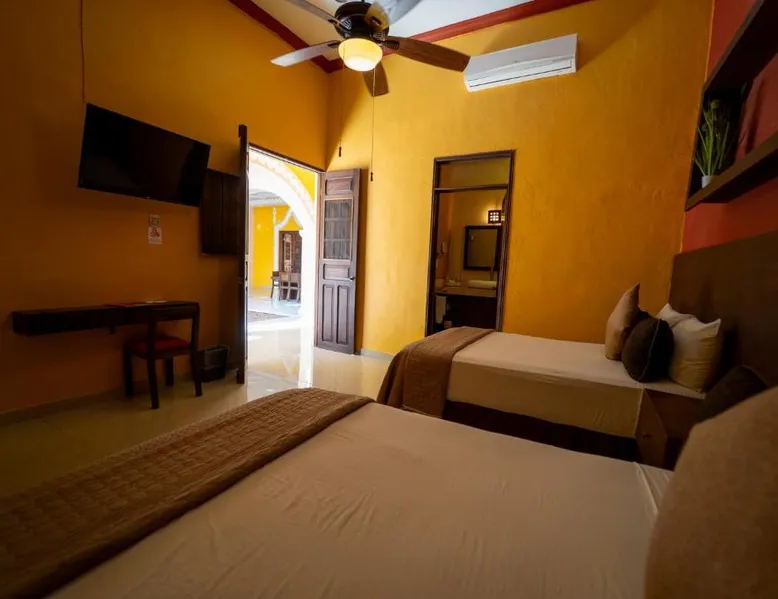 Located in the small town of Izamal, this beautiful Mexican-style hotel features an outdoor swimming pool and views of San Anotnio de Padua Convent. It offers guided tours and free Wi-Fi in the lobby. The air-conditioned rooms at Hotel Rinconada del Convento feature a seating area, a satellite TV and a private balcony. Many have excellent views of the convent. The private bathrooms come with a shower and free toiletries. There is a small food market just 656 feet from the property, and guests can find other dining options within 0.6 mi. Merida, where guests will find shopping, sightseeing and nightlife, is a 1-hour drive from the property, while guests will find a small Mayan archaeological site 1969 feet away. The double room features air conditioning, a wardrobe, as well as a private bathroom boasting a walk-in shower and a hairdryer. The unit has 1 bed.