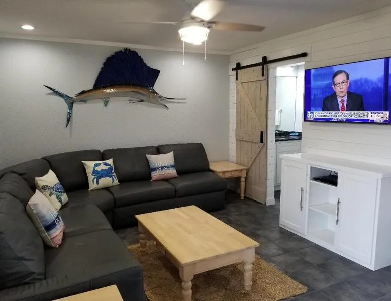 Spacious Holiday Home in Port Aransas: Bay Tree A 78 offers a spacious holiday home in Port Aransas. The property features a garden, restaurant, massage services, and free WiFi. Comfortable Living Spaces: The home includes a living room with air-conditioning, a balcony, and a private bathroom. Amenities include a washing machine, patio, and a fully equipped kitchen with modern appliances. Convenient Facilities: Guests can enjoy a children's playground, free on-site parking, and a dining area. Additional amenities include a barbecue, tea and coffee maker, and a TV. Nearby Attractions: Located 1.2 mi from I. B. Magee Beach Park and Port Aransas Marina, the property is also close to Port Aransas Art Center and Port Aransas Museum. Corpus Christi International Airport is 41 mi away. The apartment offers tumble dryer, heating, as well as a private bathroom boasting a hairdryer. Guests will find a stovetop, a refrigerator, a dishwasher and kitchenware in the well-equipped kitchen. The apartment also includes a barbecue. The spacious air-conditioned apartment features a TV with cable channels, a washing machine, a tea and coffee maker, a dining area as well as garden views. The unit has 4 beds.