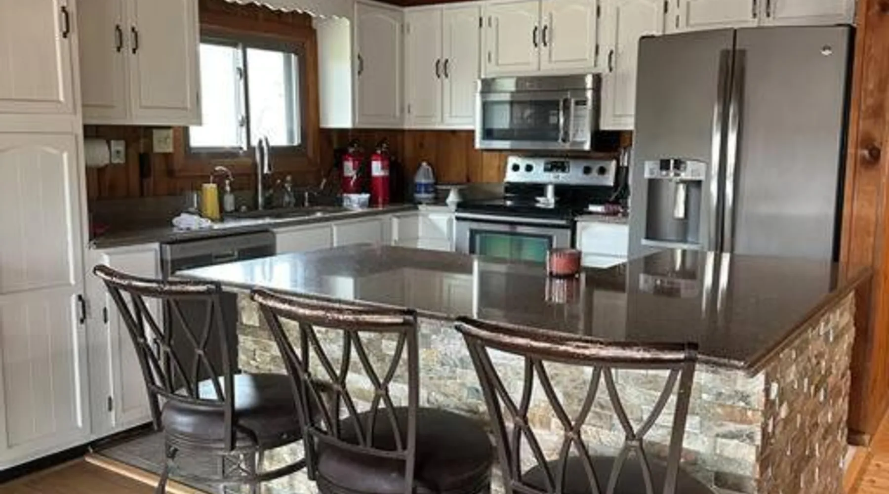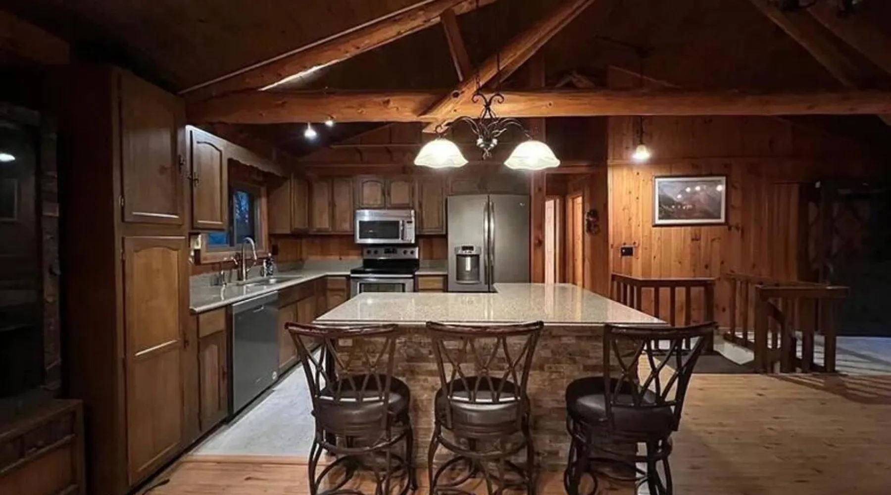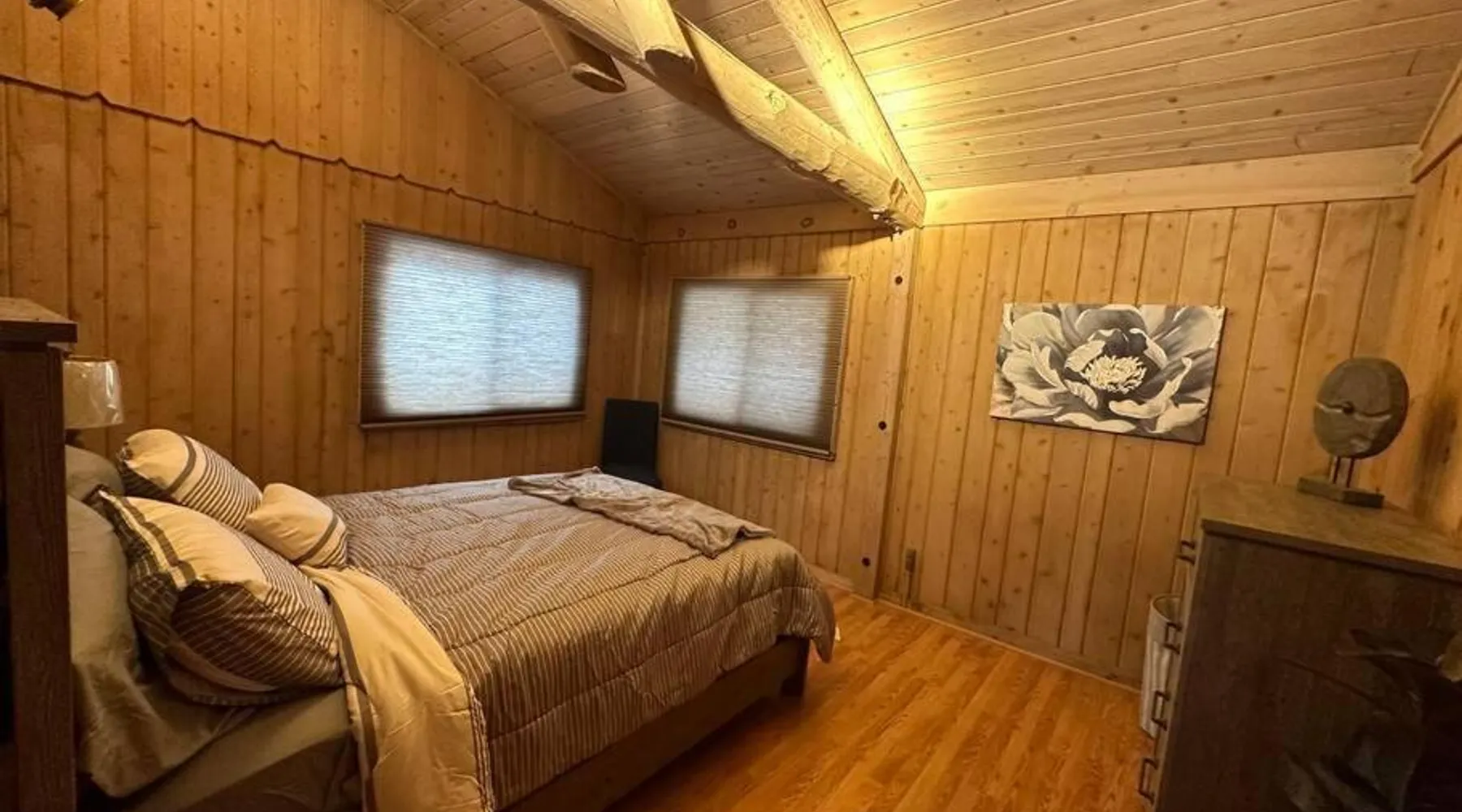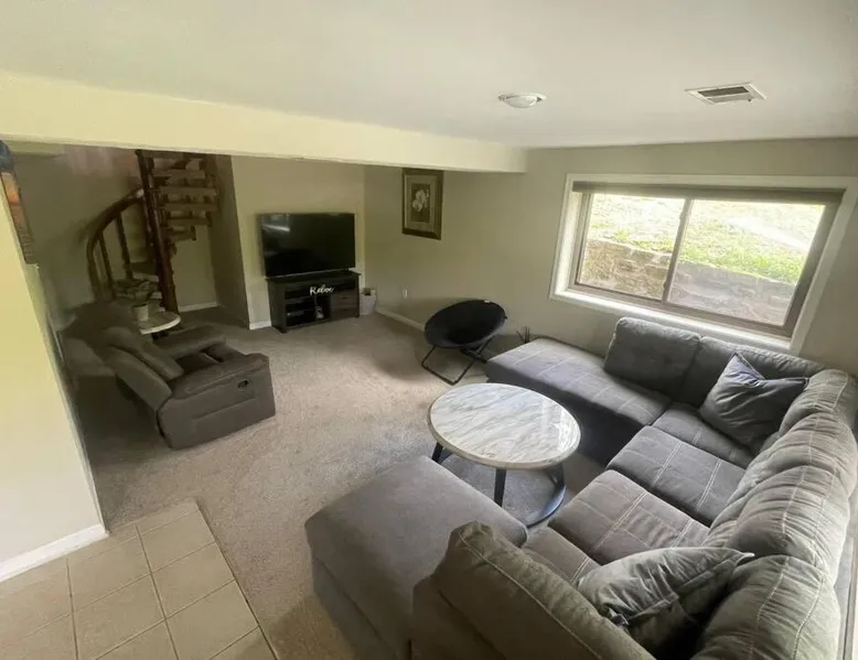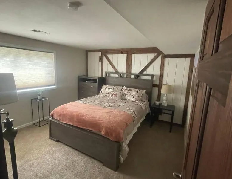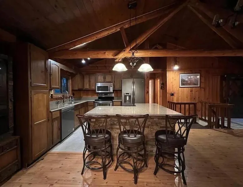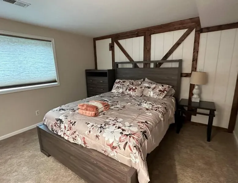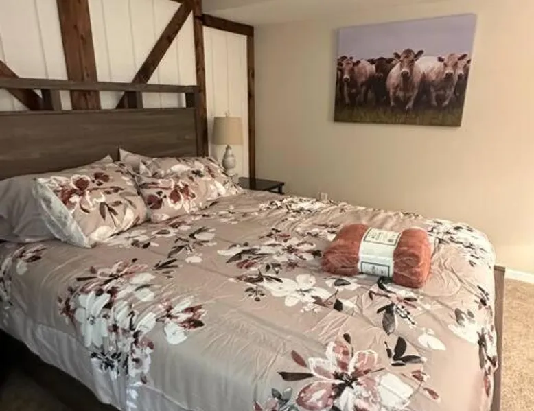Spacious Accommodations: Timber Frame Country Retreat in Boone County offers a spacious chalet with three bedrooms and two bathrooms. The living room features a sofa and a work desk, ensuring comfort for all guests. Modern Amenities: Guests enjoy free WiFi, air-conditioning, and a fully equipped kitchen. Additional facilities include a terrace, balcony, outdoor fireplace, and barbecue areas. Free on-site private parking is available. Outdoor Activities: The property is located near Pioneer Park (14 mi), Creation Museum (16 mi), and Cincinnati Zoo (24 mi). Activities such as fishing and canoeing are popular in the surrounding area. Convenient Location: Located 8.1 mi from Cincinnati/Northern Kentucky International Airport, the retreat provides easy access to local attractions. Highly rated by guests, it offers a relaxing and enjoyable stay. This chalet features a fireplace. The well-fitted kitchen has a stovetop, a refrigerator, a dishwasher and an oven. The spacious air-conditioned chalet offers a flat-screen TV with streaming services, a washing machine, a private entrance, a tea and coffee maker as well as lake views. The unit has 5 beds.