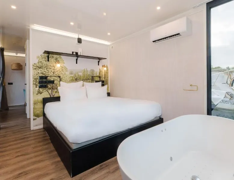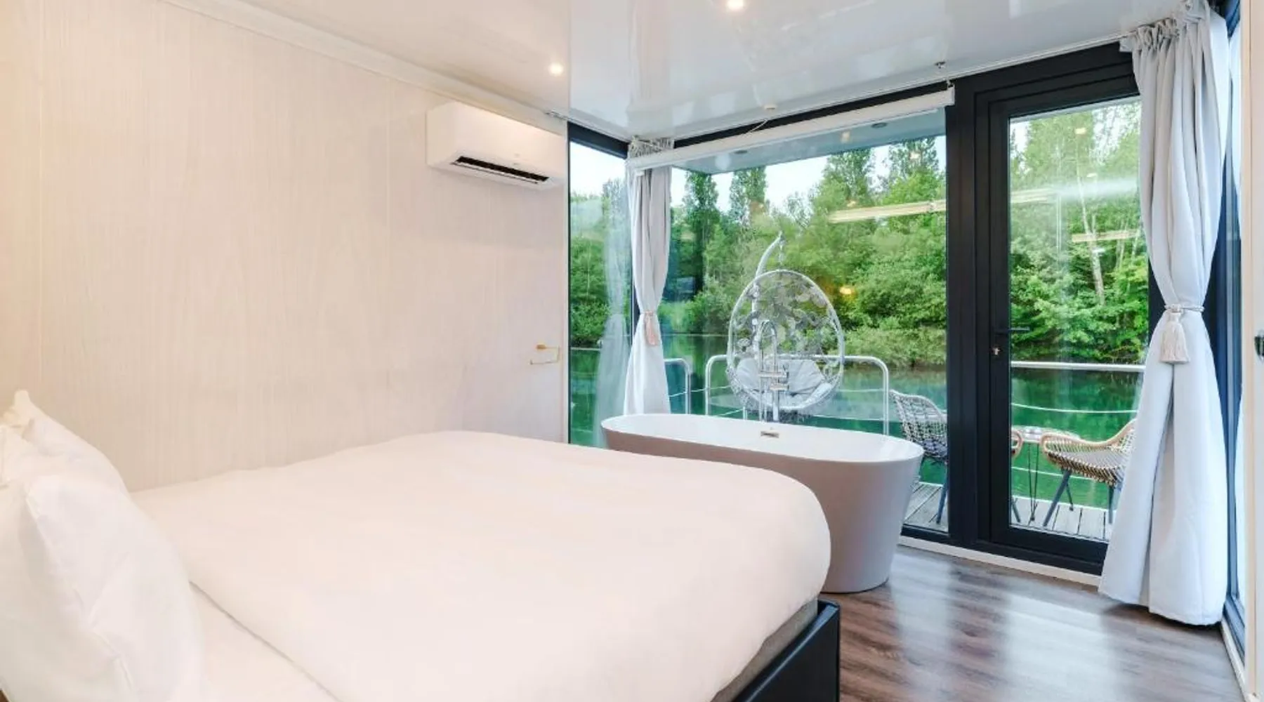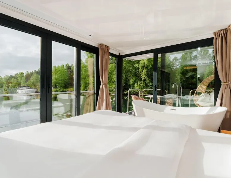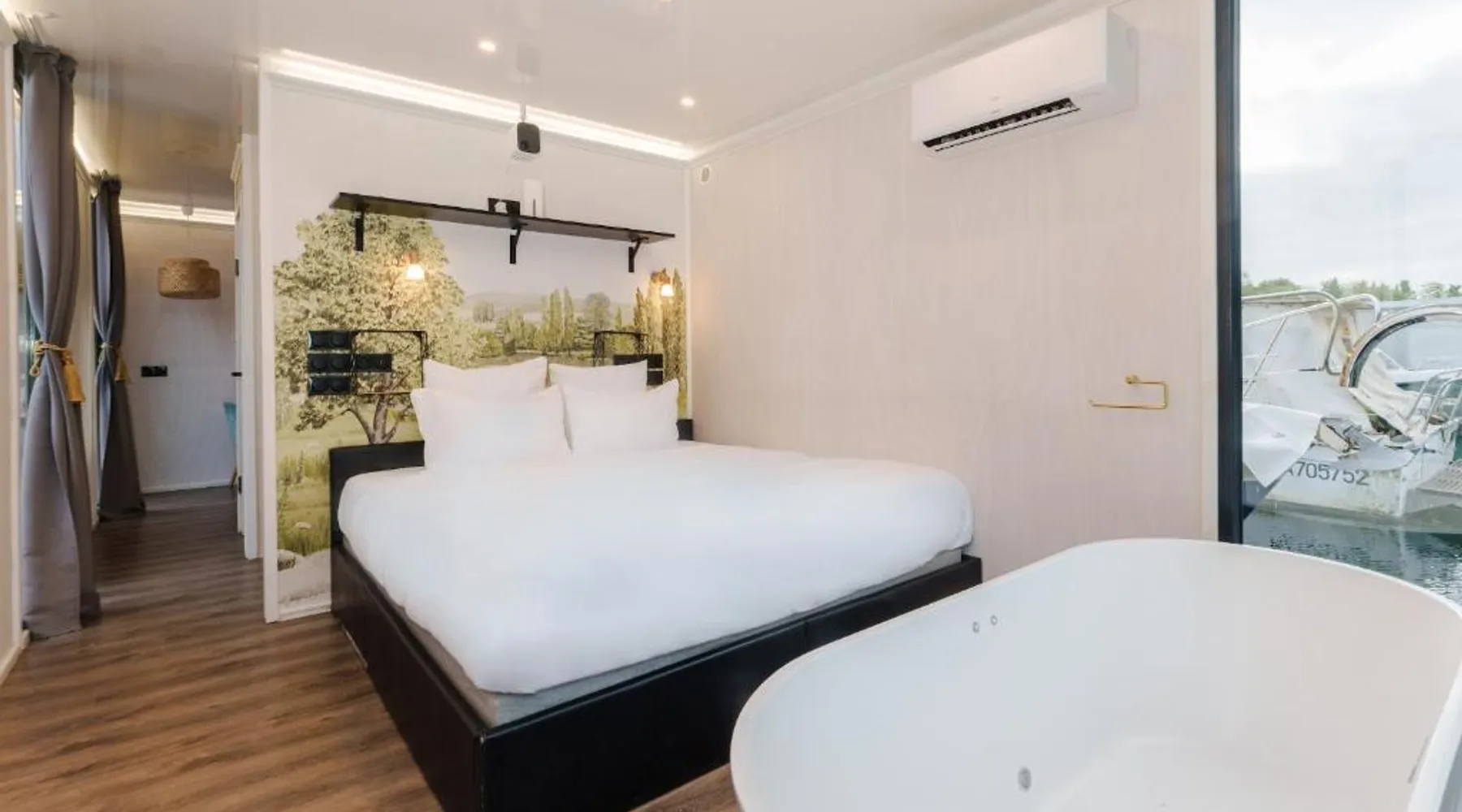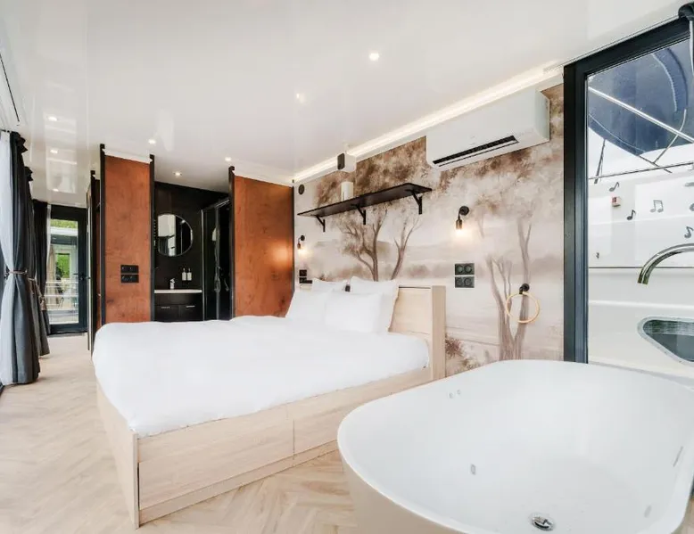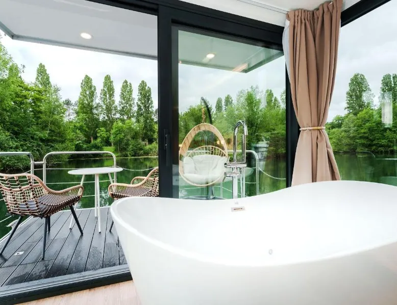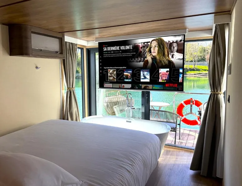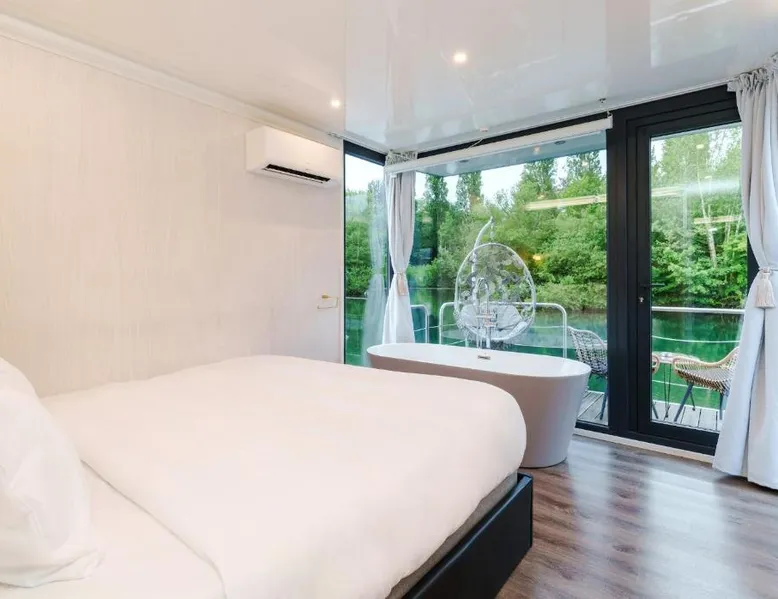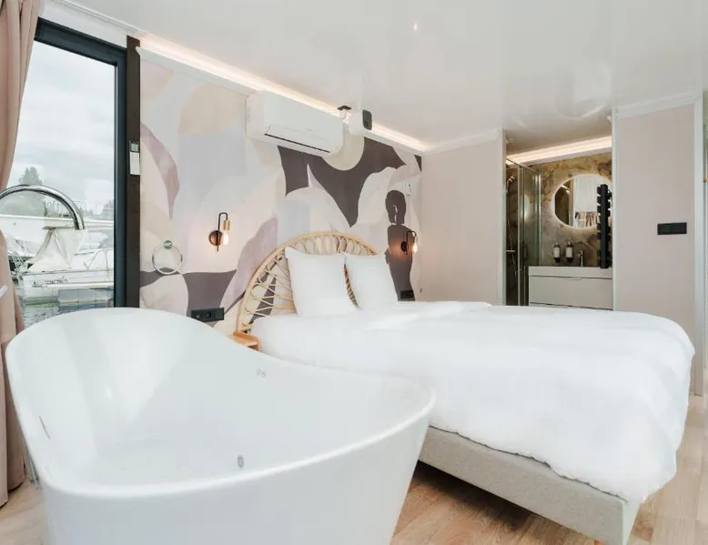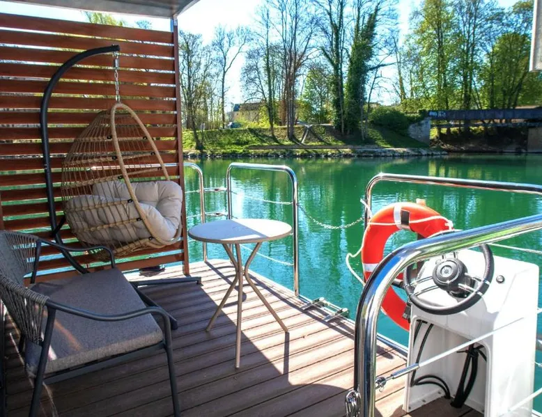 Comfortable Accommodations: L'Escale Royale Saint-Fargeau-Ponthierry in Boissise-le-Roi offers a boat with a terrace and free WiFi. Guests enjoy air-conditioning, a hot tub, and a kitchenette. Breakfast and Amenities: A continental breakfast includes juice and fresh pastries. Additional amenities include a spa bath, private bathroom, and streaming services. Prime Location: Located 19 mi from Paris Orly Airport, the property is near attractions such as Luxembourg Gardens (28 mi) and the Louver Museum (29 mi). Guests appreciate the scenic views and the friendly host. Guests will have a special experience as the suite provides a hot tub. Featuring a private entrance, this air-conditioned suite consists of a kitchen, 1 bedroom and 1 bathroom with a bath and a shower. Meals can be prepared in the kitchen, which is equipped with a stovetop, a refrigerator, kitchenware and a microwave. The unit features soundproof walls, lake views, a terrace and chocolate is provided for guests. The unit offers 1 bed.