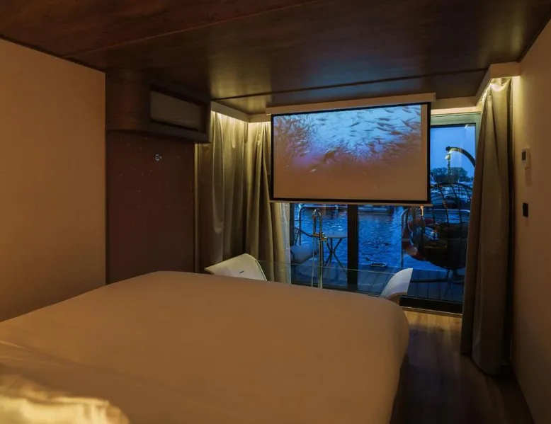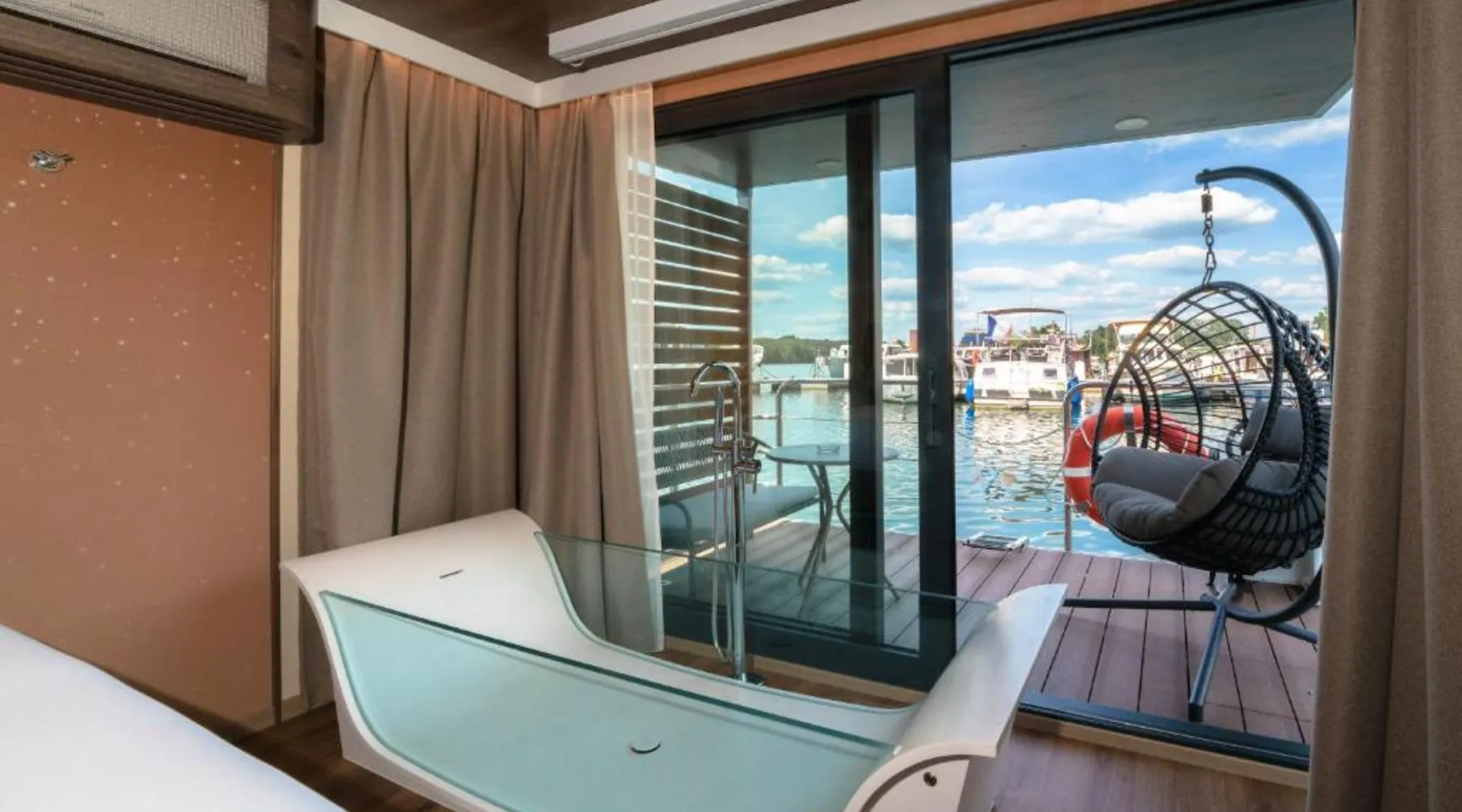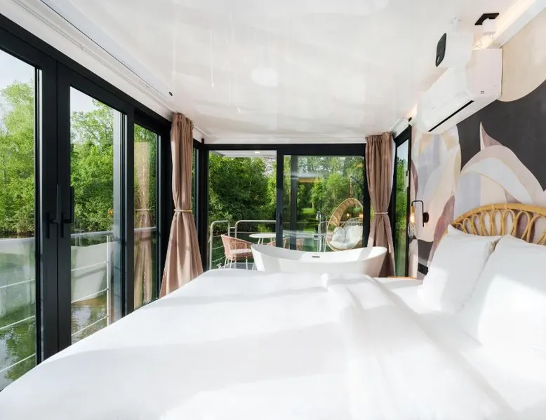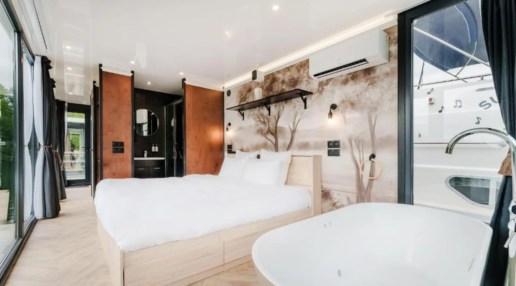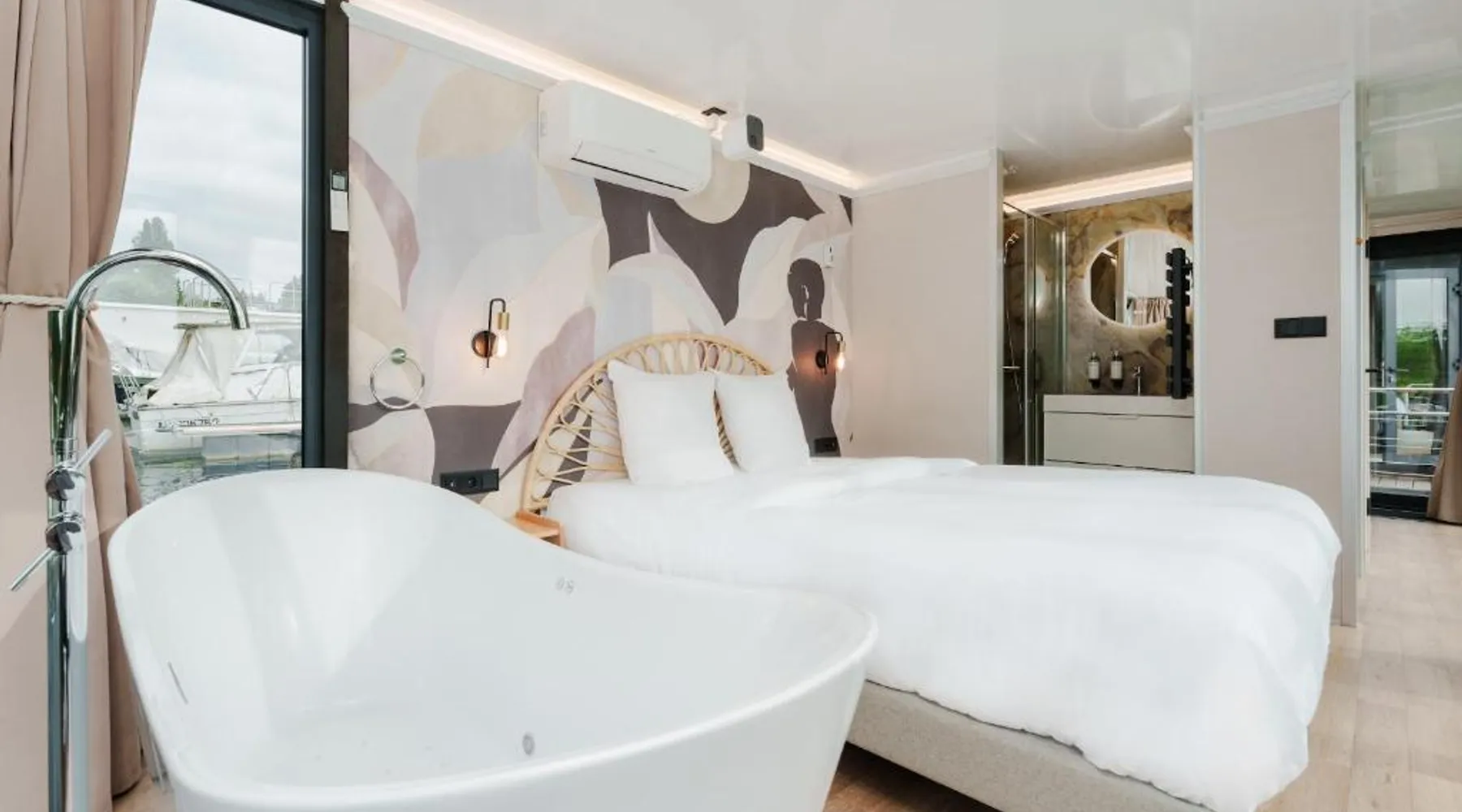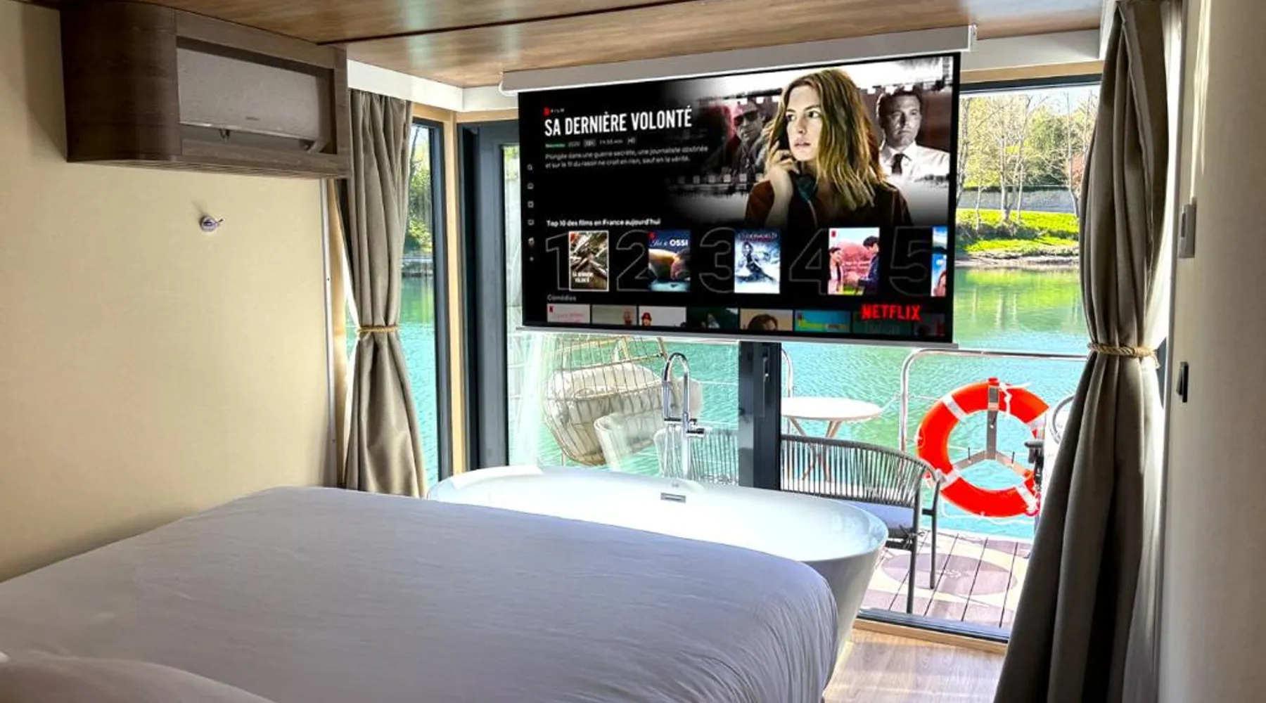 Comfortable Accommodations: L'Escale Royale Saint-Fargeau-Ponthierry in Boissise-le-Roi offers a boat with a terrace and free WiFi. Guests enjoy air-conditioning, a hot tub, and a kitchenette. Breakfast and Amenities: A continental breakfast includes juice and fresh pastries. Additional amenities include a spa bath, private bathroom, and streaming services. Prime Location: Located 19 mi from Paris Orly Airport, the property is near attractions such as Luxembourg Gardens (28 mi) and the Louver Museum (29 mi). Guests appreciate the scenic views and the friendly host. Guests will have a special experience as the suite provides a hot tub. Featuring a private entrance, this air-conditioned suite consists of a kitchen, 1 bedroom and 1 bathroom with a bath and a shower. Meals can be prepared in the kitchen, which is equipped with a stovetop, a refrigerator, kitchenware and a microwave. The unit features soundproof walls, lake views, a terrace and chocolate is provided for guests. The unit offers 1 bed.