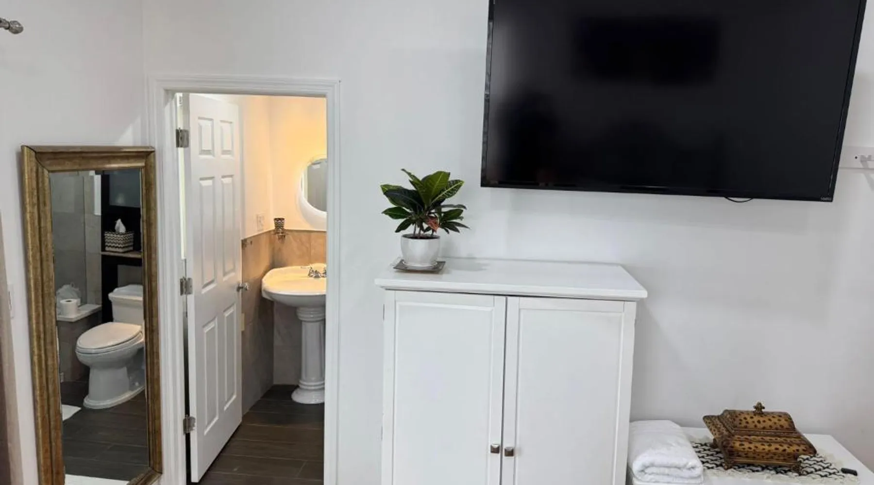 Comfortable Accommodations: Dayton Dream in Newark offers homestay accommodations with air-conditioning, private bathrooms, and free WiFi. Each room includes a tea and coffee maker, mini-bar, and work desk. Convenient Facilities: Guests can relax on the sun terrace or balcony and enjoy free off-site parking. Additional amenities include a coffee shop, 24-hour front desk, tour desk, and luggage storage. Prime Location: Located 3.1 mi from Newark Liberty International Airport, Dayton Dream is near attractions such as Prudential Center (3.7 mi) and Lincoln Park (3.1 mi). Highly rated for its host, connectivity, and room cleanliness. Offering free toiletries, this double room includes a shared bathroom with a shower, a hairdryer and slippers. This double room features air conditioning, a mini-bar, flat-screen TV with satellite channels, as well as chocolate for guests. The unit offers 1 bed.