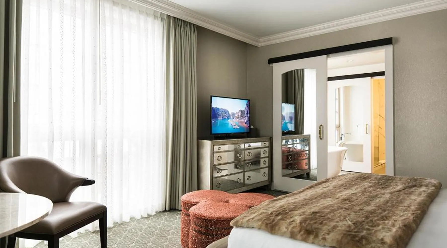 Comfortable Accommodations: Delamar West Hartford in West Hartford offers rooms with air-conditioning, private bathrooms, and modern amenities. Each room includes a work desk, mini-bar, and free WiFi, ensuring a pleasant stay. Exceptional Facilities: Guests can enjoy spa facilities, a fitness center, and a terrace. The hotel features a garden, outdoor fireplace, and an electric vehicle charging station. Additional services include a 24-hour front desk, concierge, and housekeeping. Dining Experience: The family-friendly restaurant serves American cuisine with halal, kosher, vegetarian, vegan, gluten-free, and dairy-free options. Breakfast is provided as a buffet, and lunch and dinner are available in traditional, modern, and romantic settings. Prime Location: Located 18 mi from Bradley International Airport, the hotel is near attractions such as the Mark Twain House (2.5 mi) and Elizabeth Park (2.5 mi). An ice-skating rink is also in the vicinity. Highly rated for its convenient location and excellent service. Featuring free toiletries and bathrobes, this suite includes a private bathroom with a bath or a shower and a hairdryer. The suite features air conditioning, a mini-bar, a tea and coffee maker, a seating area, as well as a flat-screen TV with cable channels.