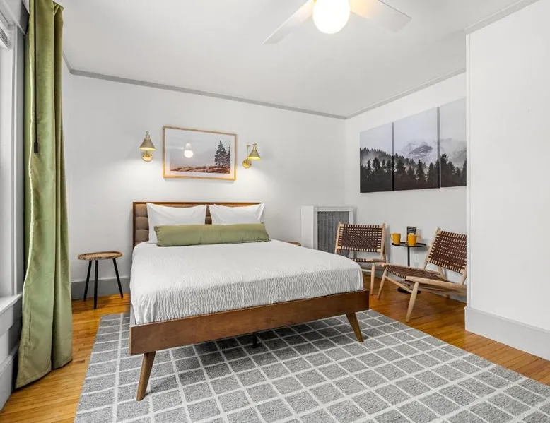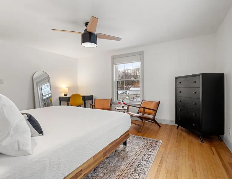 Comfortable Accommodations: Launchpoint Lodge in Lincoln offers family rooms with private bathrooms, air-conditioning, and mountain views. Each room includes a kitchenette, work desk, and free WiFi. Relaxing Facilities: Guests can enjoy a sun terrace, garden, and outdoor seating area. Additional amenities include a lounge, fireplace, and spa bath. Convenient Location: Located 64 mi from Lebanon Municipal Airport, the hotel is near attractions such as Alpine Adventures (14-minute walk) and Loon Mountain (3.1 mi). Winter sports are available in the surrounding area. Guest Satisfaction: Highly rated for room comfort, location, and suitability for nature trips. The air-conditioned suite features 1 bedroom and 1 bathroom with a bath and a shower. There is a tea and coffee maker, a seating area and outdoor furniture and complimentary chocolate is provided for guests. The unit offers 1 bed.
