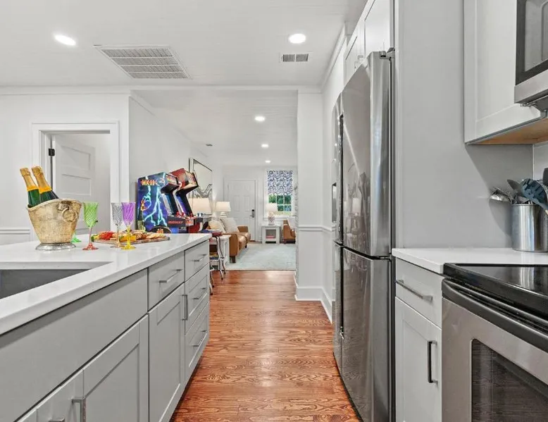 Spacious Accommodations: Pink Pearl By the Sea 8 Bedroom in Tybee Island offers eight bedrooms and five bathrooms. The holiday home features a fully equipped kitchen, air-conditioning, and free WiFi. Outdoor Amenities: Guests can enjoy an outdoor swimming pool and a spacious seating area. The property includes a barbecue, dining table, and a private entrance. Convenient Facilities: The holiday home provides a 24-hour front desk, concierge service, and free on-site private parking. Savannah/Hilton Head International Airport is 26 mi away. Tybee Island Beach is less than 0.6 mi from the property. Boasting a private entrance, this air-conditioned holiday home features a kitchen, 8 bedrooms and 5 bathrooms with a bath or a shower and a hairdryer. Guests will find a stovetop, a refrigerator, a dishwasher and kitchenware in the well-fitted kitchen. The holiday home also comes with a barbecue. The holiday home features a washing machine, a tea and coffee maker, a seating area, a dining area and a flat-screen TV with satellite channels. The unit has 9 beds.