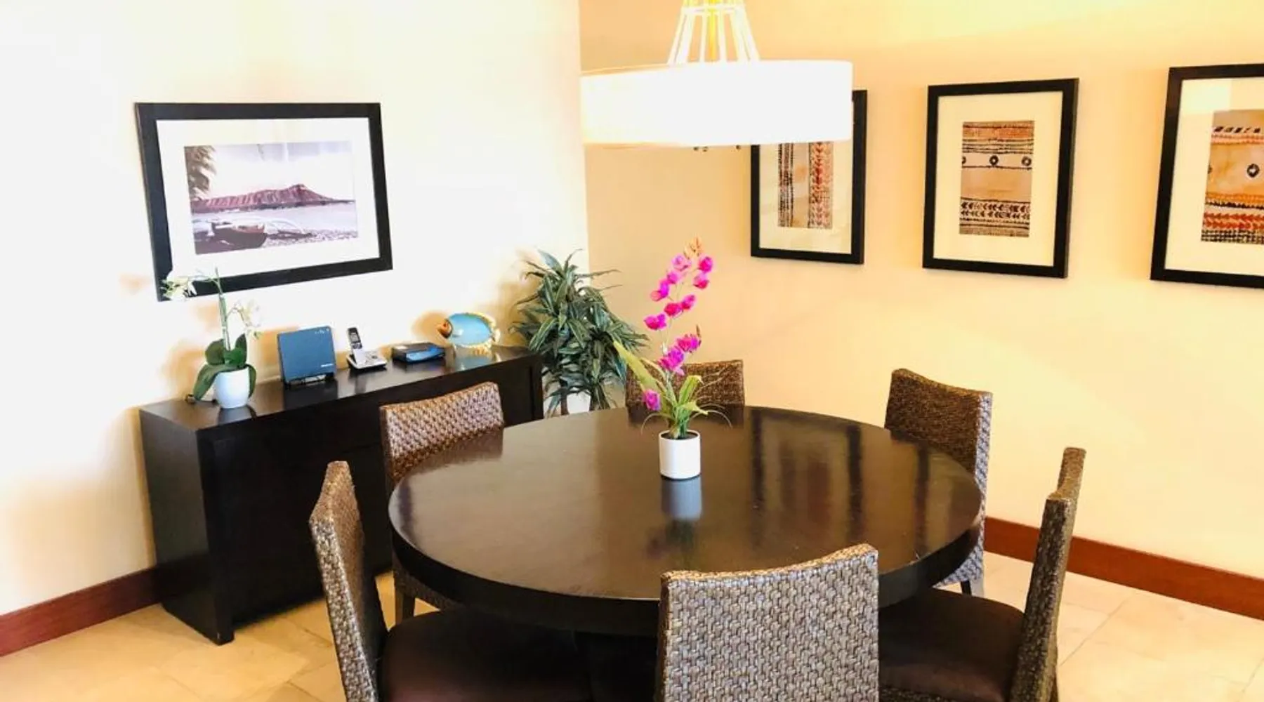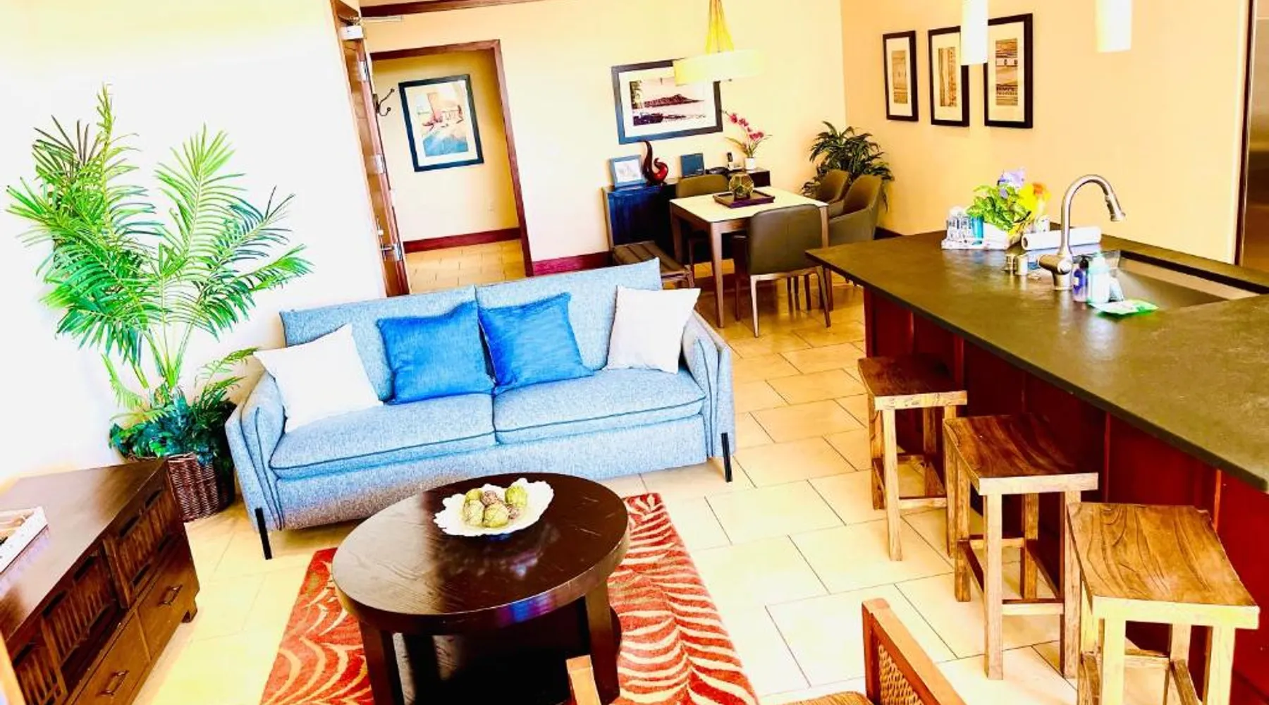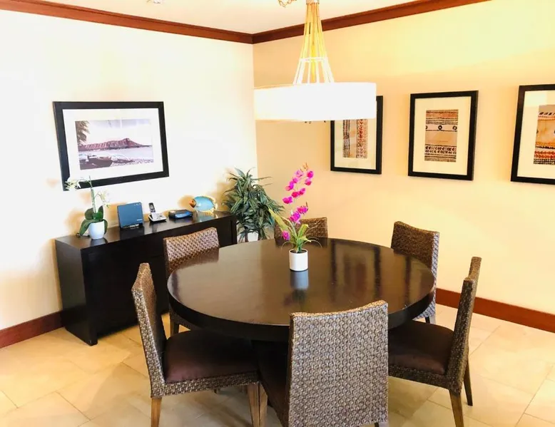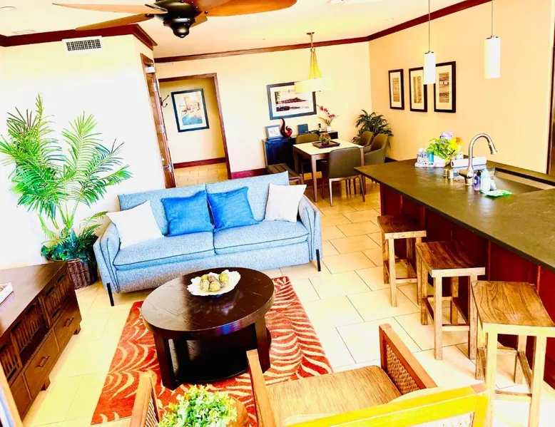 Beachfront Location: Beach Villas at Ko Olina in Kapolei offers direct beachfront access, a lush garden, and a spacious terrace. Guests can relax by the outdoor swimming pool and enjoy free WiFi throughout the property. Comfortable Accommodations: The apartment features two bedrooms, two bathrooms, and a comfortable living room. Amenities include a elevator, hot tub, and 24-hour front desk. Free on-site private parking is available for guests. Dining and Leisure: A restaurant and bar provide dining options, while the terrace offers a perfect spot for outdoor gatherings. The property is 21 mi from Honolulu International Airport and a 4-minute walk from Ko Olina Lagoons. Nearby attractions include USS Bowfin Submarine Museum & Park (17 mi) and Pearl Harbor (18 mi). The unit has 4 beds.