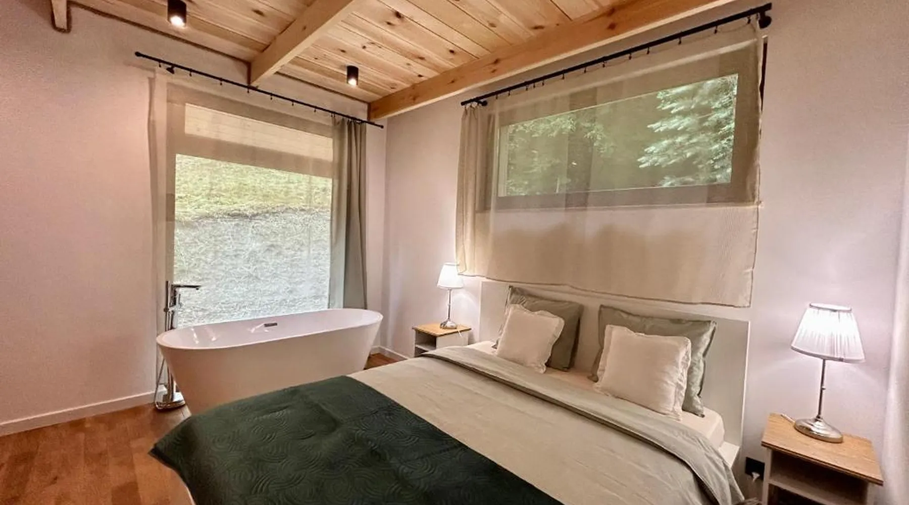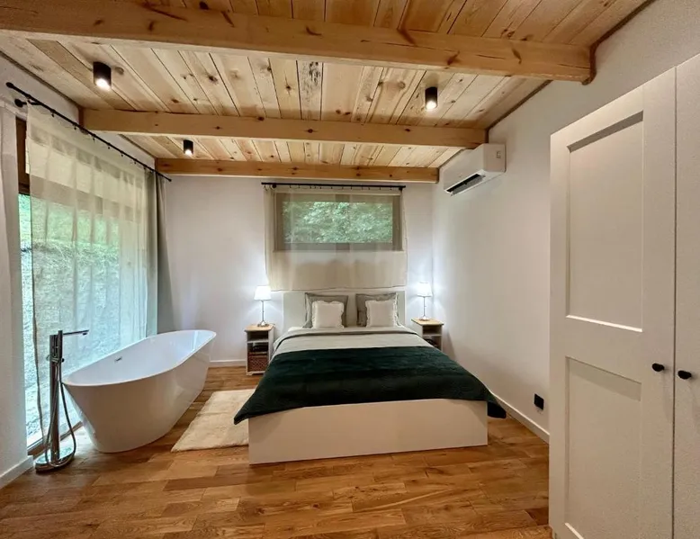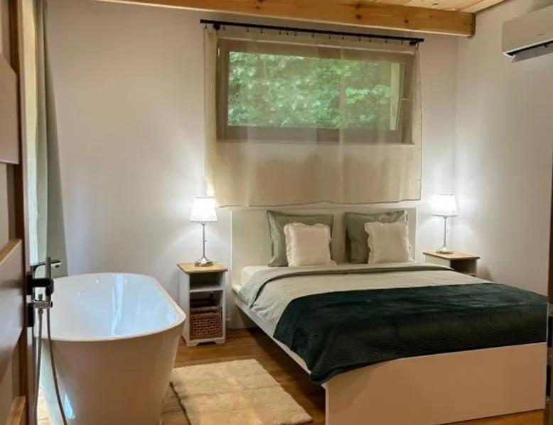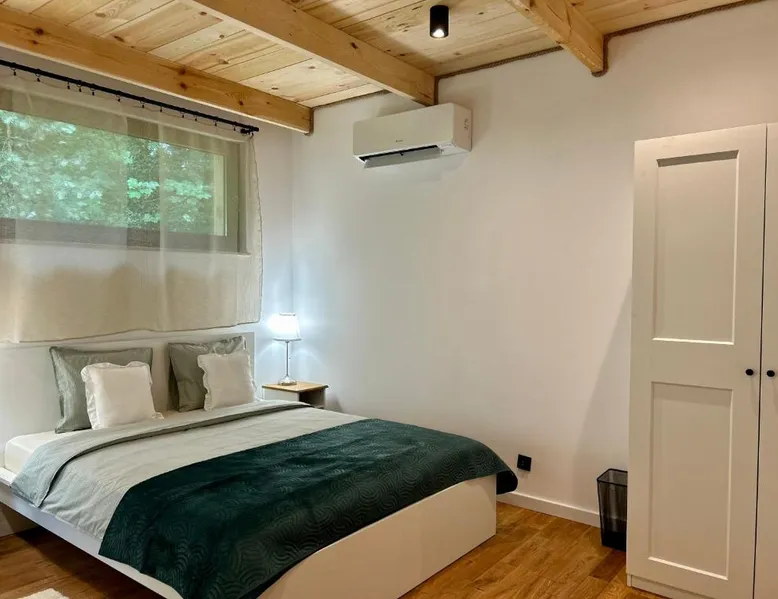 Comfortable Living: Rogaty Domek przy Bobrowisku in Kornatka offers a holiday home with one bedroom, one bathroom, and a spacious living room. Guests enjoy free WiFi, air-conditioning, and a fully equipped kitchenette. Relaxing Amenities: The property features a sauna, providing a perfect spot for relaxation. Garden views enhance the outdoor experience, while a TV ensures entertainment indoors. Convenient Location: Located 30 mi from John Paul II International Kraków–Balice Airport, the holiday home is 14 mi from Wieliczka Salt Mine, 21 mi from Schindler Factory Museum, and 22 mi from Wawel Royal Castle. Free on-site private parking is available. This holiday home's standout feature is the sauna. The holiday home's kitchenette is available for cooking and storing food. This holiday home has air conditioning, heating, a flat-screen TV and garden views. The unit has 2 beds.