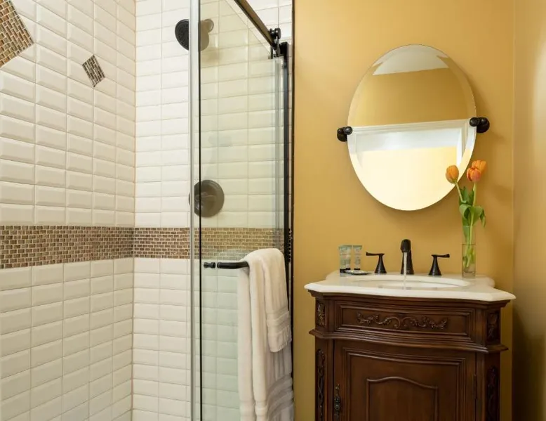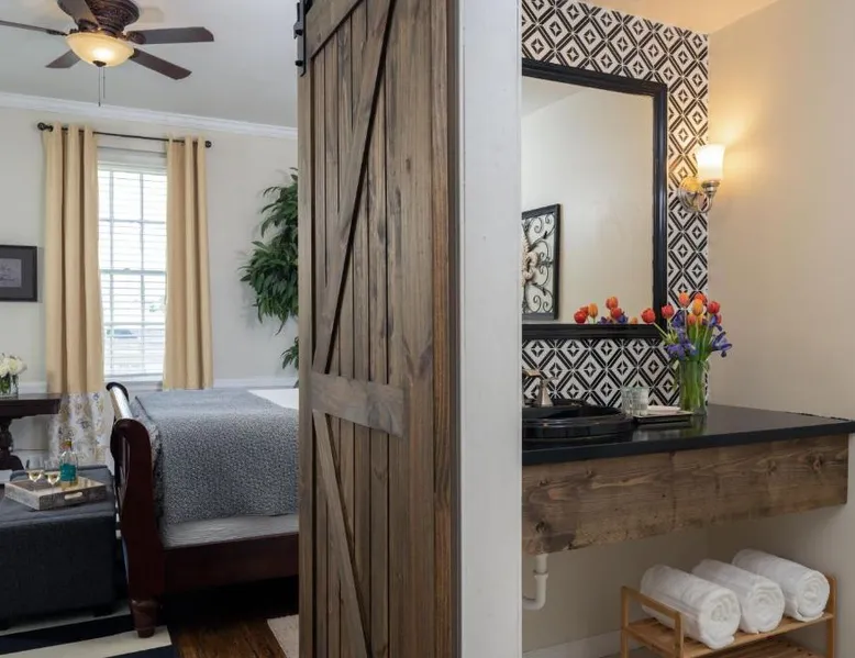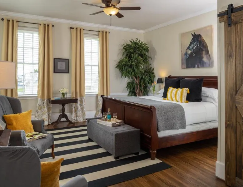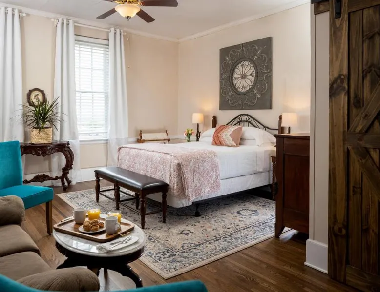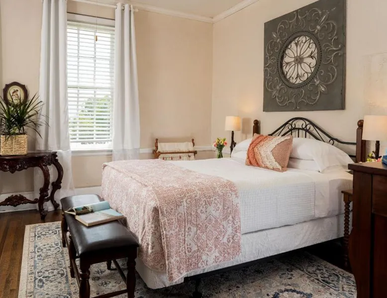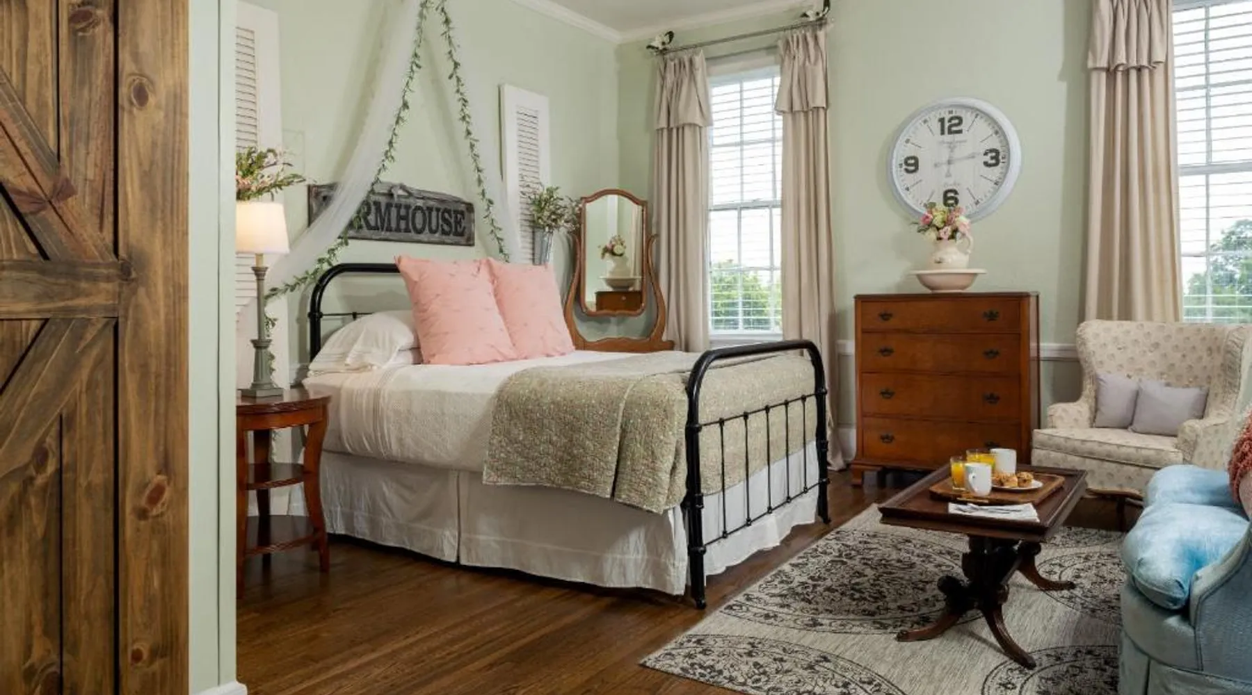 Elegant Accommodations: Magnolia Manor and Chapel in Humboldt offers comfortable bedrooms with private bathrooms, air-conditioning, and parquet floors. Each room includes a work desk, wardrobe, and seating area. Relaxing Facilities: Guests can enjoy a beautiful garden and free WiFi throughout the property. The lounge provides a cozy space, while the outdoor seating area offers a pleasant retreat. Convenient Services: The bed and breakfast offers free on-site parking, concierge service, and menus for special diets. Housekeeping and streaming services enhance the stay. Local Attractions: Located 20 mi from McKellar-Sipes Regional Airport, the property is near Casey Jones Village (13 mi), Rusty'S Tv And Movie Car Museum (16 mi), and Cypress Grove Park (19 mi). The spacious double room features air conditioning, a seating area, as well as a private bathroom boasting a walk-in shower and a hairdryer. The unit has 1 bed.