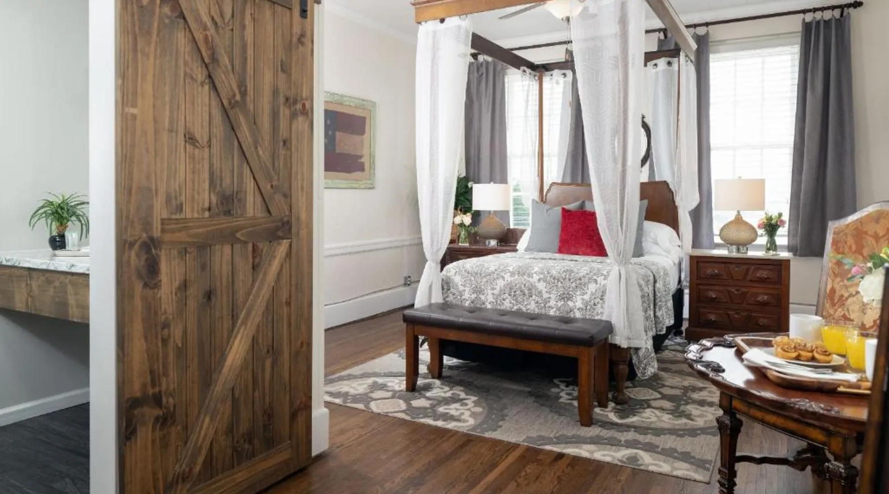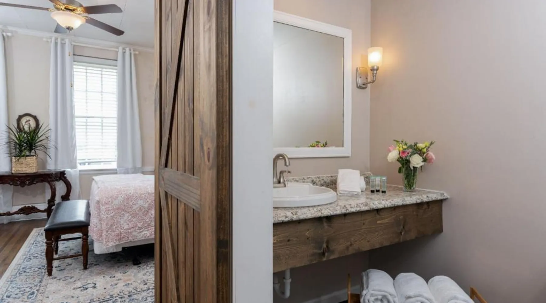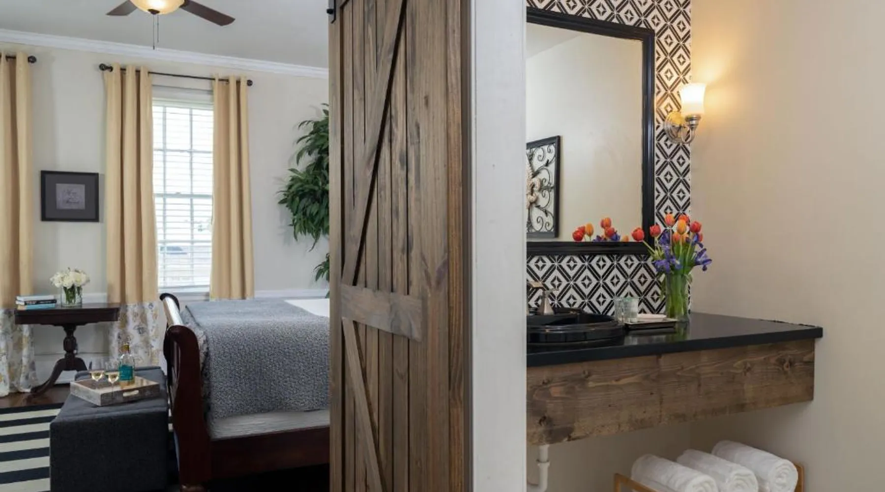 Elegant Accommodations: Magnolia Manor and Chapel in Humboldt offers comfortable bedrooms with private bathrooms, air-conditioning, and parquet floors. Each room includes a work desk, wardrobe, and seating area. Relaxing Facilities: Guests can enjoy a beautiful garden and free WiFi throughout the property. The lounge provides a cozy space, while the outdoor seating area offers a pleasant retreat. Convenient Services: The bed and breakfast offers free on-site parking, concierge service, and menus for special diets. Housekeeping and streaming services enhance the stay. Local Attractions: Located 20 mi from McKellar-Sipes Regional Airport, the property is near Casey Jones Village (13 mi), Rusty'S Tv And Movie Car Museum (16 mi), and Cypress Grove Park (19 mi). The spacious double room features air conditioning, a seating area, as well as a private bathroom boasting a walk-in shower and a hairdryer. The unit has 1 bed.