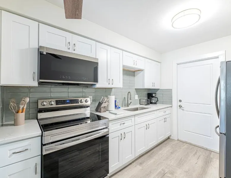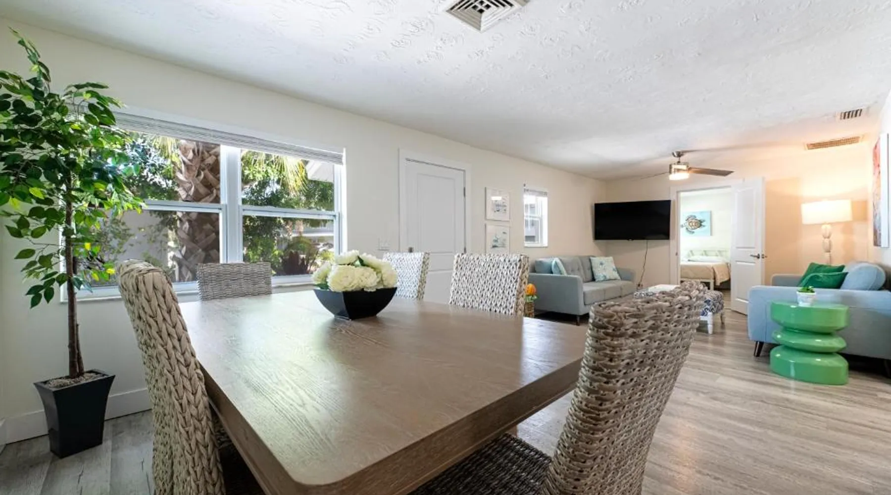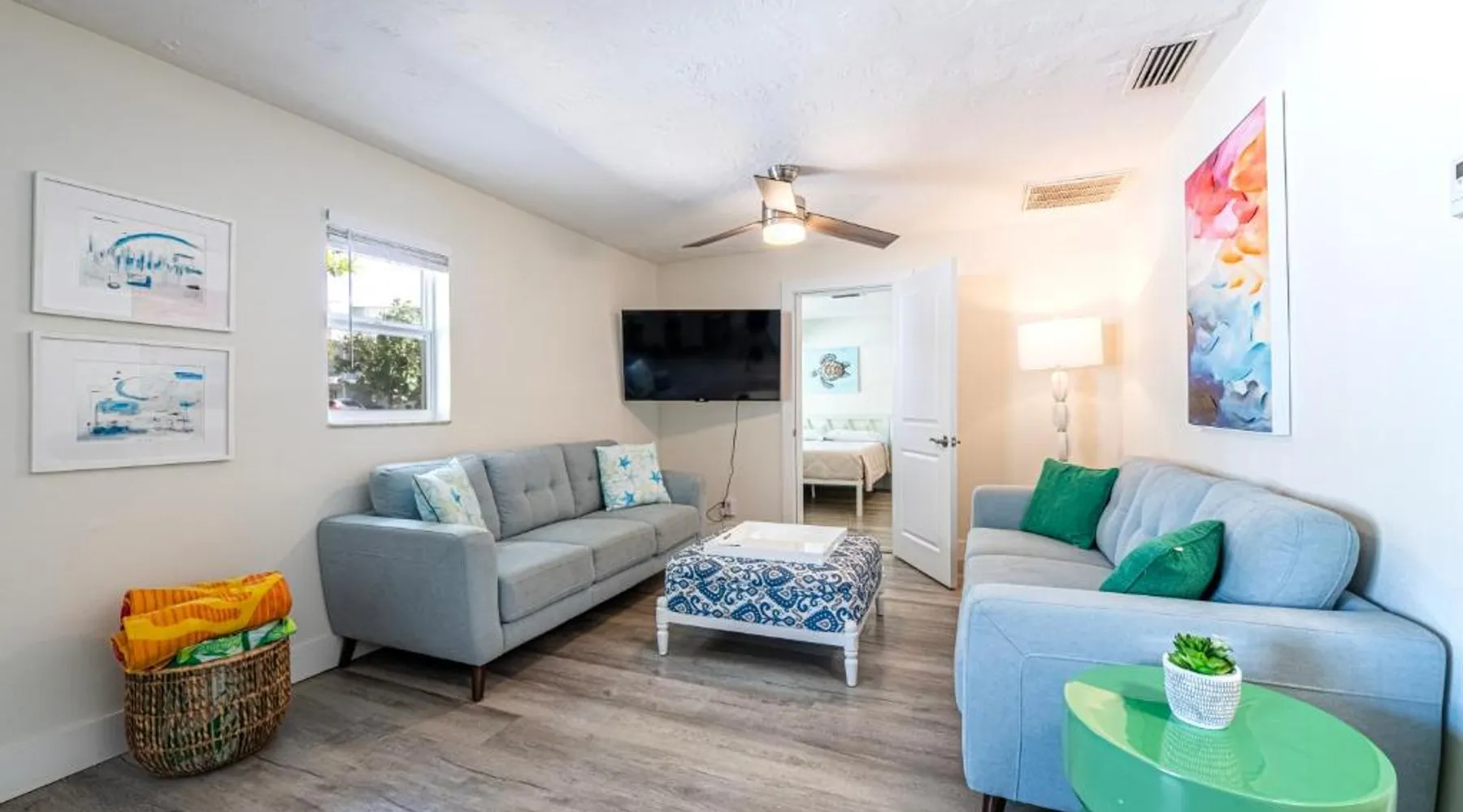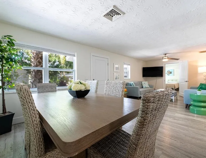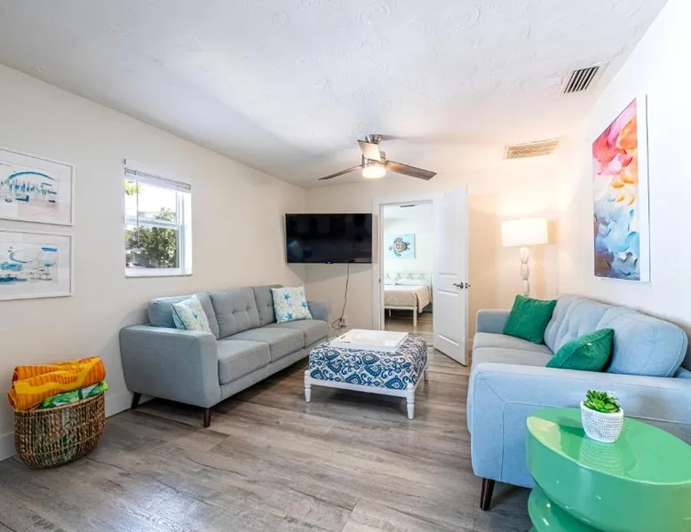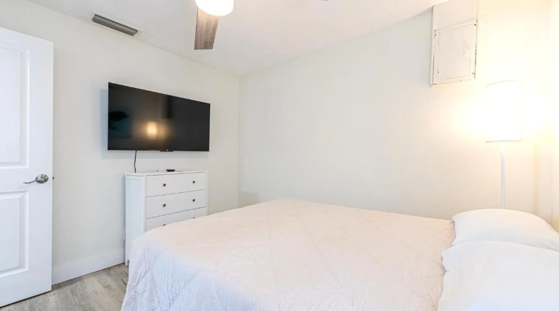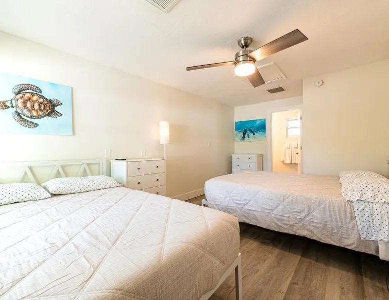 Spacious Accommodations: Sunny Shores Retreat 1 in Clearwater Beach offers a spacious apartment with two bedrooms and two bathrooms. The living room includes a sofa bed and a work desk, ensuring comfort and convenience. Modern Amenities: Guests enjoy free WiFi, air-conditioning, and a private pool. Additional amenities include a patio, washing machine, and a fully equipped kitchen with a refrigerator, microwave, and oven. Convenient Location: Located 9.9 mi from St. Pete-Clearwater International Airport, the apartment is a 2-minute walk from Belleair Beach. Nearby attractions include Pier 60 (6.2 mi) and John's Pass (9.9 mi). Boating is available in the surrounding area. This apartment's standout feature is the private pool. Offering bathrobes, this apartment includes a shared bathroom with a bath and a hairdryer. Guests will find a stovetop, a refrigerator, kitchenware and an oven in the well-fitted kitchen. The apartment also features a barbecue. The spacious apartment offers air conditioning, a washing machine, a tea and coffee maker, a wardrobe and a TV with cable channels. The unit has 4 beds.