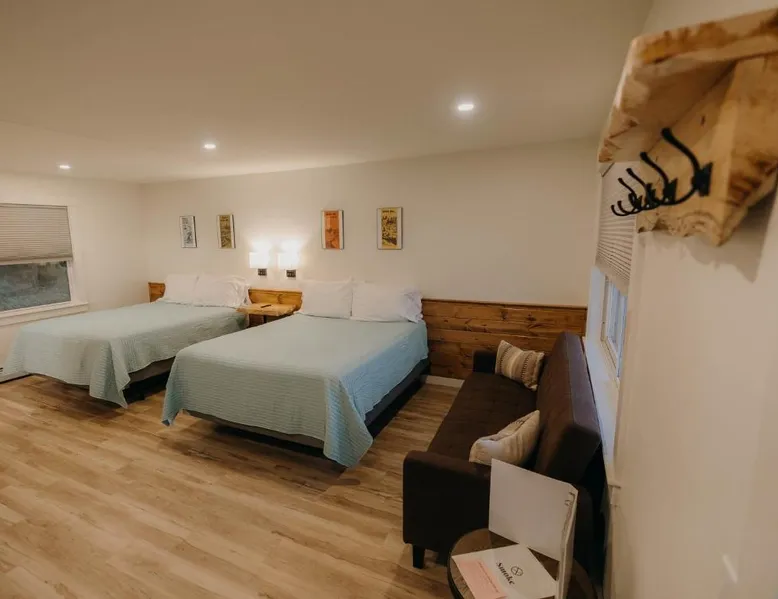 Comfortable Accommodations: Bingham Motor Inn in Bingham offers family rooms with private bathrooms, air-conditioning, and river views. Each room includes a tea and coffee maker, refrigerator, microwave, and TV. Essential Facilities: Guests enjoy free WiFi in public areas, an outdoor fireplace, daily housekeeping service, outdoor seating, picnic area, and bicycle parking. Free on-site private parking is available. Local Attractions: North Country Rivers is a 4-minute walk away, Three Rivers 21 mi, Northern Outdoors 24 mi, and Augusta State Airport 60 mi from the property. Guest Satisfaction: Highly rated for room cleanliness, comfort, and family-friendliness. Guests can make meals in the kitchenette that has a refrigerator, a microwave and a tea and coffee maker. The spacious family room features air conditioning, a private entrance, as well as a private bathroom boasting a bath and a shower. The unit has 2 beds.