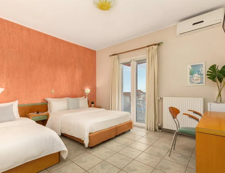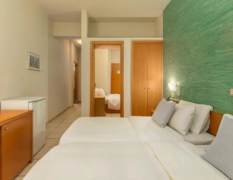 Beachfront Location: Dias Hotel Platamon in Platamonas offers direct beachfront access with stunning sea views. Platamon Beach is just a 4-minute walk away, while Platamonas Castle lies 2.1 mi from the property. Comfortable Accommodations: Rooms feature air-conditioning, balconies, private bathrooms, and modern amenities such as free WiFi, flat-screen TVs, and work desks. Family rooms and interconnected rooms cater to all guests. Dining Experience: The modern, family-friendly restaurant serves Greek, Mediterranean, international, and European cuisines. Outdoor seating areas provide relaxing spaces for meals. Leisure Facilities: Guests can enjoy spa facilities, a sun terrace, and a lush garden. Additional amenities include a bar, coffee shop, and outdoor play area, ensuring a pleasant stay. The unit has 4 beds.