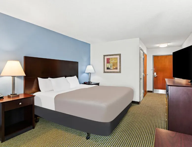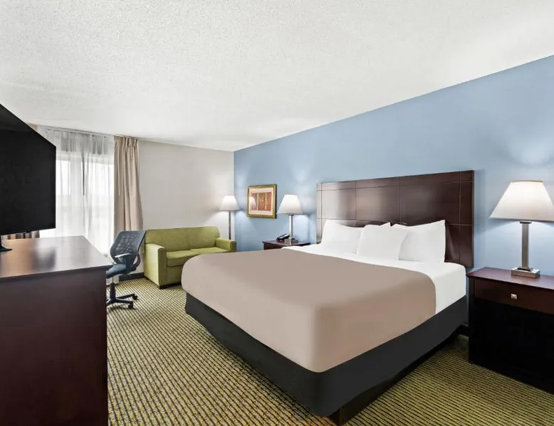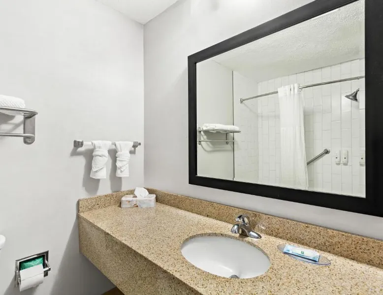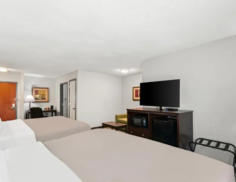 Comfortable Accommodations: Quality Inn Dry Ridge in Dry Ridge offers air-conditioned rooms with private bathrooms, hypoallergenic bedding, and free WiFi. Each room includes a work desk, sofa bed, and TV, ensuring a pleasant stay. Facilities and Services: Guests can enjoy a fitness center, business area, and free on-site private parking. Additional amenities include a 24-hour front desk, daily housekeeping service, car hire, and free toiletries. Convenient Location: Located 25 mi from Cincinnati/Northern Kentucky International Airport and 29 mi from Scudder Field, the inn provides easy access to local attractions. Guests appreciate the property staff and service support. The suite is furnished with a desk and a seating area and features air conditioning and a wardrobe.