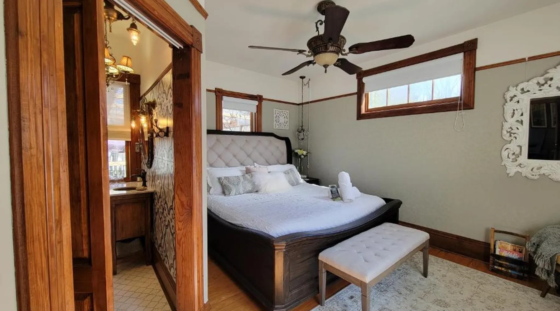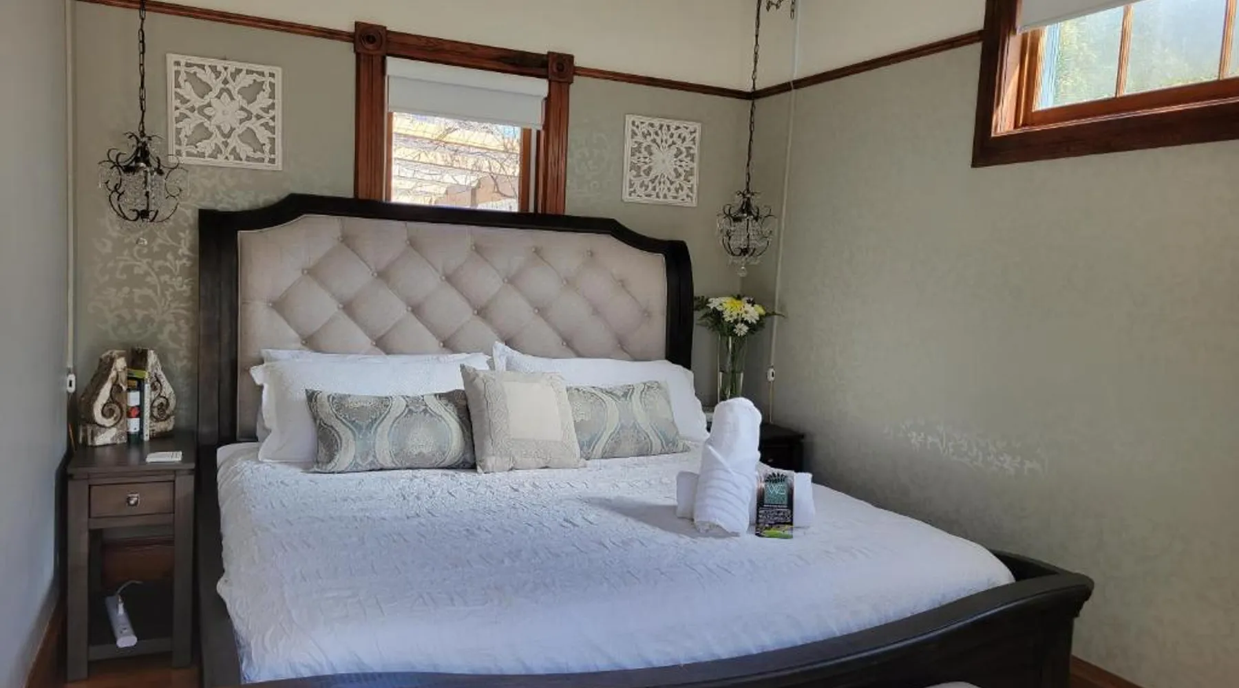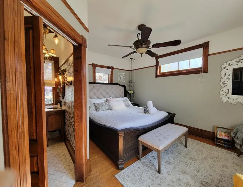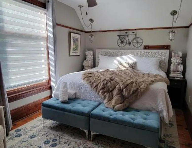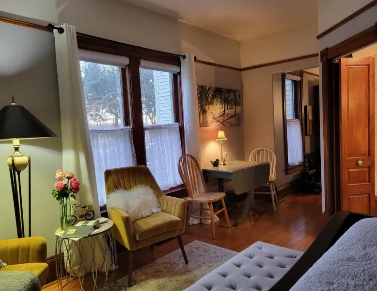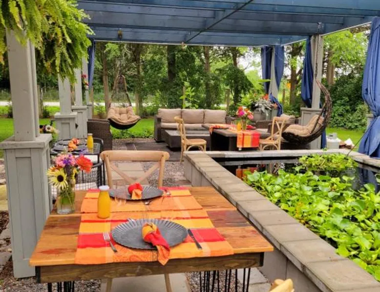 Elegant Accommodations: The Walnut Grove BnB in Harrow offers a recently renovated adults-only bed and breakfast experience. Guests enjoy a swimming pool with a view, sun terrace, and lush garden. Free WiFi is available throughout the property. Comfortable Amenities: The property features private check-in and check-out services, a lounge, outdoor fireplace, hot tub, and electric vehicle charging station. Additional amenities include badminton equipment hire, outdoor seating, picnic area, and barbecue facilities. Delicious Breakfast: A variety of breakfast options are available, including continental, American, buffet, à la carte, vegetarian, and gluten-free. Local specialties, warm dishes, fresh pastries, fruits, and juices are served daily. Convenient Location: Located 21 mi from Windsor International Airport, the BnB is near attractions such as TCF Center (26 mi) and Detroit Symphony Orchestra Hall (27 mi). Guests appreciate the friendly host and excellent breakfast. This double room's special features are the pool with a view and the hot tub. Guests will find a refrigerator, kitchenware, a microwave and a tea and coffee maker in the well-fitted kitchenette. The double room also offers a barbecue. The spacious double room provides air conditioning, a private entrance, as well as a private bathroom featuring a bath and a hairdryer. The unit offers 1 bed.