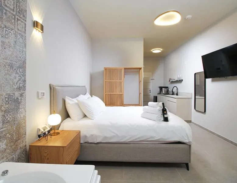 Comfortable Accommodations: 49 Boutique in Zikhron Ya‘aqov offers air-conditioned rooms with private bathrooms, tea and coffee makers, and free WiFi. Each room includes a refrigerator, TV, and wardrobe, ensuring a pleasant stay. Convenient Facilities: Guests enjoy free on-site private parking, private check-in and check-out services, and an outdoor seating area. Additional amenities include a hot tub, balcony with sea views, and a kitchenette. Prime Location: Located 25 mi from Haifa Airport, the lodge is close to attractions such as Mount Carmel (19 mi) and Baha'i Gardens (24 mi). English, Spanish, and Hebrew are spoken at reception. The hot tub is a top feature of this suite. The air-conditioned suite has 1 bedroom and 1 bathroom with a shower and a hairdryer. Boasting a balcony with sea views, this suite also features a tea and coffee maker and a flat-screen TV with streaming services. The unit has 1 bed.