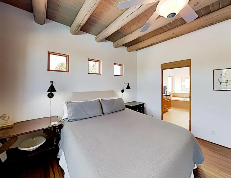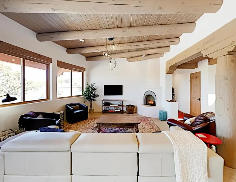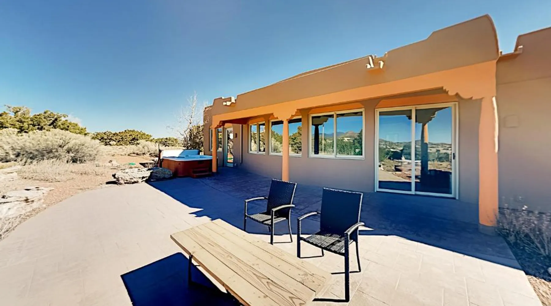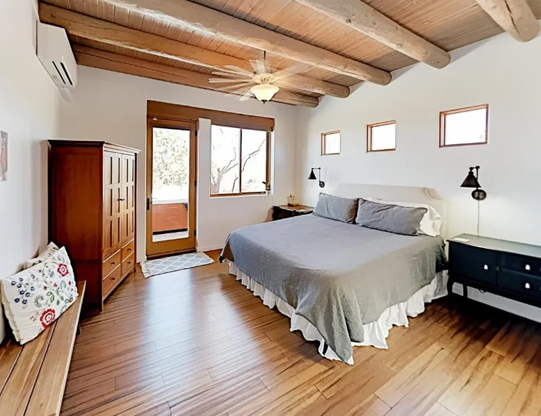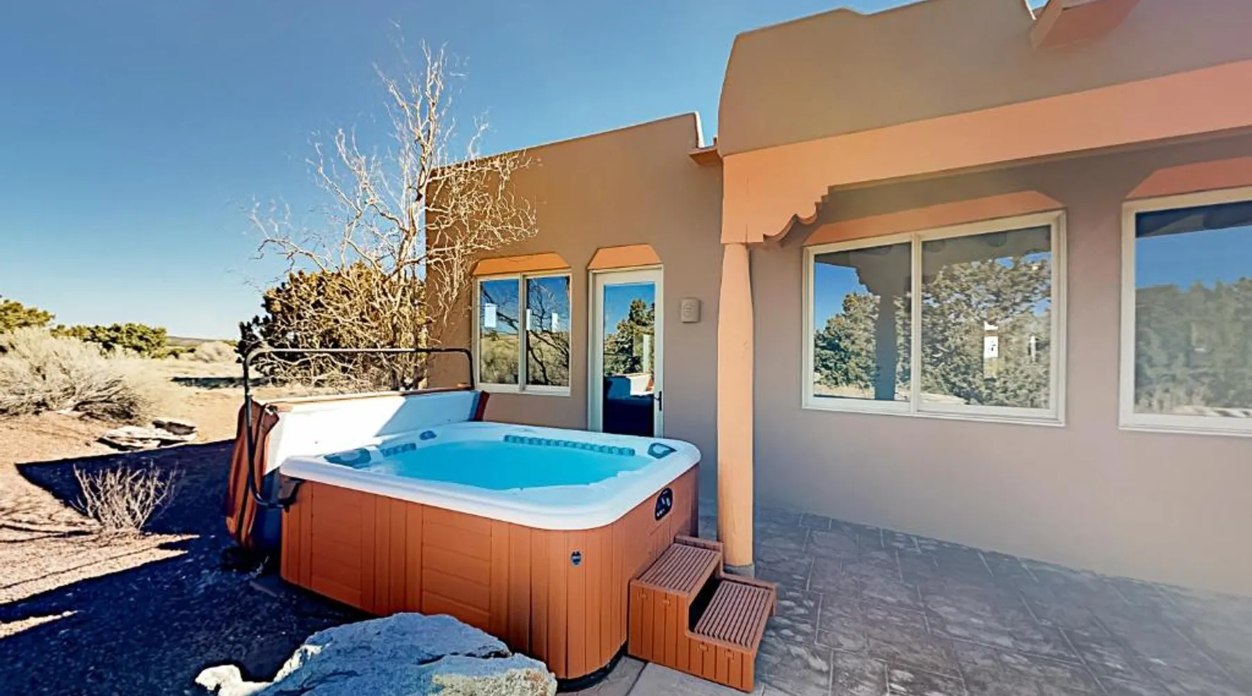 Spacious Holiday Home in Santa Fe: Camino Oasis offers a spacious holiday home in Santa Fe, featuring three bedrooms and two bathrooms. The property includes a fully equipped kitchen, washing machine, and free toiletries. Outdoor Amenities: Guests can enjoy an outdoor fireplace, hot tub, and outdoor seating area. The property also provides a patio, barbecue, and outdoor dining area, perfect for relaxation. Convenient Location: Located 21 mi from Santa Fe Municipal Airport, the holiday home is near attractions such as The Plaza (14 mi) and Georgia O’Keeffe Museum (14 mi). Streaming services and a work desk enhance the stay. The hot tub and fireplace are the standout features of this holiday home. The spacious holiday home has 3 bedrooms and 2 bathrooms with a hairdryer and free toiletries. Guests will find a stovetop, a refrigerator, a dishwasher and kitchenware in the well-equipped kitchen. The holiday home also comes with a barbecue. The holiday home features a flat-screen TV with streaming services, a washing machine, a private entrance, a tea and coffee maker as well as mountain views. The unit has 4 beds.
