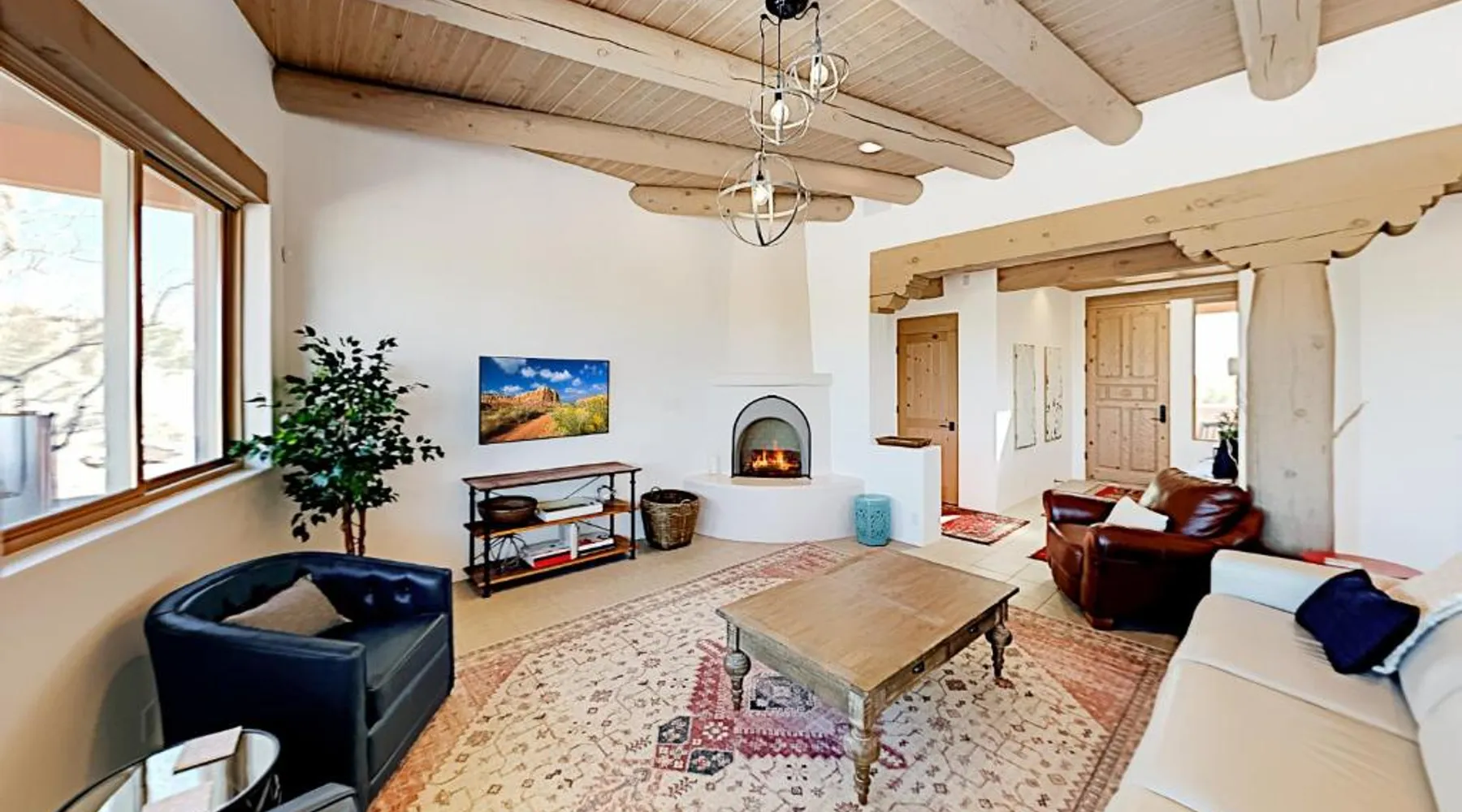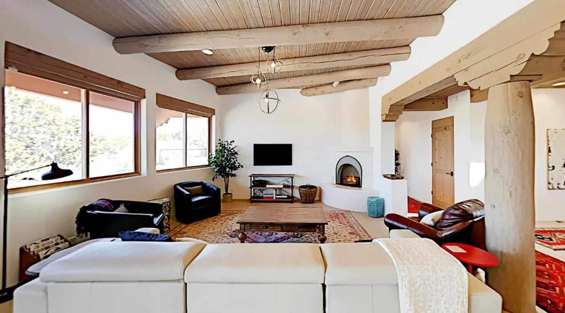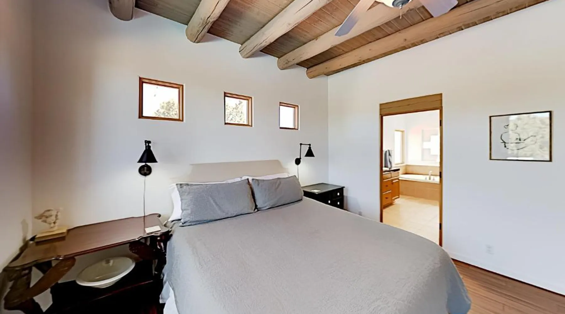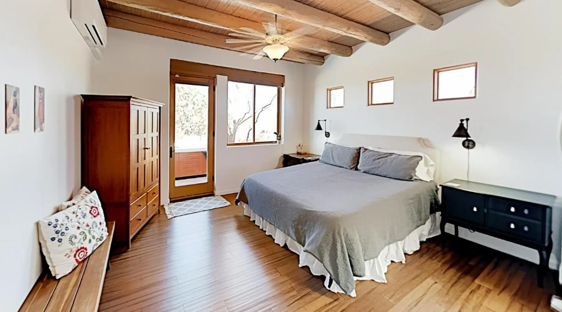 Spacious Holiday Home in Santa Fe: Camino Oasis offers a spacious holiday home in Santa Fe, featuring three bedrooms and two bathrooms. The property includes a fully equipped kitchen, washing machine, and free toiletries. Outdoor Amenities: Guests can enjoy an outdoor fireplace, hot tub, and outdoor seating area. The property also provides a patio, barbecue, and outdoor dining area, perfect for relaxation. Convenient Location: Located 21 mi from Santa Fe Municipal Airport, the holiday home is near attractions such as The Plaza (14 mi) and Georgia O’Keeffe Museum (14 mi). Streaming services and a work desk enhance the stay. The hot tub and fireplace are the standout features of this holiday home. The spacious holiday home has 3 bedrooms and 2 bathrooms with a hairdryer and free toiletries. Guests will find a stovetop, a refrigerator, a dishwasher and kitchenware in the well-equipped kitchen. The holiday home also comes with a barbecue. The holiday home features a flat-screen TV with streaming services, a washing machine, a private entrance, a tea and coffee maker as well as mountain views. The unit has 4 beds.