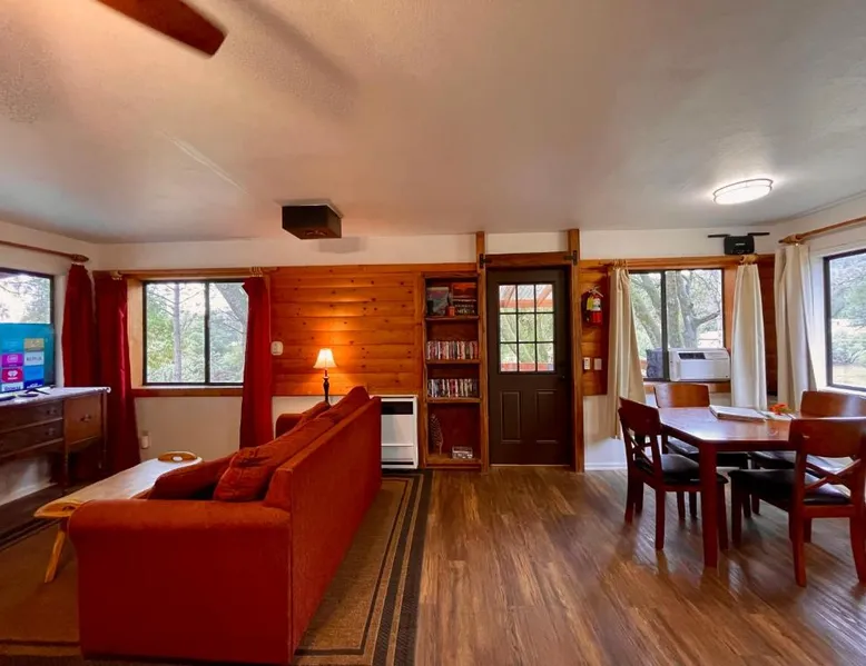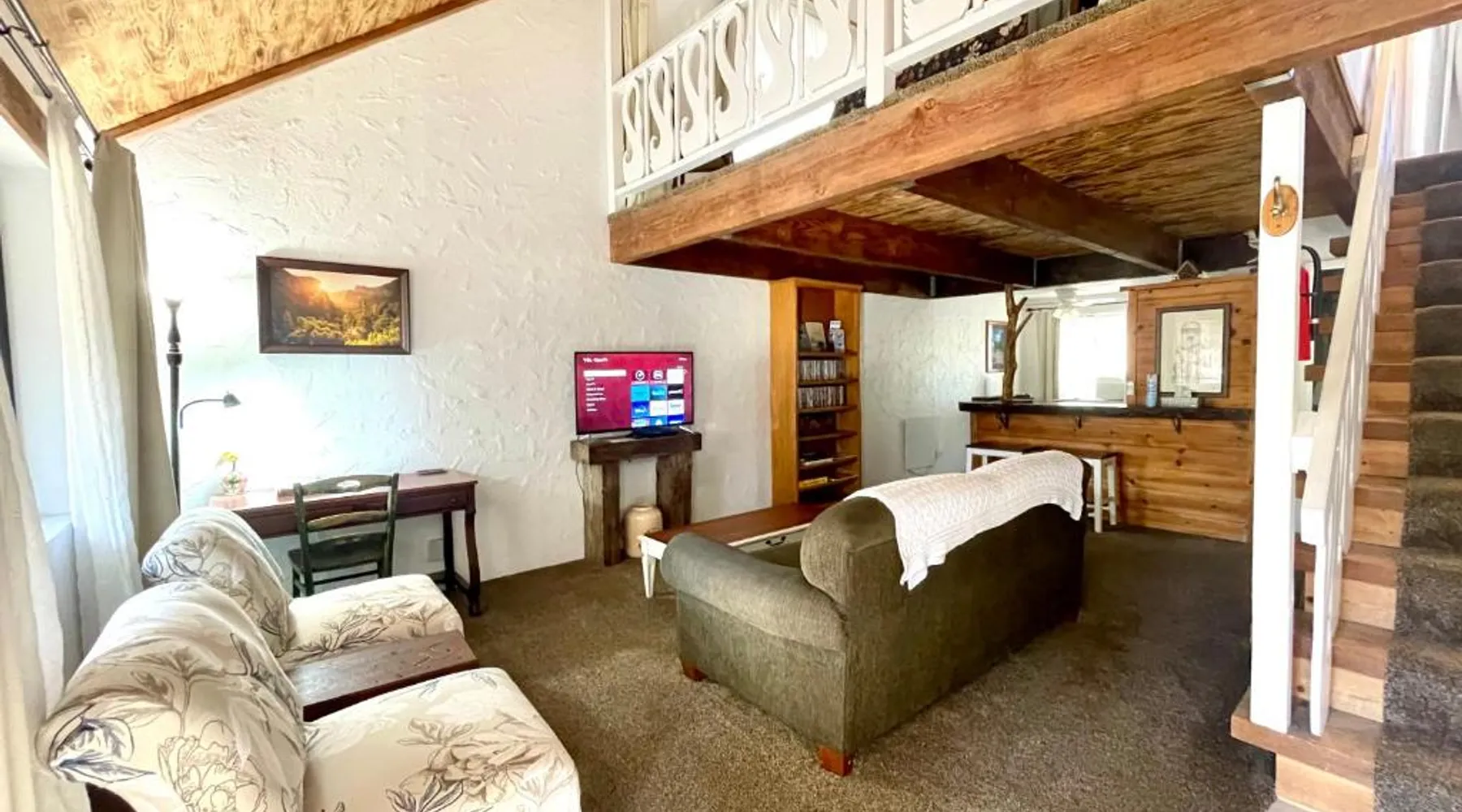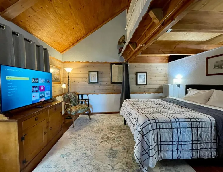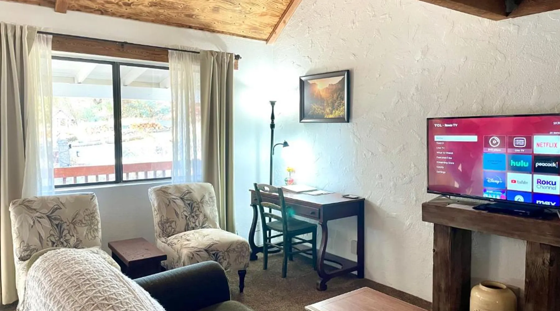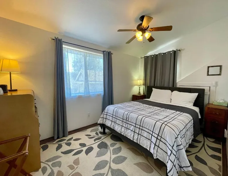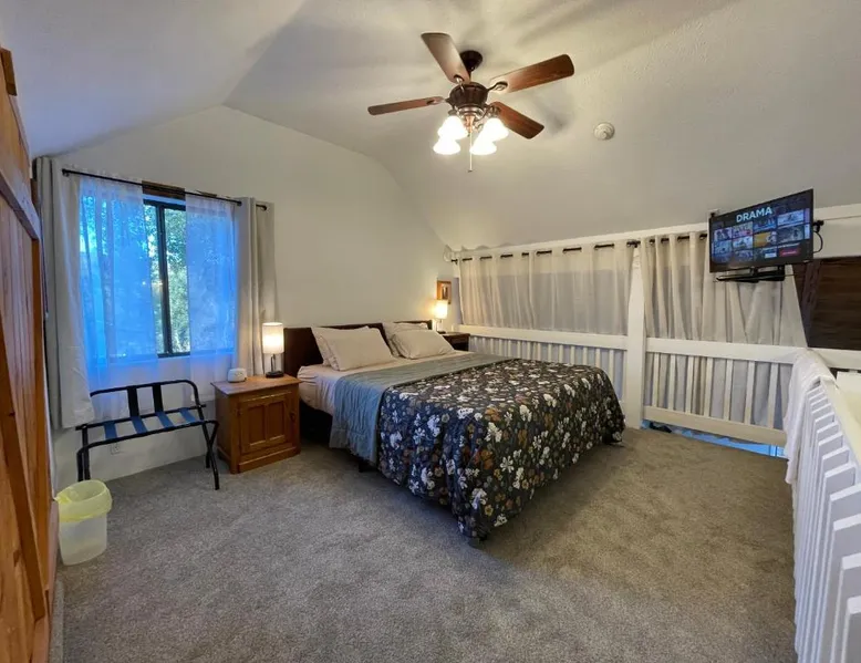 Comfortable Accommodations: Sierra Mountain Lodge in Ahwahnee offers a holiday home with a sun terrace, garden, and free WiFi. Guests enjoy private check-in and check-out services, an outdoor seating area, and a picnic spot. Modern Amenities: The property features air-conditioning, streaming services, a patio, and a private bathroom. Additional amenities include a barbecue, tea and coffee maker, garden and mountain views, and a work desk. Convenient Location: Located 53 mi from Fresno Yosemite International Airport and 24 mi from Yosemite South Entrance, the lodge provides easy access to local attractions. Guests appreciate the quietness of the area and room comfort. Rose Suite - This 2-story family suite has a living area downstairs & two bedrooms upstairs. It includes 2 queen beds, a private bathroom, kitchenette, desk, Roku TV, Free Wi-Fi, a DVD player & DVD collection. Also includes a front & back covered porch & community BBQ grilling area. Surrounded by nature.