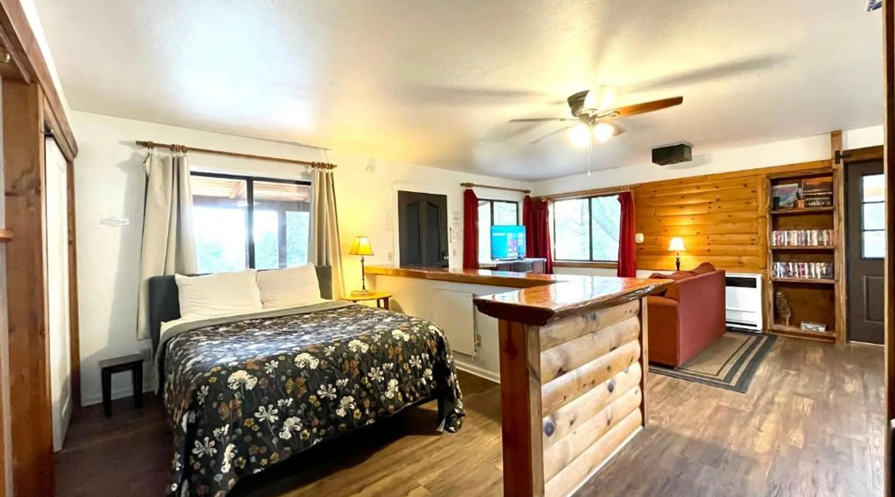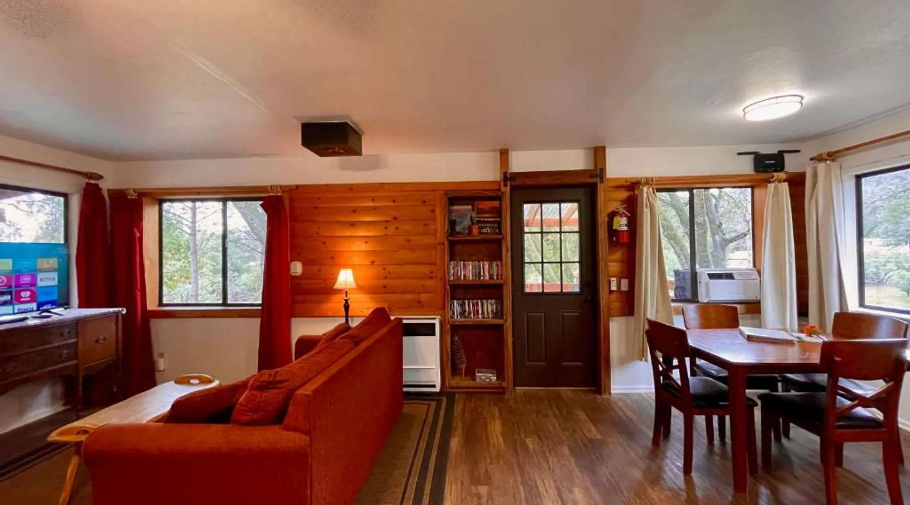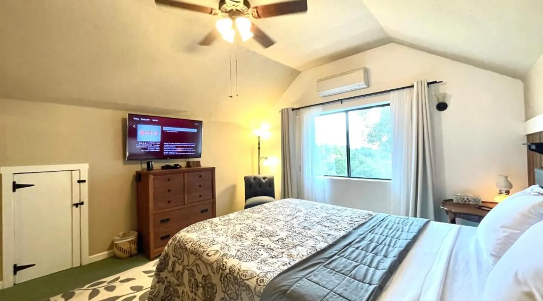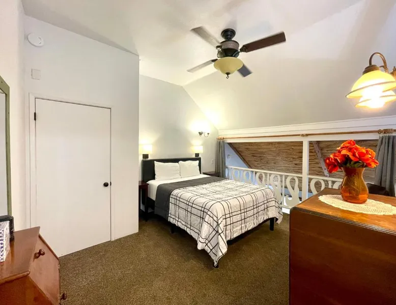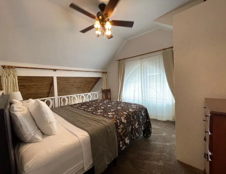 Comfortable Accommodations: Sierra Mountain Lodge in Ahwahnee offers a holiday home with a sun terrace, garden, and free WiFi. Guests enjoy private check-in and check-out services, an outdoor seating area, and a picnic spot. Modern Amenities: The property features air-conditioning, streaming services, a patio, and a private bathroom. Additional amenities include a barbecue, tea and coffee maker, garden and mountain views, and a work desk. Convenient Location: Located 53 mi from Fresno Yosemite International Airport and 24 mi from Yosemite South Entrance, the lodge provides easy access to local attractions. Guests appreciate the quietness of the area and room comfort. Rose Suite - This 2-story family suite has a living area downstairs & two bedrooms upstairs. It includes 2 queen beds, a private bathroom, kitchenette, desk, Roku TV, Free Wi-Fi, a DVD player & DVD collection. Also includes a front & back covered porch & community BBQ grilling area. Surrounded by nature.