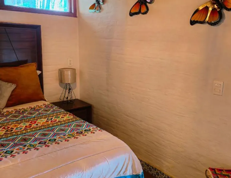 Elegant Accommodations: BACANA CABAÑAS DE ALQUILER in Mazamitla offers a villa with a garden, terrace, restaurant, and free WiFi. Guests enjoy a balcony, patio, and private bathroom with garden and mountain views. Comfortable Amenities: The property features a kitchenette, dining area, and outdoor furniture. Additional amenities include a hot tub, spa bath, fireplace, and free toiletries. Free on-site private parking is available. Dining Experience: A family-friendly restaurant serves Mexican cuisine with vegetarian options. Lunch is served in a traditional ambiance, providing a relaxing dining experience. Activities and Surroundings: Guests can participate in walking, bike, and hiking tours. The villa is located 75 mi from Licenciado Miguel de la Madrid Airport and near forests and scenic views. This villa's standout features are the hot tub and fireplace. Featuring a private entrance, this villa consists of 2 living rooms, 2 separate bedrooms and 2 bathrooms with a bath and a shower. In the kitchen, guests will find a refrigerator, kitchenware, an oven and a microwave. Boasting a terrace with garden views, this villa also provides a tea and coffee maker and a flat-screen TV. The unit offers 6 beds.