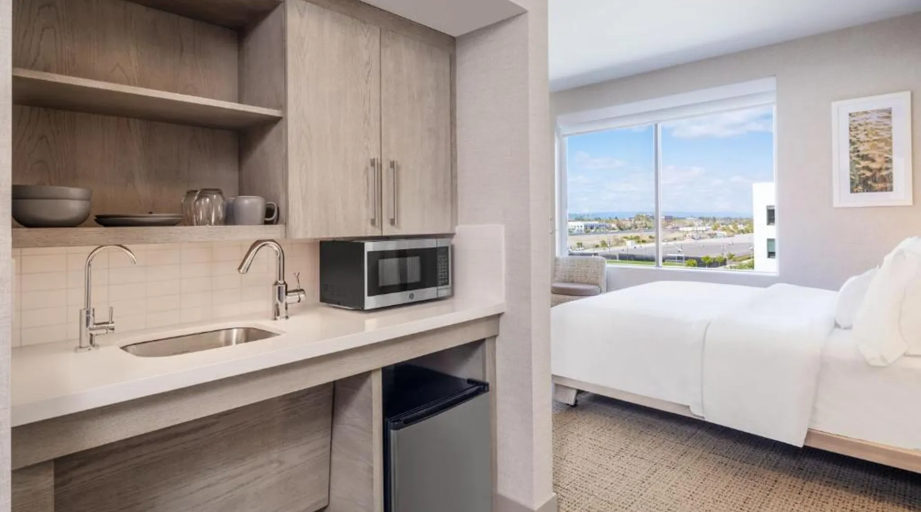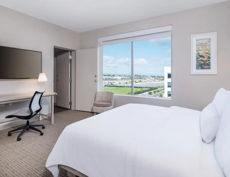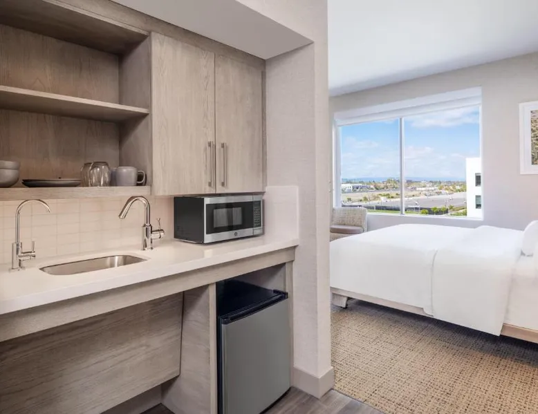 Comfortable Accommodations: Element San Jose Airport in San Jose offers comfortable rooms with air-conditioning, private bathrooms, and city views. Guests enjoy free WiFi, streaming services, and modern amenities such as a work desk and kitchenette. Leisure Facilities: The hotel features a saltwater swimming pool, fitness center, sun terrace, and free bicycles. Additional amenities include a hot tub, outdoor fireplace, and picnic areas. Dining Options: A restaurant serves American cuisine, while a bar provides a relaxing atmosphere. Breakfast options include continental and American styles. Convenient Location: Located 3281 feet from Norman Y. Mineta San Jose International Airport, the hotel is near attractions like San Jose Convention Center (3.1 mi) and Winchester Mystery House (3.7 mi). Guests appreciate the room cleanliness and comfort. Featuring free toiletries, this studio includes a private bathroom with a shower and a hairdryer. The well-equipped kitchen has a stovetop, a dishwasher, kitchenware and a microwave. The air-conditioned studio features a flat-screen TV with streaming services, a tea and coffee maker, a dining area, a wardrobe as well as city views. The unit has 2 beds.