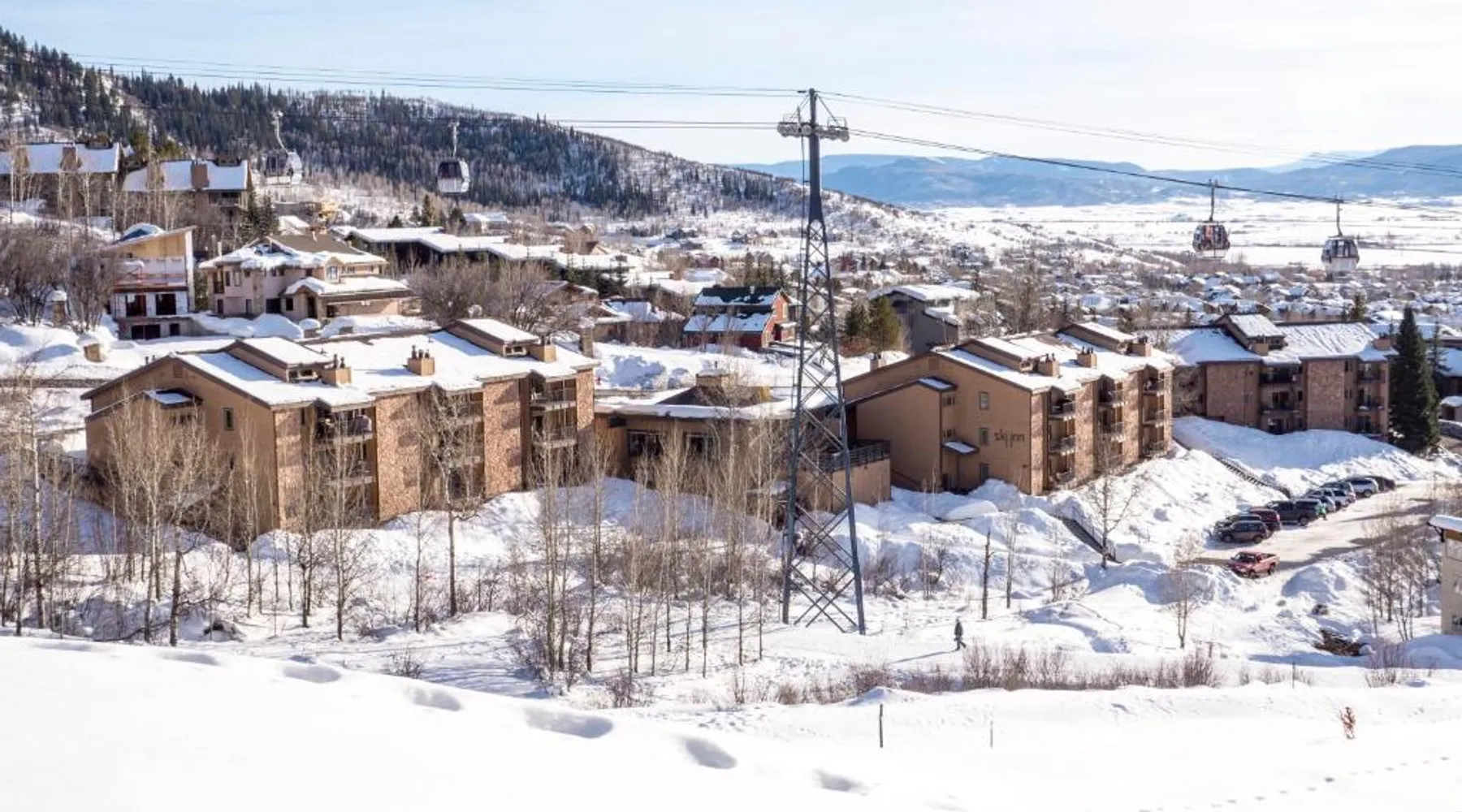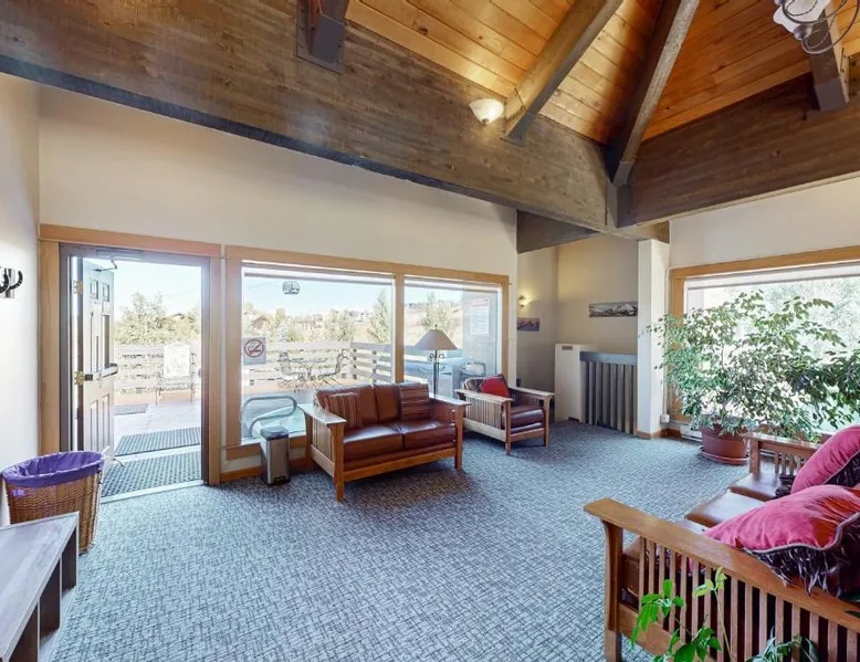 Ski-to-Door Access: Ski Inn in Steamboat Springs offers ski-to-door access, allowing guests to easily reach the slopes. The property features a sauna and a restaurant, providing relaxation and dining options. Comfortable Amenities: Each apartment includes a terrace or balcony, a private bathroom, and a fully equipped kitchen with a fireplace. Additional amenities include a hot tub, picnic area, and free toiletries. Local Attractions: Yampa River Botanic Park is 2.4 mi away, Old Town Hot Springs 3.1 mi, and Strawberry Park Natural Hot Springs 11 mi from the property. Yampa Valley Regional Airport is 25 mi distant. This suite's special feature is the fireplace. Featuring a private entrance, this spacious suite also consists of 2 bedrooms, a seating area and 2 bathrooms with a walk-in shower and a bath. Guests will find a stovetop, a refrigerator, a dishwasher and kitchenware in the kitchen. The suite also provides guests with a barbecue. Boasting a terrace with mountain views, this suite also provides a tea and coffee maker and a flat-screen TV with streaming services. The unit offers 3 beds.