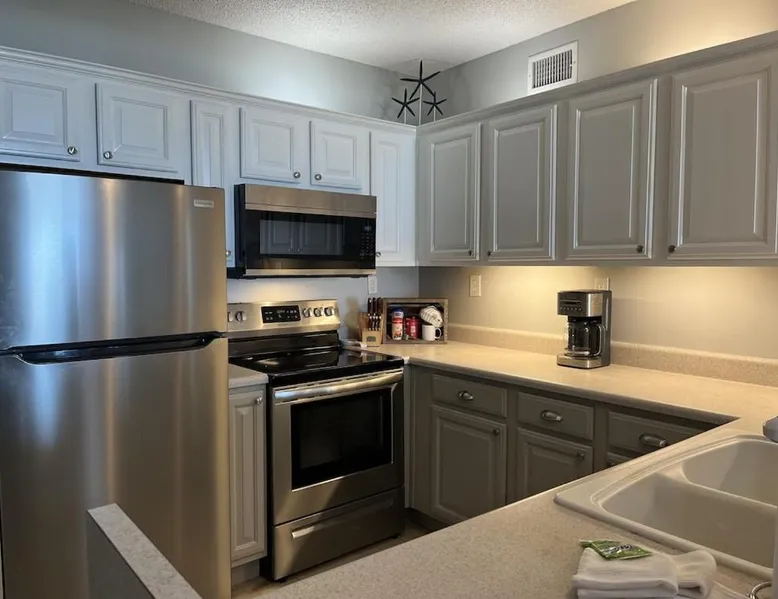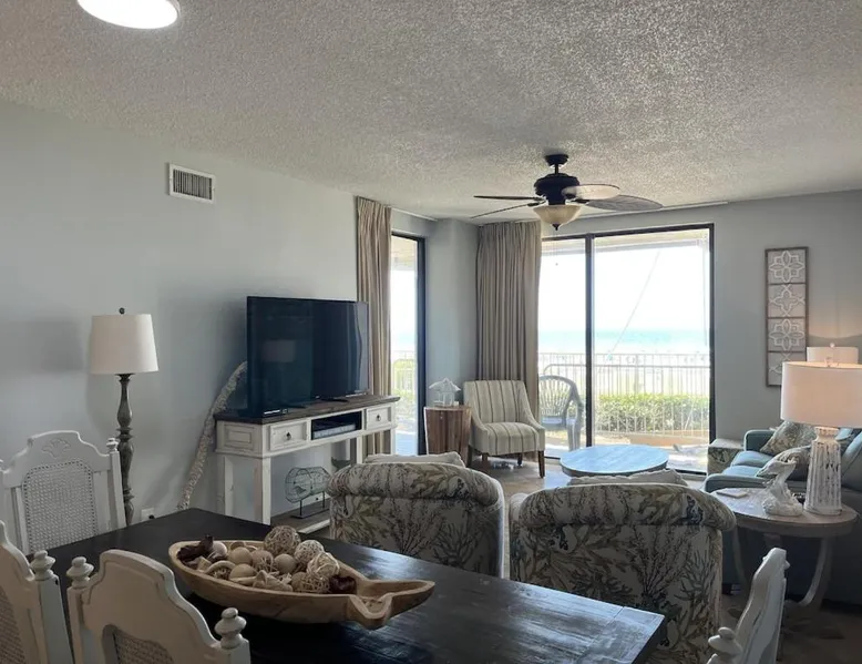 Beachfront Location: Shoalwater Unit 105 in Orange Beach offers direct beachfront access with stunning sea views. Guests can relax on the balcony or patio and enjoy the serene beachfront setting. Spa and Wellness: The holiday home features a spa and wellness center, indoor swimming pool, sauna, and hot tub. Free WiFi is available throughout the property, ensuring connectivity for all visitors. Leisure Facilities: The property includes a fitness room, waterpark, and children's playground. Additional amenities include a washing machine, dishwasher, and TV, catering to all guest needs. Nearby Attractions: Orange Beach is just a few steps away, with Gulf State Park Fishing Pier 4.3 mi and Alabama Gulf Coast Zoo 6.8 mi from the property. Pensacola International Airport is 31 mi distant. Guests will find a stovetop, a refrigerator, a dishwasher and kitchenware in the kitchen. The apartment also features a barbecue. The spacious air-conditioned apartment offers a TV with cable channels, a washing machine, a tea and coffee maker, a dining area as well as sea views. The unit has 4 beds.
