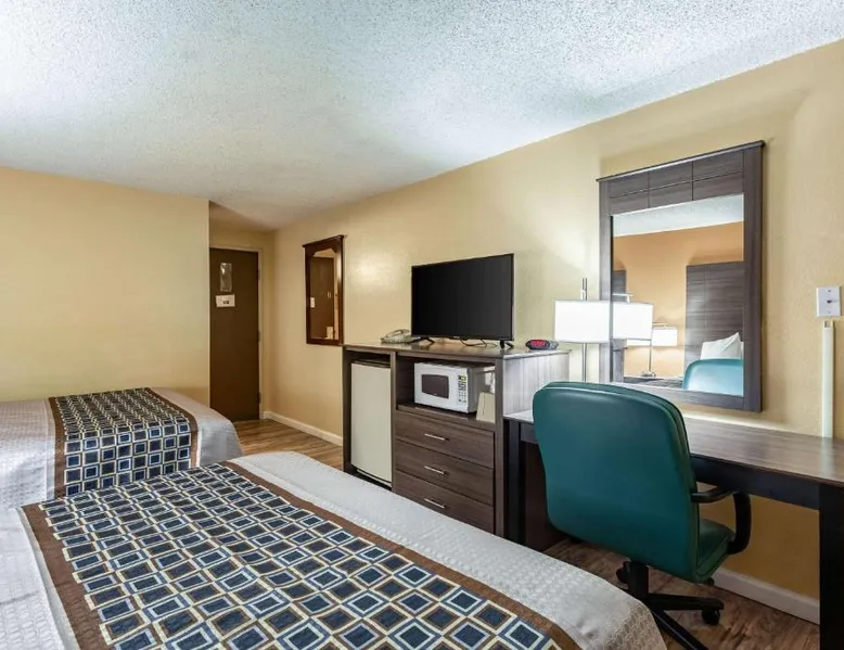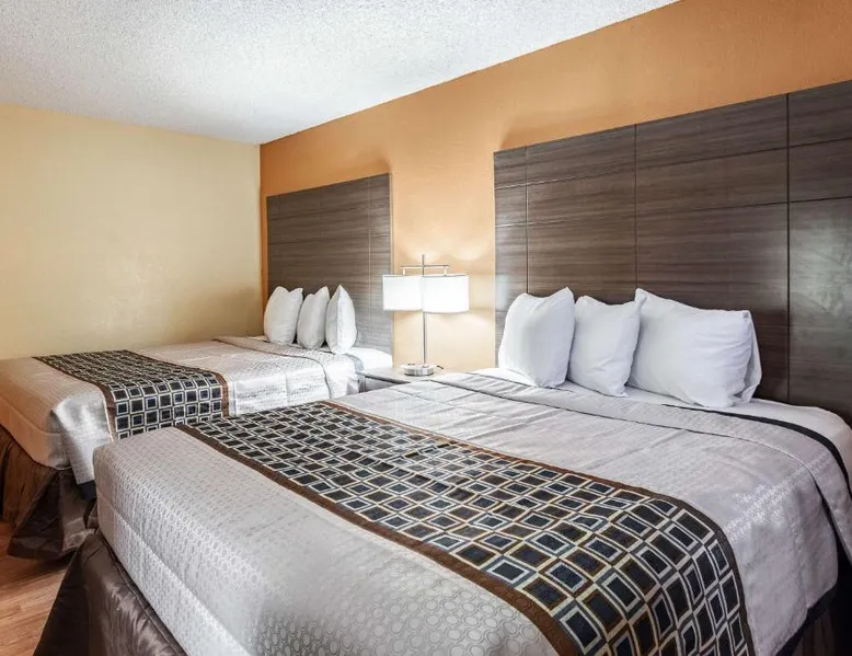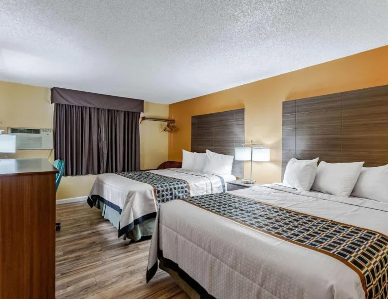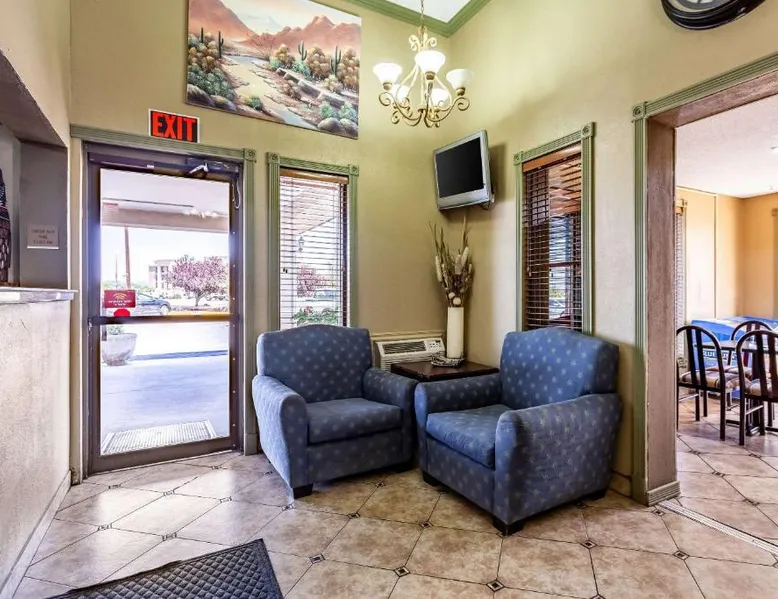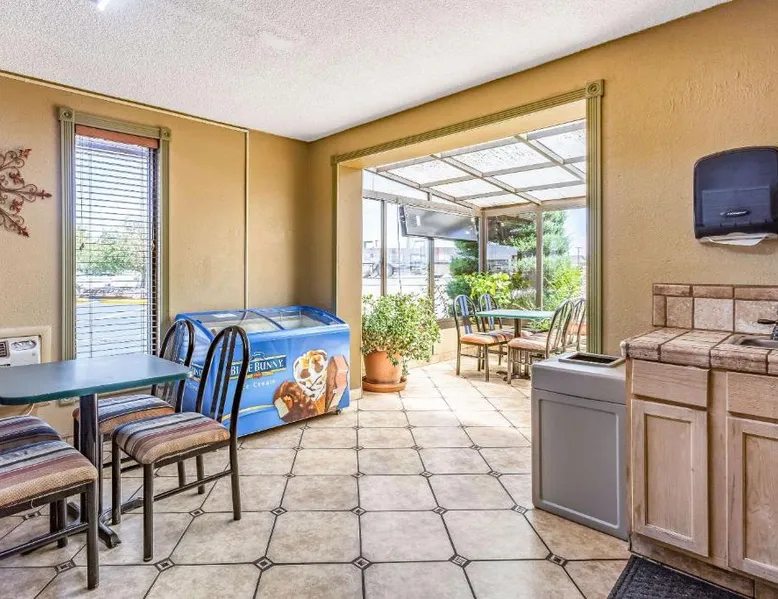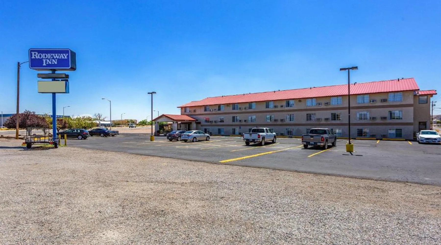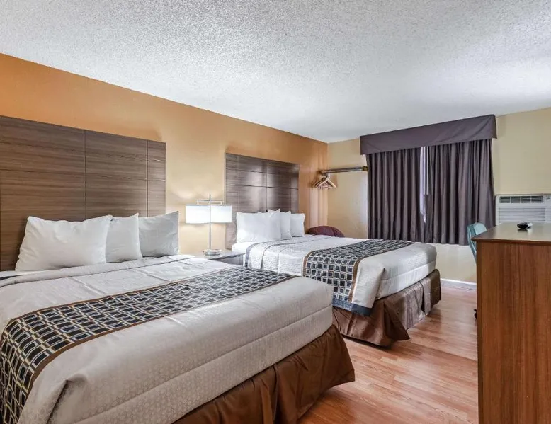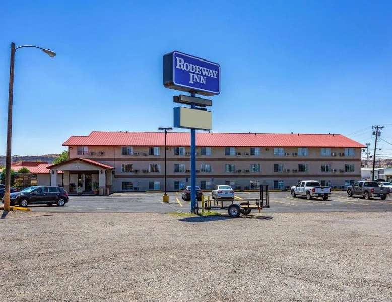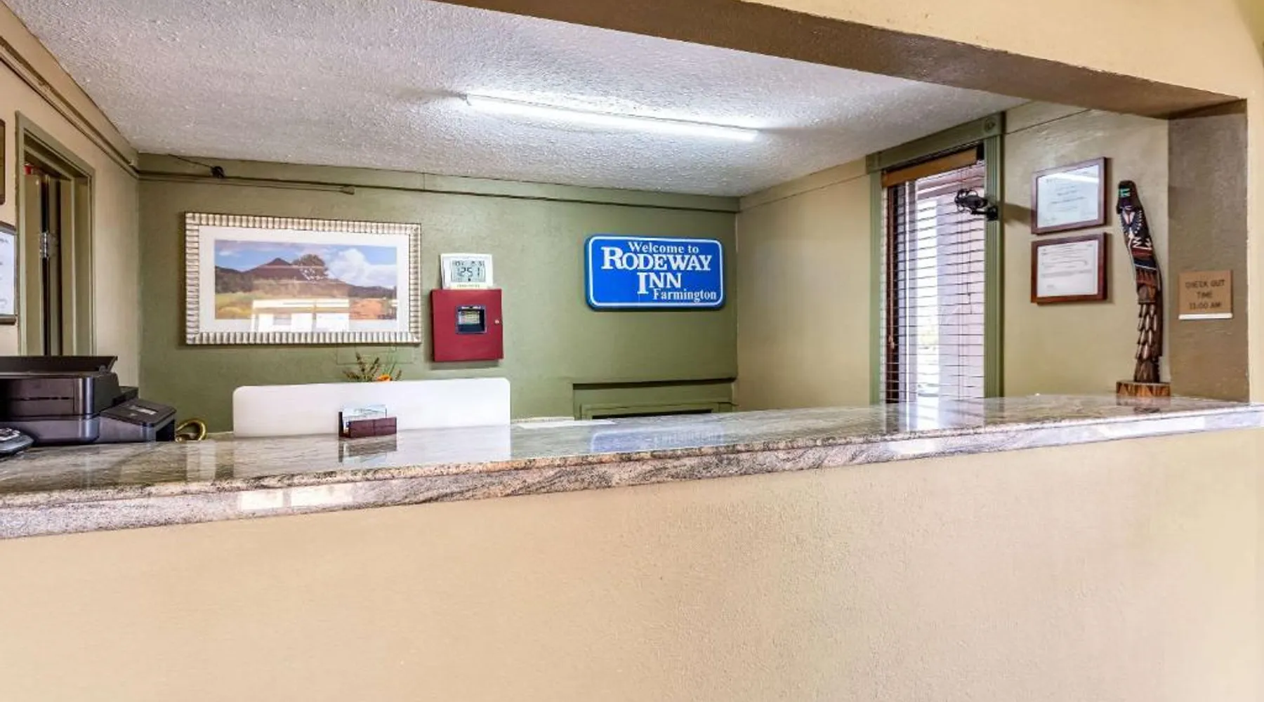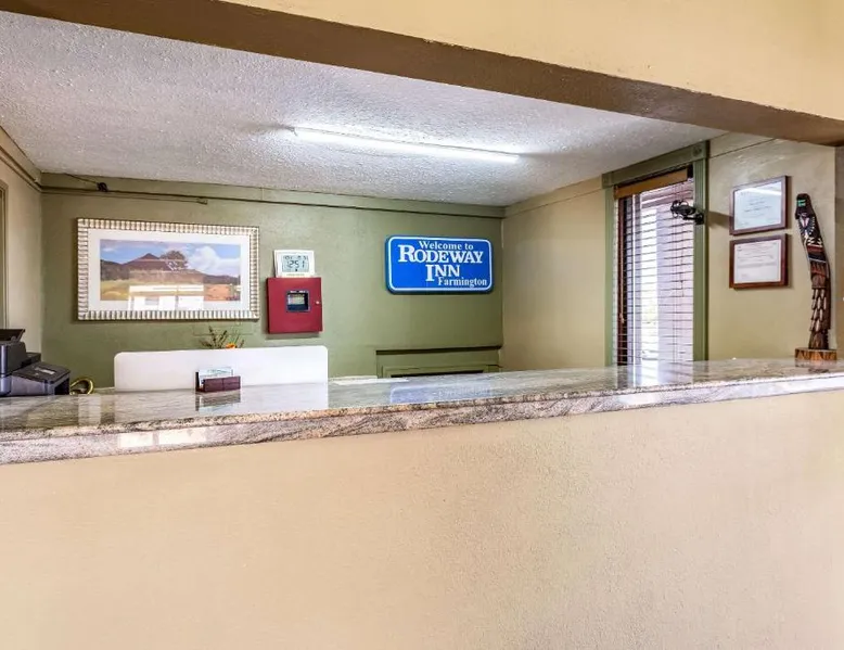 The Rodeway Inn hotel is ideally located in the center of town, surrounded by the picturesque San Juan River Valley. This Farmington, NM hotel is close to the Four Corners Regional Airport, the Aztec Ruins National Monument and the Lions Wilderness Park Amphitheater, home of the annual Four Corners Storytelling Festival. Enjoy a day on the links at the renowned Pinon Hills Golf Course, rated by Golf Digest as one of the best municipal golf courses in the nation. A variety of shopping centers, movie theaters, restaurants and cocktail lounges can be found in the surrounding area. This Farmington, NM hotel offers many little extras and amenities, including:, Free continental breakfast, Free coffee, Free wireless high-speed Internet access in all rooms. Business travelers to this New Mexico hotel will welcome additional conveniences like the public computer with Internet access, desks in some rooms, and access to copy and fax services. In addition to standard amenities, some rooms come equipped with coffee makers, DVD players, sofa sleepers and whirlpool bathtubs. Nonsmoking rooms are offered. Ample parking is available on the premises and can accommodate most trucks, RVs, buses and cars. This quadruple room offers heating and a TV with cable channels. The unit has 2 beds.