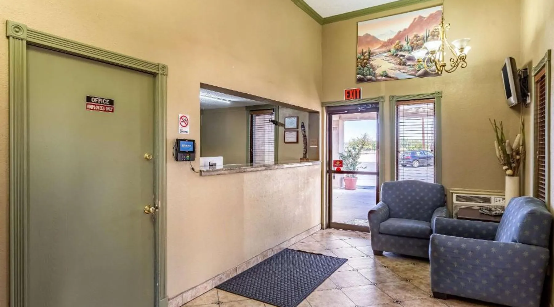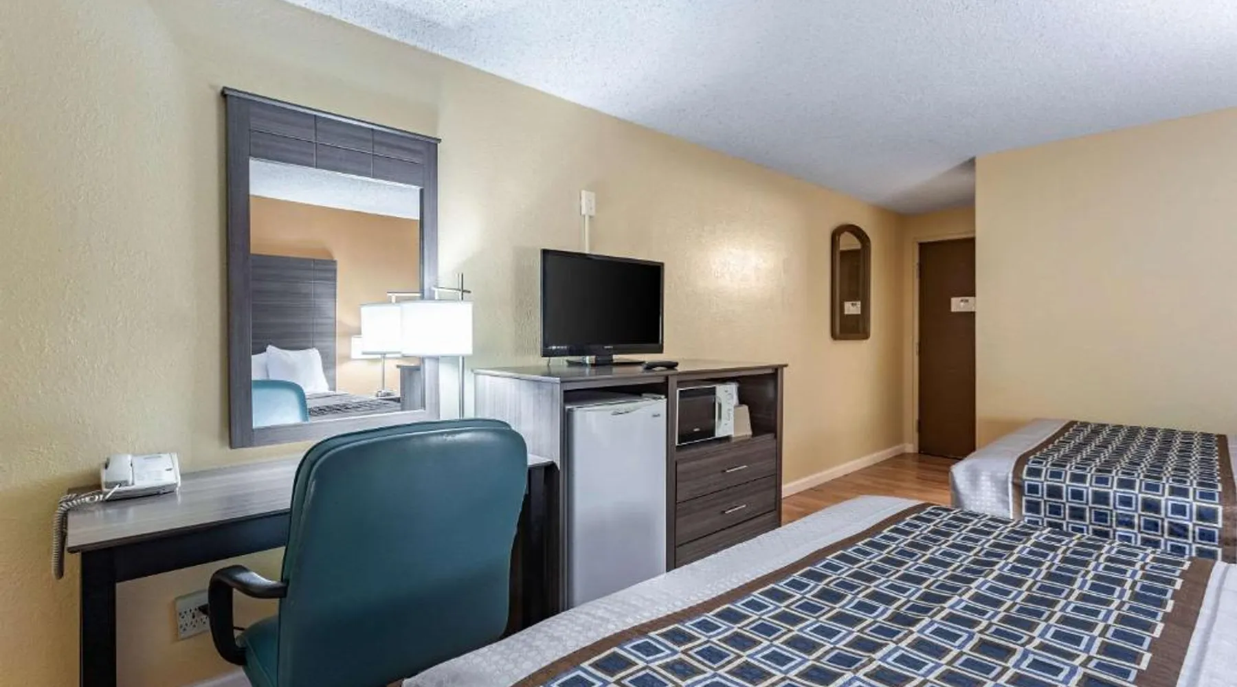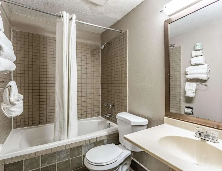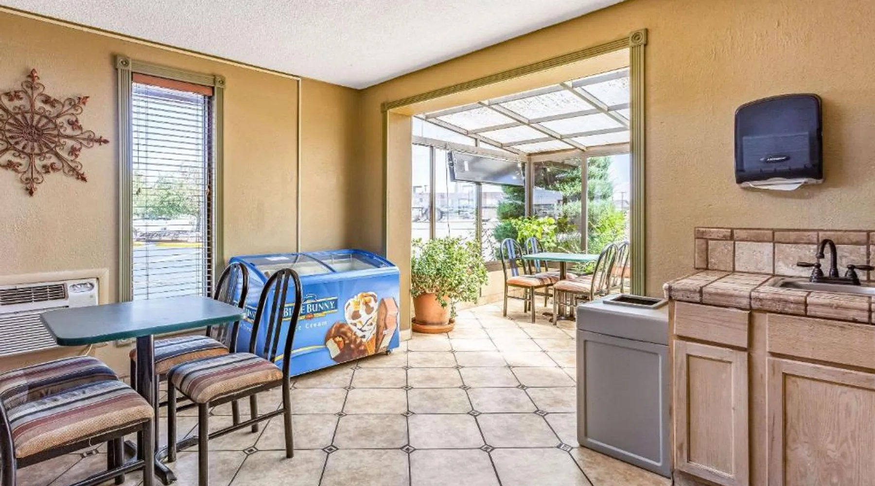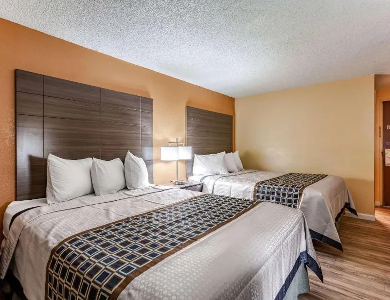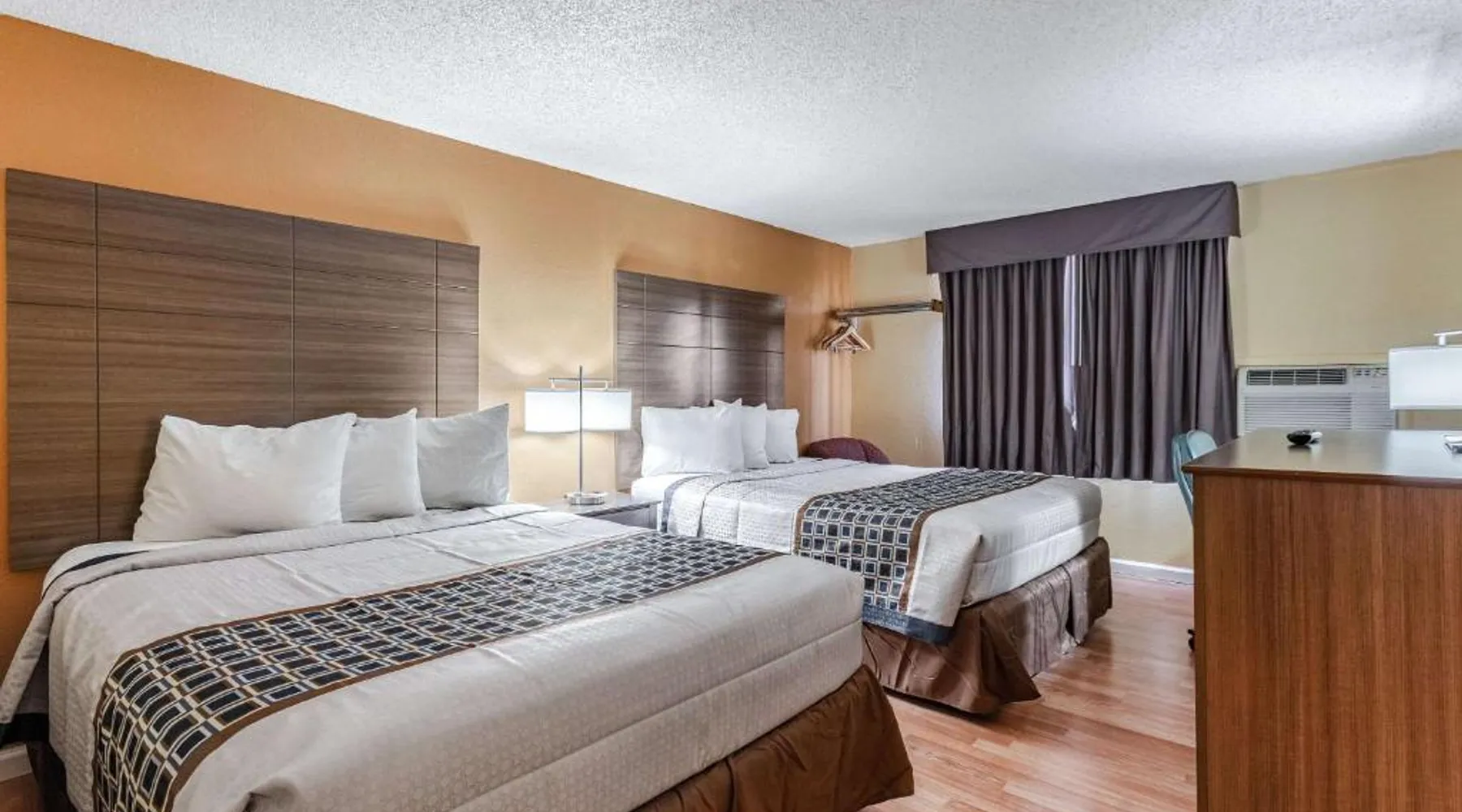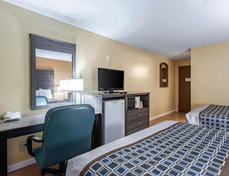 The Rodeway Inn hotel is ideally located in the center of town, surrounded by the picturesque San Juan River Valley. This Farmington, NM hotel is close to the Four Corners Regional Airport, the Aztec Ruins National Monument and the Lions Wilderness Park Amphitheater, home of the annual Four Corners Storytelling Festival. Enjoy a day on the links at the renowned Pinon Hills Golf Course, rated by Golf Digest as one of the best municipal golf courses in the nation. A variety of shopping centers, movie theaters, restaurants and cocktail lounges can be found in the surrounding area. This Farmington, NM hotel offers many little extras and amenities, including:, Free continental breakfast, Free coffee, Free wireless high-speed Internet access in all rooms. Business travelers to this New Mexico hotel will welcome additional conveniences like the public computer with Internet access, desks in some rooms, and access to copy and fax services. In addition to standard amenities, some rooms come equipped with coffee makers, DVD players, sofa sleepers and whirlpool bathtubs. Nonsmoking rooms are offered. Ample parking is available on the premises and can accommodate most trucks, RVs, buses and cars. This quadruple room offers heating and a TV with cable channels. The unit has 2 beds.