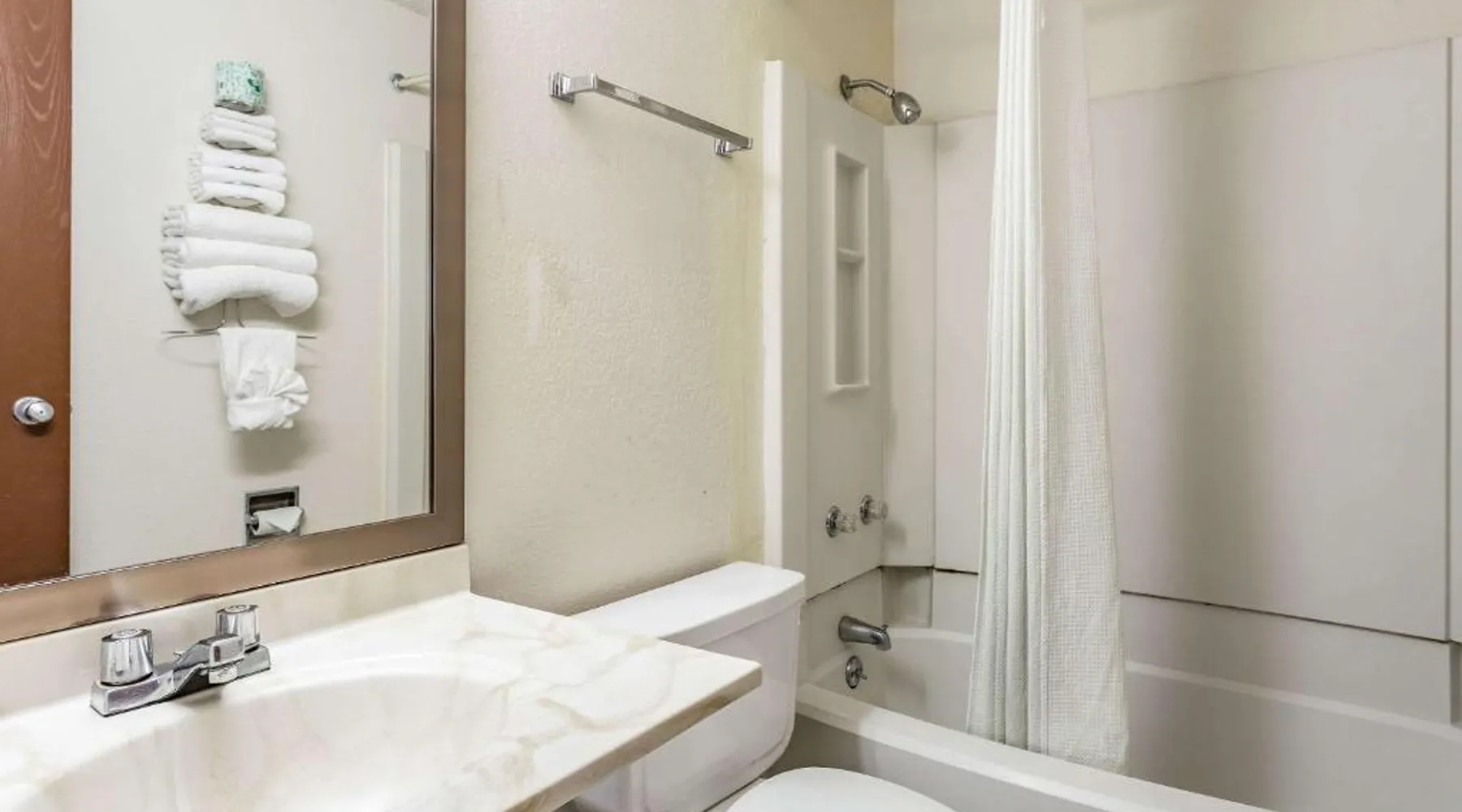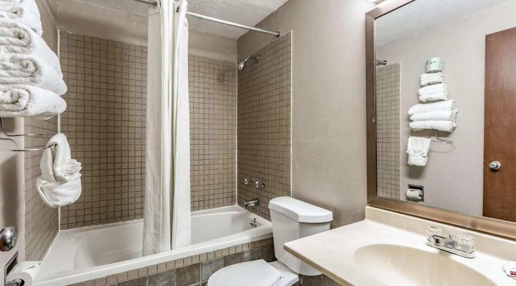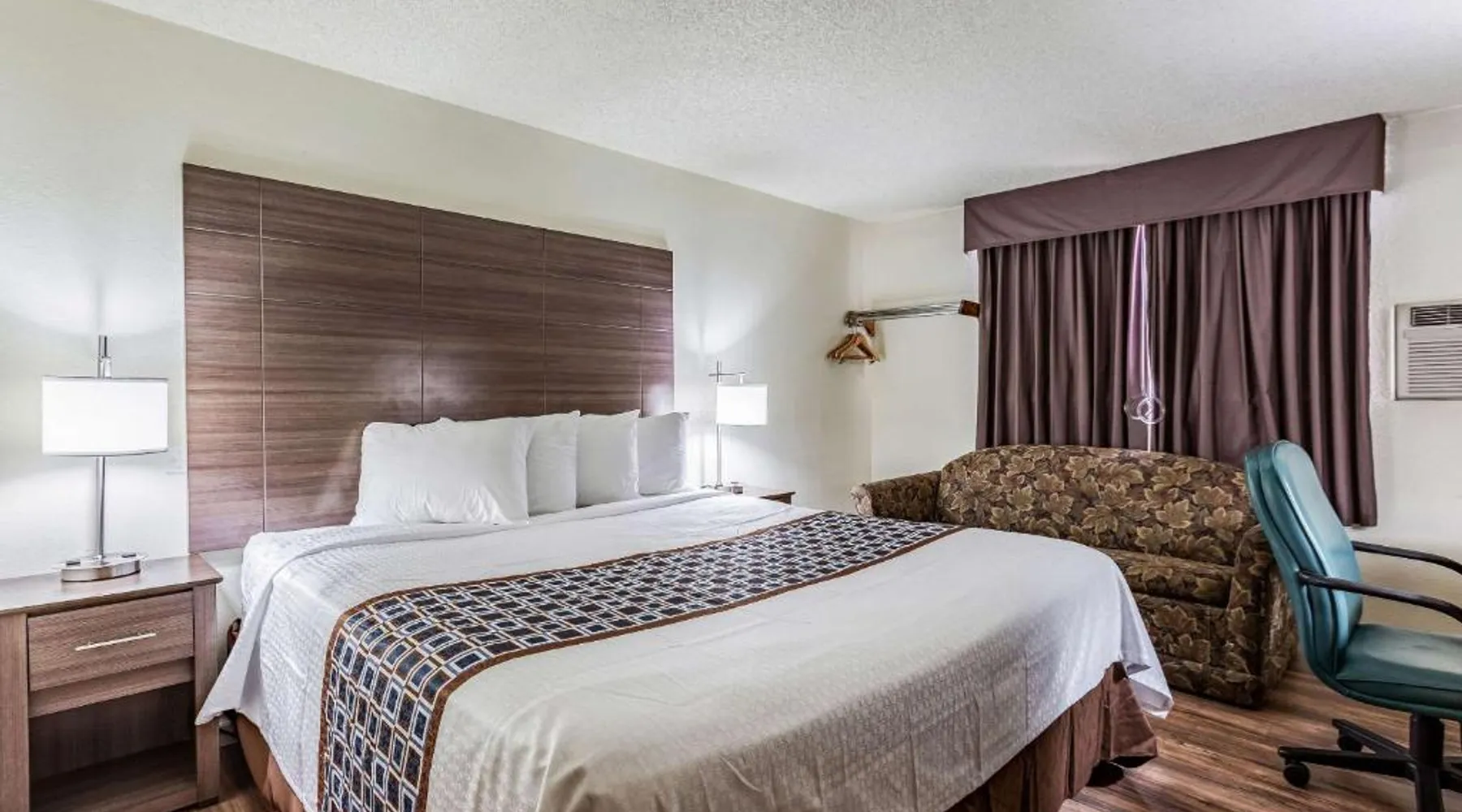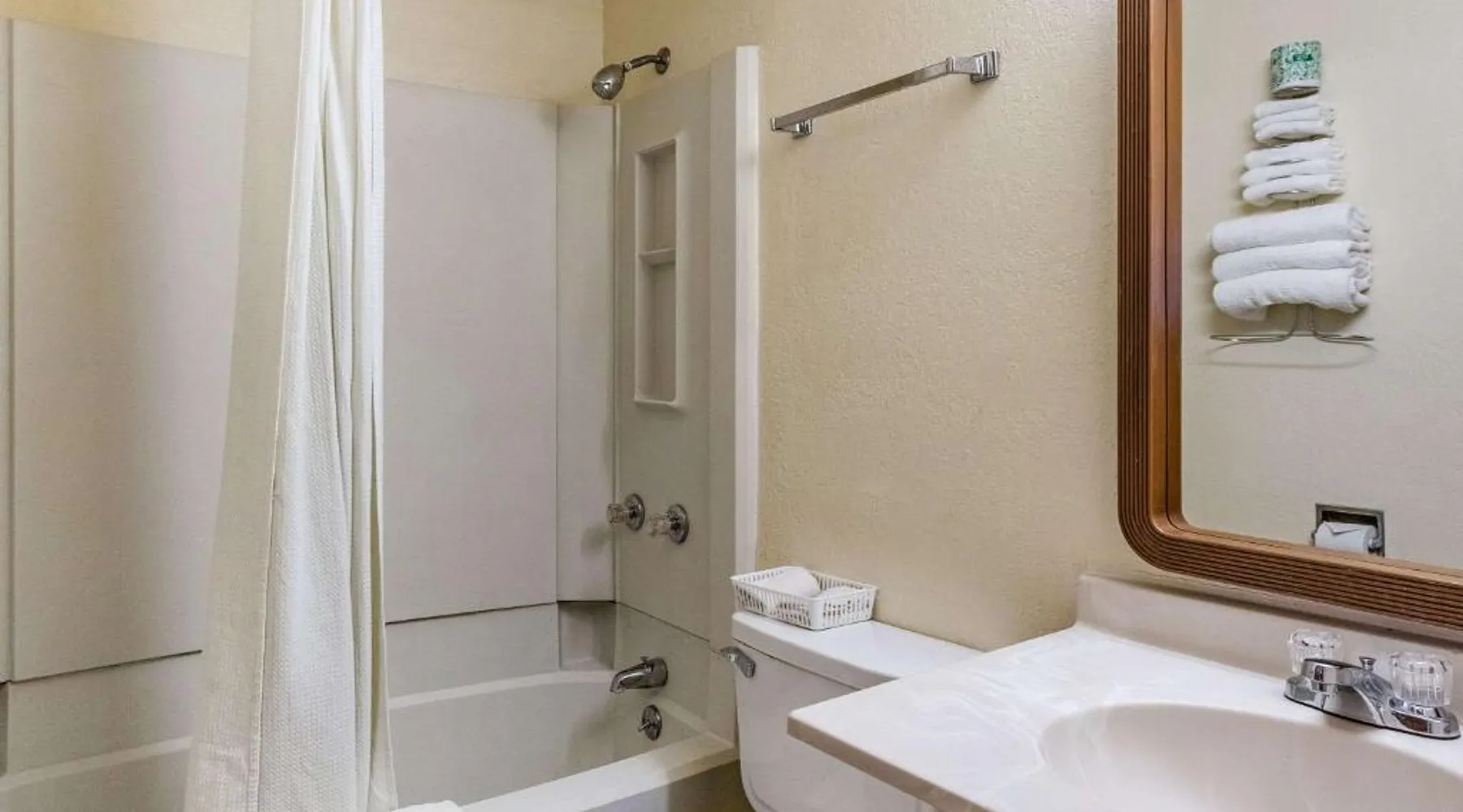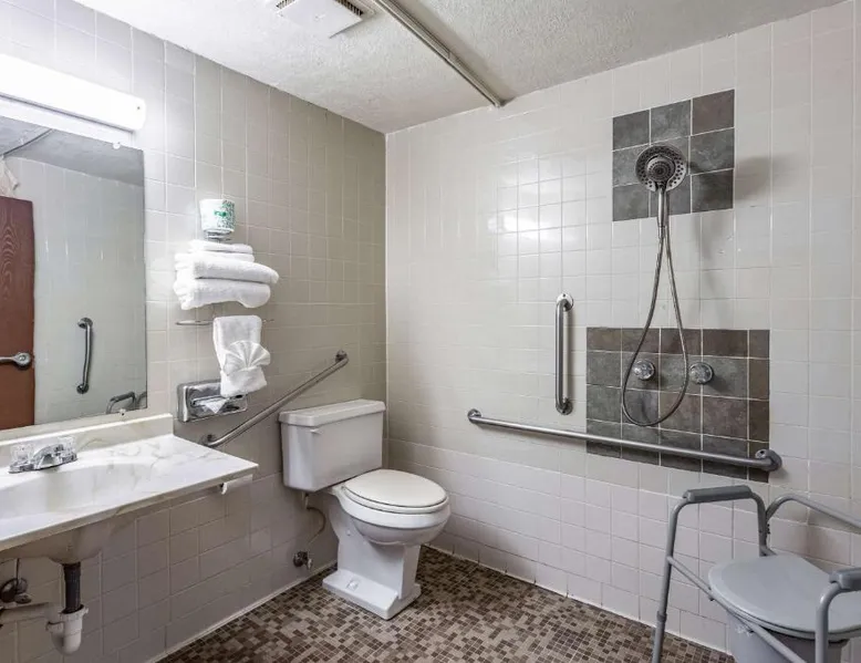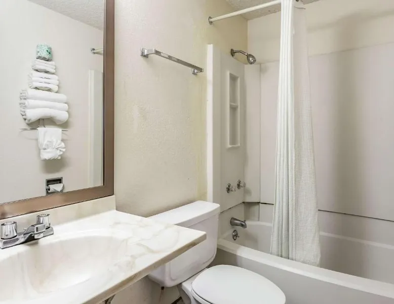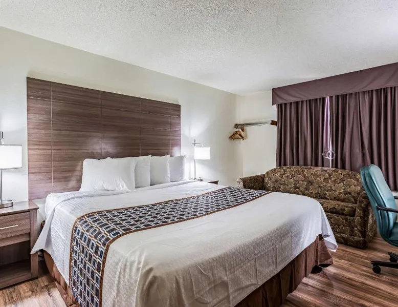 The Rodeway Inn hotel is ideally located in the center of town, surrounded by the picturesque San Juan River Valley. This Farmington, NM hotel is close to the Four Corners Regional Airport, the Aztec Ruins National Monument and the Lions Wilderness Park Amphitheater, home of the annual Four Corners Storytelling Festival. Enjoy a day on the links at the renowned Pinon Hills Golf Course, rated by Golf Digest as one of the best municipal golf courses in the nation. A variety of shopping centers, movie theaters, restaurants and cocktail lounges can be found in the surrounding area. This Farmington, NM hotel offers many little extras and amenities, including:, Free continental breakfast, Free coffee, Free wireless high-speed Internet access in all rooms. Business travelers to this New Mexico hotel will welcome additional conveniences like the public computer with Internet access, desks in some rooms, and access to copy and fax services. In addition to standard amenities, some rooms come equipped with coffee makers, DVD players, sofa sleepers and whirlpool bathtubs. Nonsmoking rooms are offered. Ample parking is available on the premises and can accommodate most trucks, RVs, buses and cars. This quadruple room offers heating and a TV with cable channels. The unit has 2 beds.