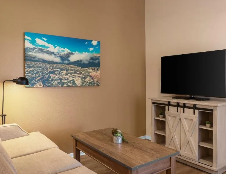 Experience the magnificent Rocky Mountains in beautiful Pagosa Springs, Colorado, surrounded by acres of National forests, filled with a variety of wildlife and exciting adventures at this stunning holiday property. No matter the season, excitement awaits you at Club Wyndham Pagosa. With world-class ski and hiking trails, fishing and white water rafting only moments away, your stay in this beautiful natural environment is sure to be unforgettable. The Club Wyndham Pagosa not only features an unrivaled location, but also a number of contemporary, on-site facilities. Enjoy a round of golf, a game of tennis or a refreshing swim in the swimming pool, all located on-site. This spacious apartment consists of 1 living room, 1 separate bedroom and 1 bathroom with a bath or a shower and free toiletries. The well-fitted kitchen features a stovetop, a refrigerator, kitchenware and an oven. This air-conditioned apartment includes a dining area, a flat-screen TV with cable channels a washing machine and a patio. The unit offers 2 beds.
