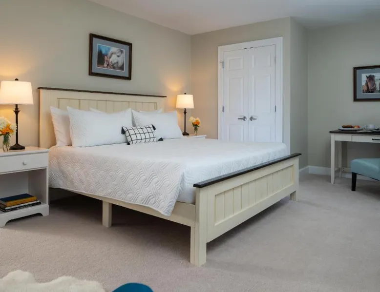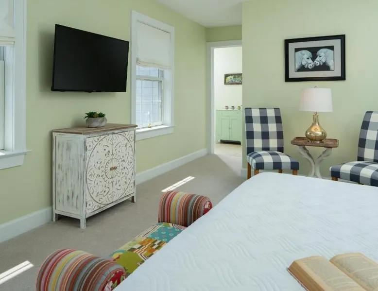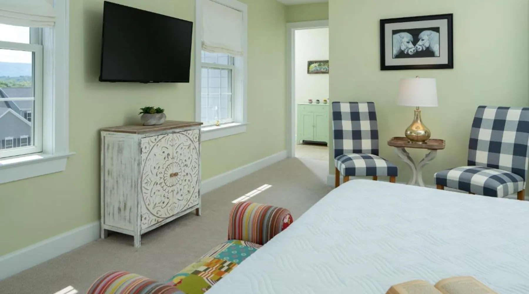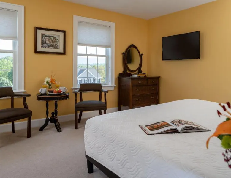 Comfortable Accommodations: Apple Pony Inn in Boalsburg offers family rooms with private bathrooms, air-conditioning, and garden or mountain views. Each room includes a TV, soundproofing, and free WiFi. Exceptional Facilities: Guests can relax in the garden or outdoor seating area, enjoy the picnic area, and utilize the lounge. The property provides free on-site private parking, a work desk, and a private entrance. Delicious Breakfast: A breakfast buffet is available in-room, featuring a variety of options to suit all preferences. Special diet menus and meals for children are also provided. Convenient Location: Located 7.5 mi from University Park Airport and near attractions such as Penn State University (8.1 mi) and Beaver Stadium (5 mi). The Palmer Museum of Art is 6.2 mi away. The spacious family room provides air conditioning, soundproof walls, as well as a private bathroom featuring a bath and a shower. The family room offers a wardrobe, a carpeted floor, heating, as well as a flat-screen TV. The unit offers 2 beds.