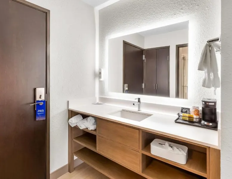 Featuring a fitness center, this Mayfield Heights, Ohio motel is 25 minutes’ drive from the Cleveland city center. Free Wi-Fi is available throughout this nonsmoking property. Guests can enjoy a daily complimentary full breakfast breakfast. A TV, desk and coffee machine are featured in each air-conditioned room at the Kensington Inn & Suites. Private bathrooms come with a hairdryer. Ironing facilities are also provided. A 24-hour reception welcomes guests to the Kensington Inn & Suites. Laundry facilities and a business center are also available. StoneWater Golf Club is 10 minutes’ drive from the Kensington Inn & Suites. The Cleveland Museum of Art is 8.8 mi away. The unit has 2 beds.