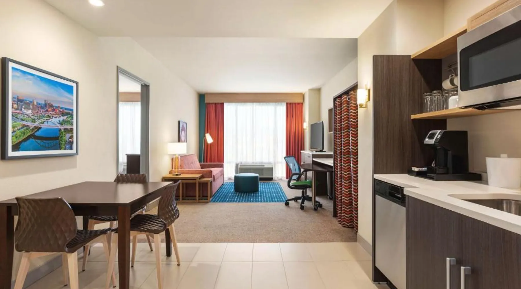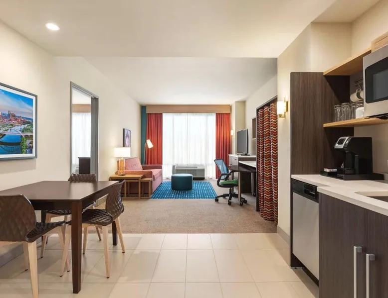 Comfortable Accommodations: Home2 Suites By Hilton Nashville West End Avenue in Nashville offers family rooms with air-conditioning, free WiFi, and modern amenities. Each room includes a work desk, sofa bed, and a fully equipped kitchen. Exceptional Facilities: Guests can enjoy a fitness center, terrace, seasonal outdoor swimming pool, and a family-friendly restaurant serving American cuisine. Additional facilities include a bar, lounge, outdoor fireplace, and a minimarket. Convenient Location: Located 9.3 mi from Nashville International Airport, the hotel is a short walk from The Parthenon and near attractions such as Vanderbilt University (1.2 mi) and Bridgestone Arena (2.9 mi). Highly rated for its attentive staff and excellent service. This studio is air-conditioned and features a flat-screen TV with cable channels, a tea and coffee maker, a seating area and heating. The unit offers 1 bed.