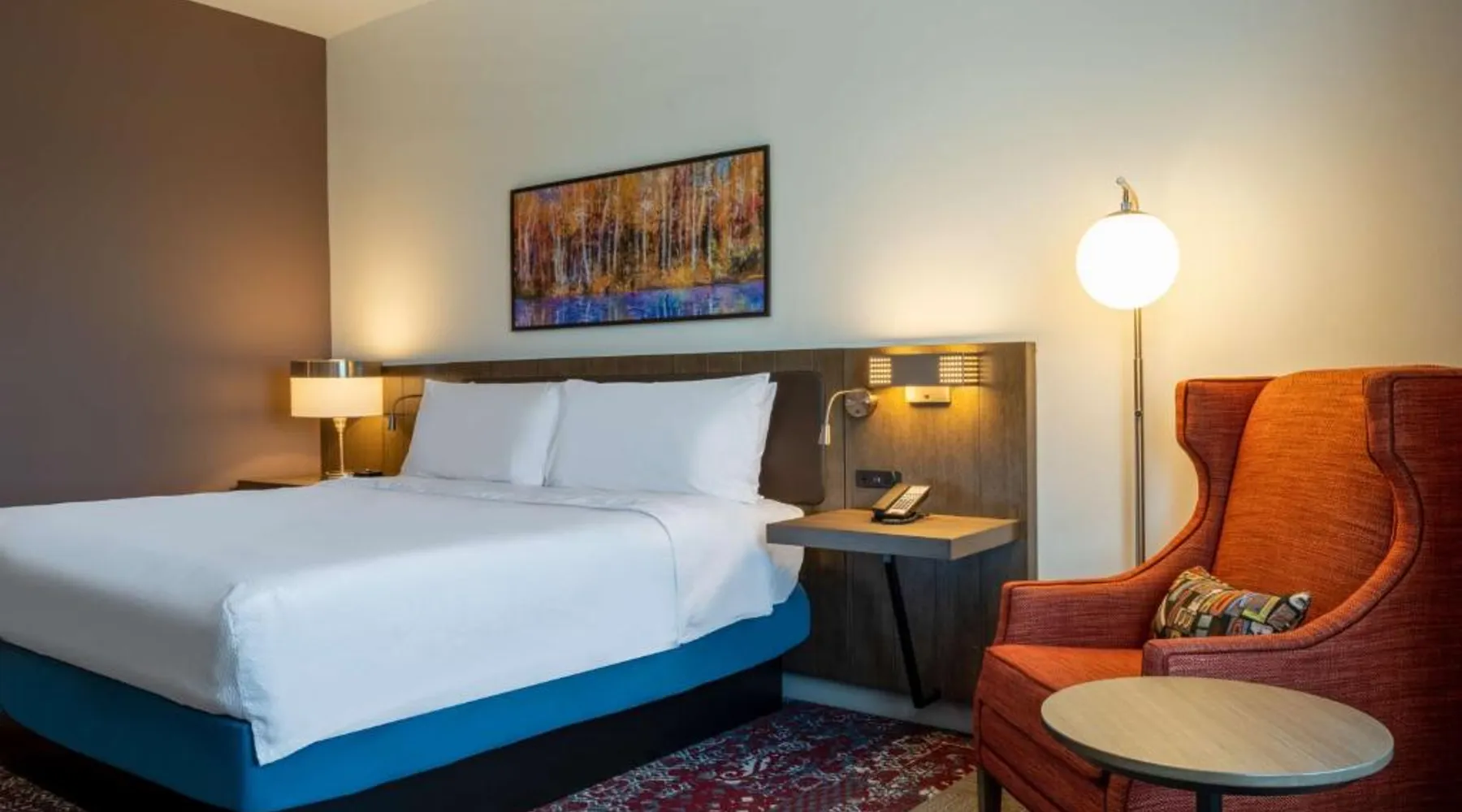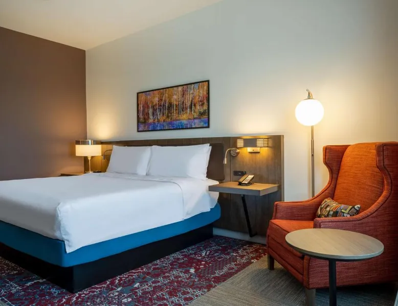 Comfortable Accommodations: Rooms feature air-conditioning, free WiFi, refrigerator, microwave, tea and coffee maker, hairdryer, work desk, free toiletries, and TV. Dining and Leisure: The family-friendly restaurant serves American cuisine for dinner. A bar offers a relaxing space. A fitness center and free on-site parking are available. Convenient Location: Located in Jeffersonville, the hotel is 16 mi from Louisville International Airport. Nearby attractions include KFC Yum! Center (8.1 mi) and Muhammad Ali Center (11 mi). Guest Satisfaction: Highly rated for excellent staff, room cleanliness, and restaurant. The unit has 1 bed.