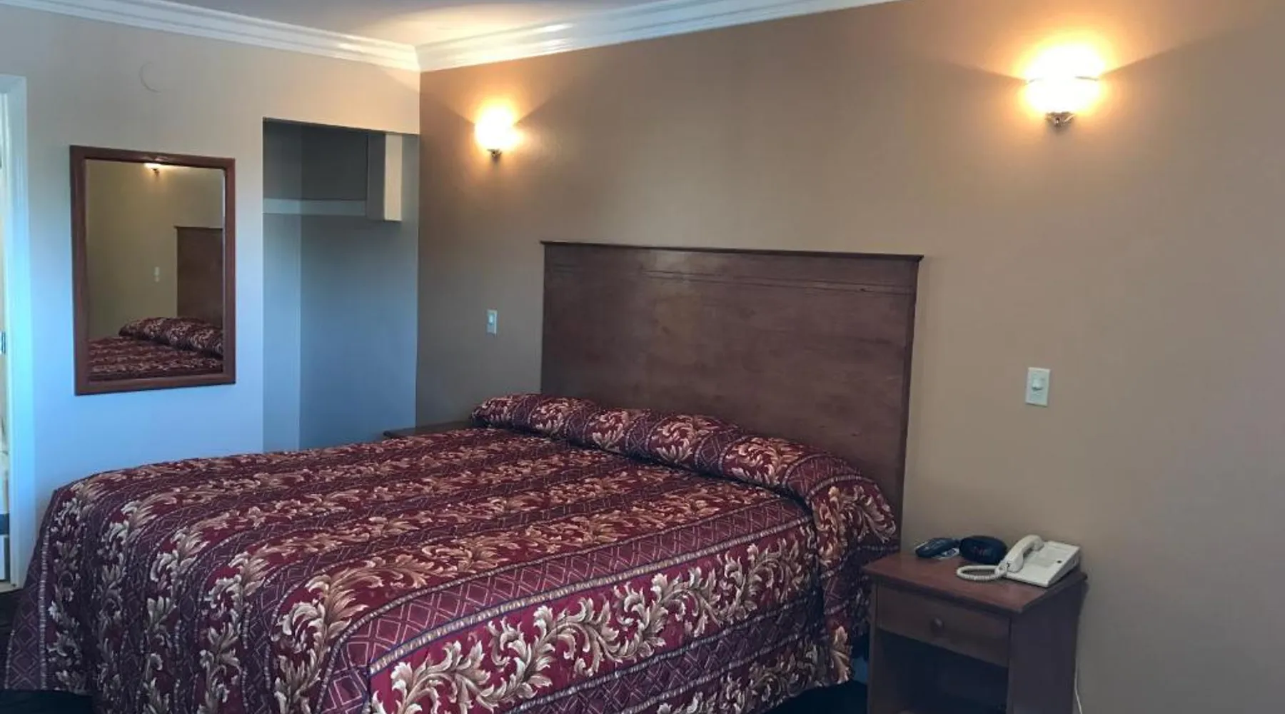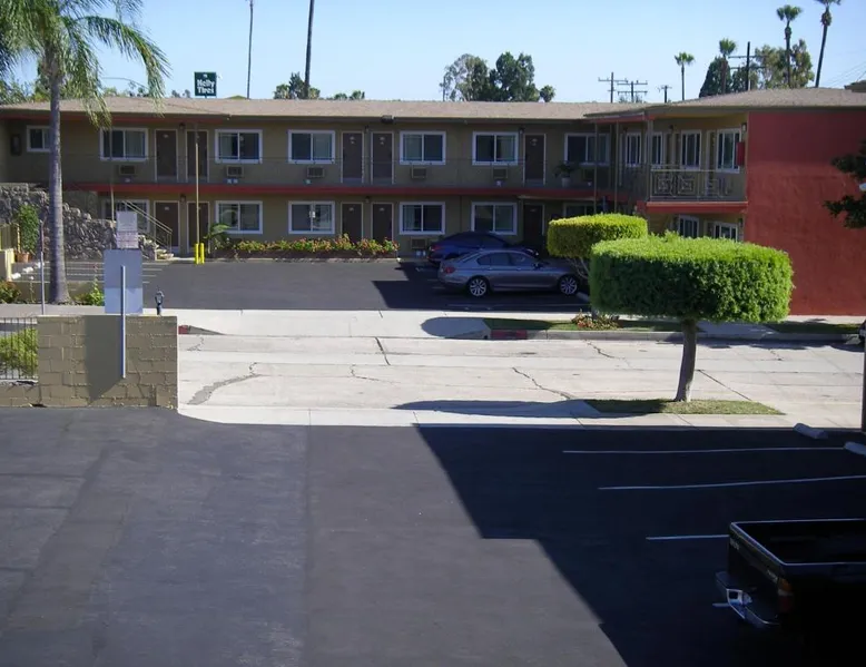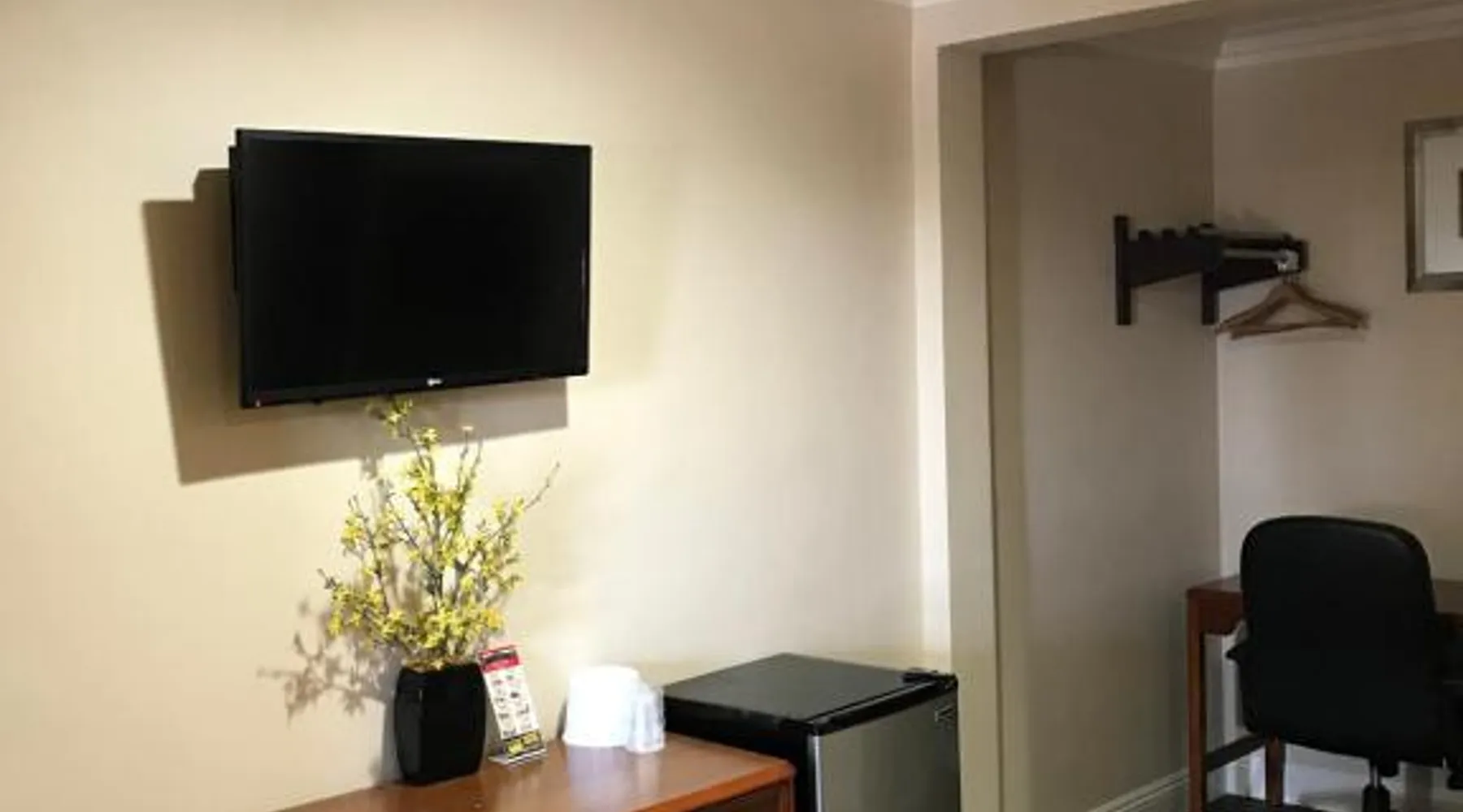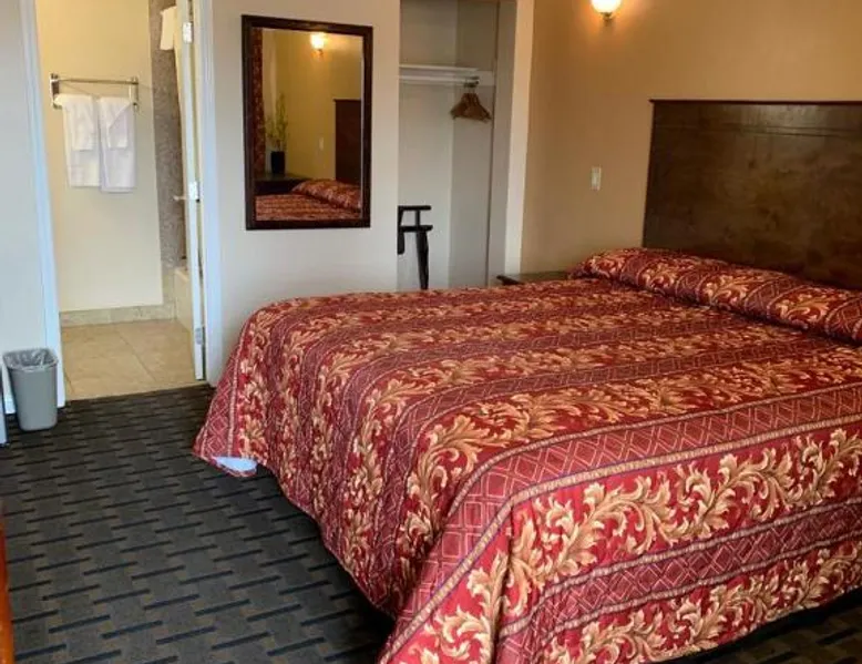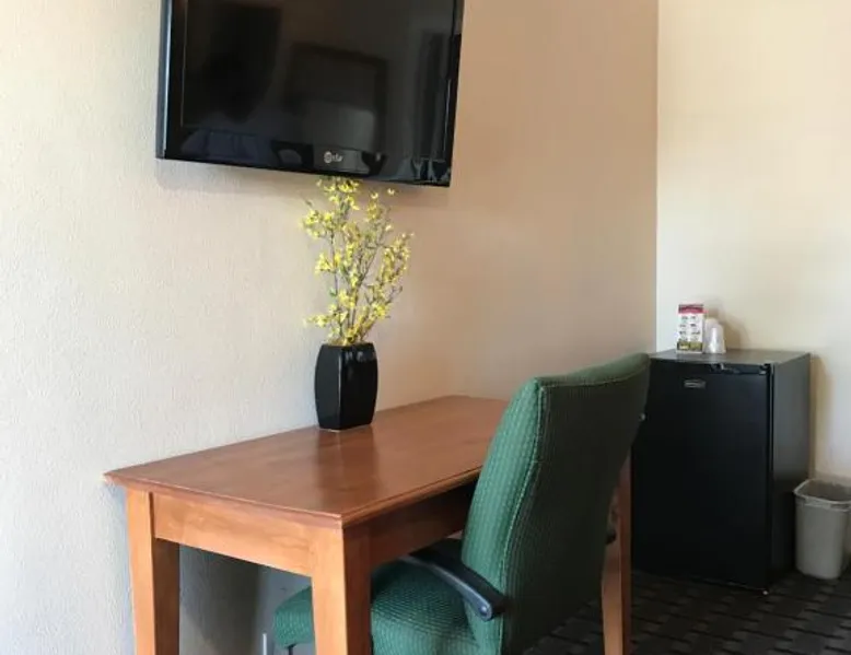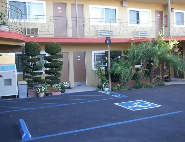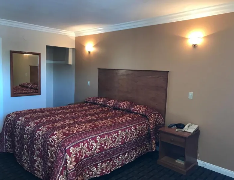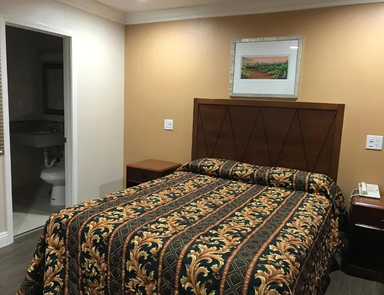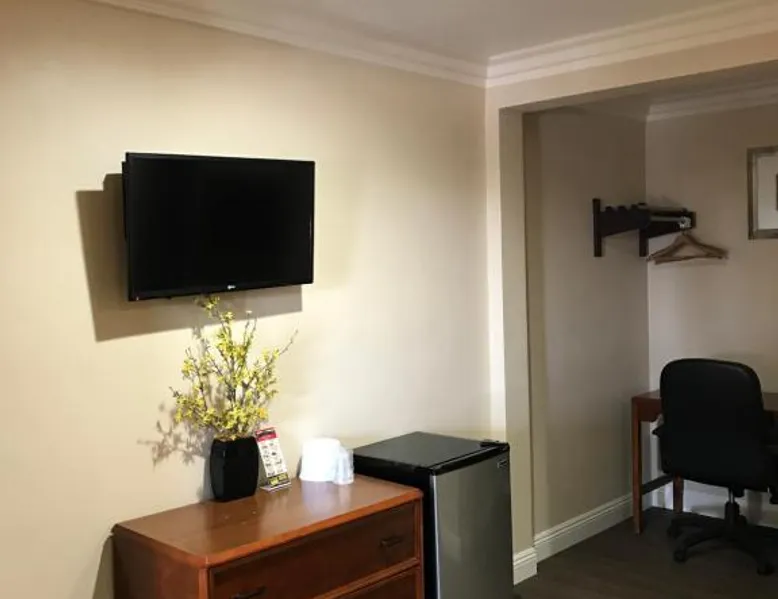 Comfortable Accommodations: Fullerton Lodge in Fullerton offers air-conditioned rooms with private bathrooms, city views, and modern amenities including a refrigerator, work desk, and TV. Each room features carpeted floors and a bath with a walk-in shower. Essential Facilities: Guests enjoy free WiFi, a 24-hour front desk, and free on-site private parking. Additional amenities include a bath, ground-floor unit, and tiled floors. Prime Location: Located 16 mi from John Wayne Airport, the motel is near attractions such as Disney California Adventure (4.3 mi), Disneyland (5 mi), and Knotts Berry Farm (5.6 mi). An ice-skating rink is also in the vicinity. This air-conditioned single room includes a flat-screen TV with cable channels and a private bathroom.