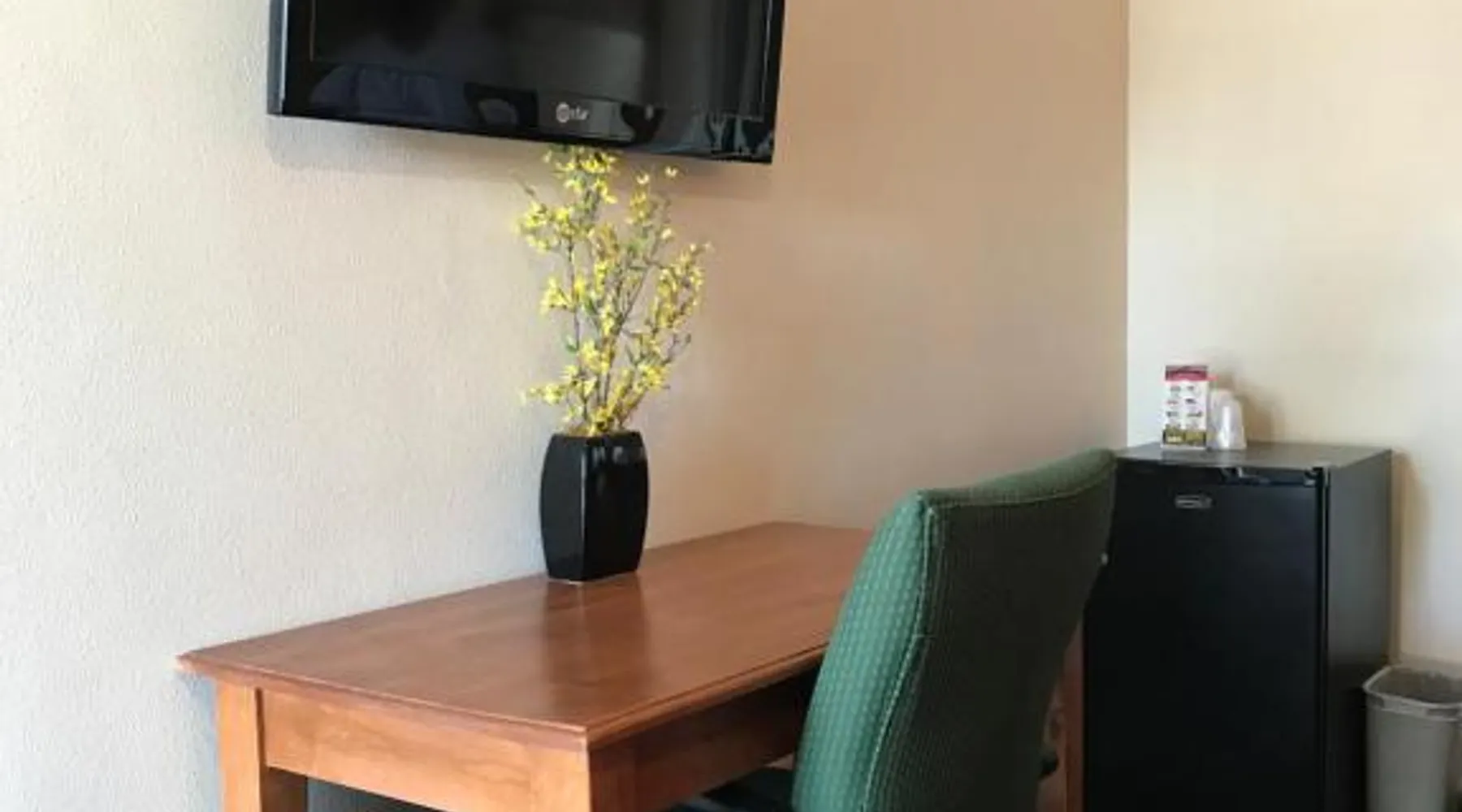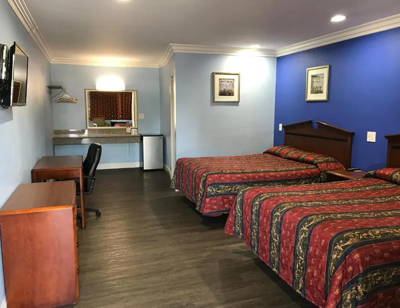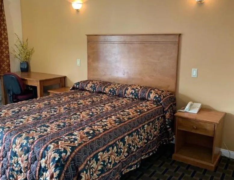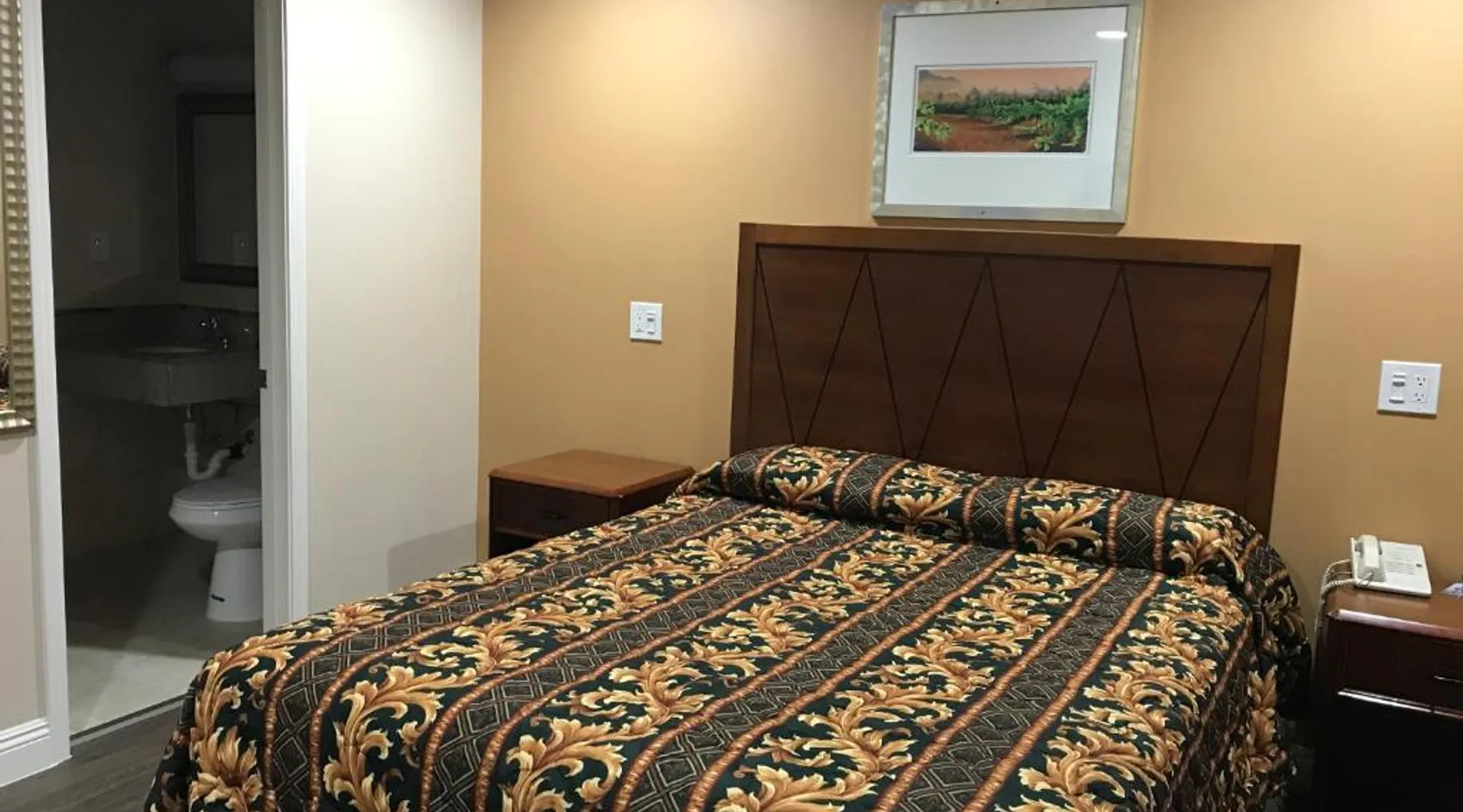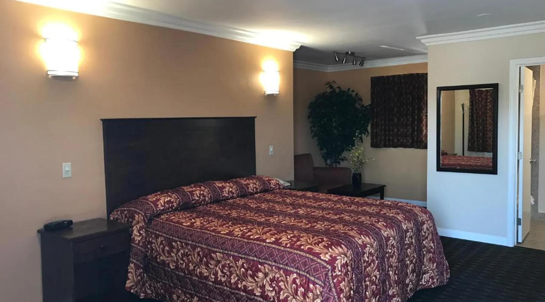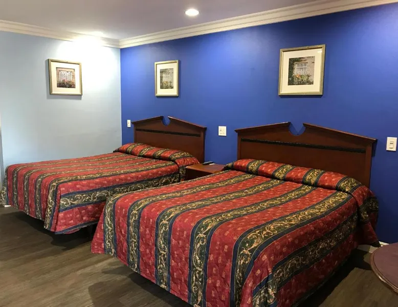 Comfortable Accommodations: Fullerton Lodge in Fullerton offers air-conditioned rooms with private bathrooms, city views, and modern amenities including a refrigerator, work desk, and TV. Each room features carpeted floors and a bath with a walk-in shower. Essential Facilities: Guests enjoy free WiFi, a 24-hour front desk, and free on-site private parking. Additional amenities include a bath, ground-floor unit, and tiled floors. Prime Location: Located 16 mi from John Wayne Airport, the motel is near attractions such as Disney California Adventure (4.3 mi), Disneyland (5 mi), and Knotts Berry Farm (5.6 mi). An ice-skating rink is also in the vicinity. This air-conditioned single room includes a flat-screen TV with cable channels and a private bathroom.